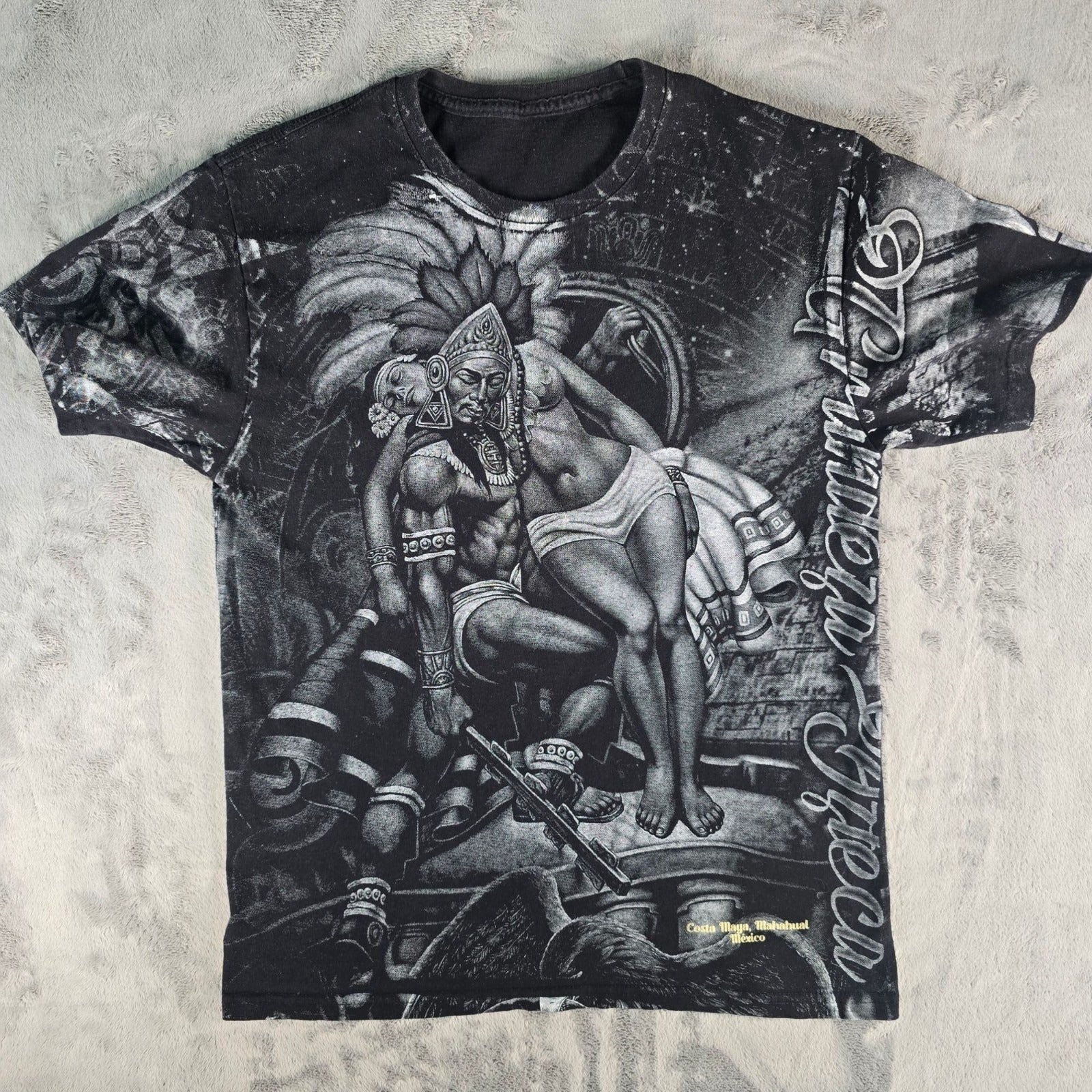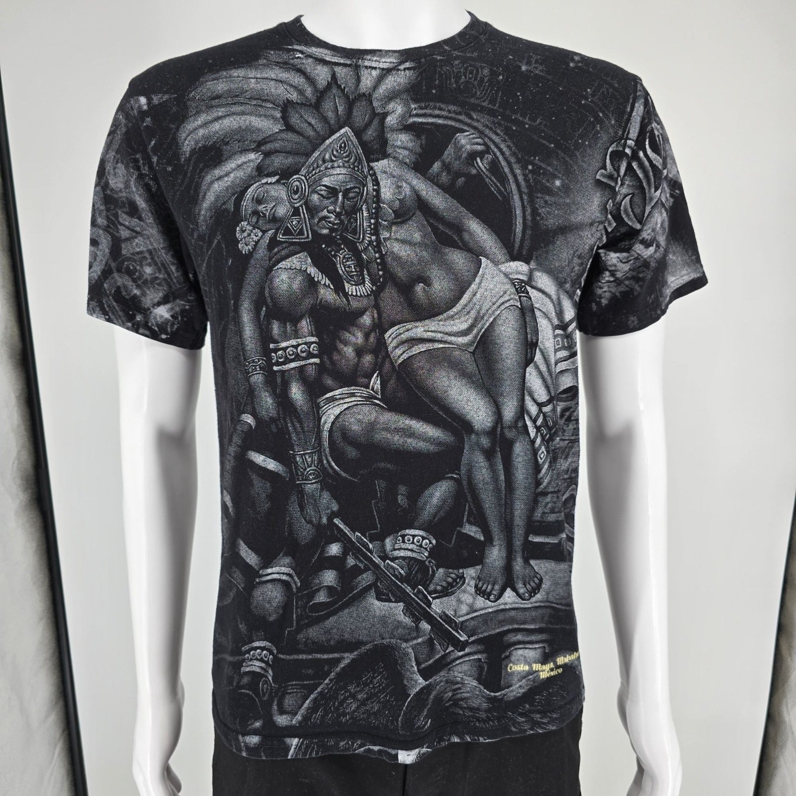 2000s Costa Maya, Mahahual Mexico Aztec Warrior AOP All Over Print T-Shirt (M)