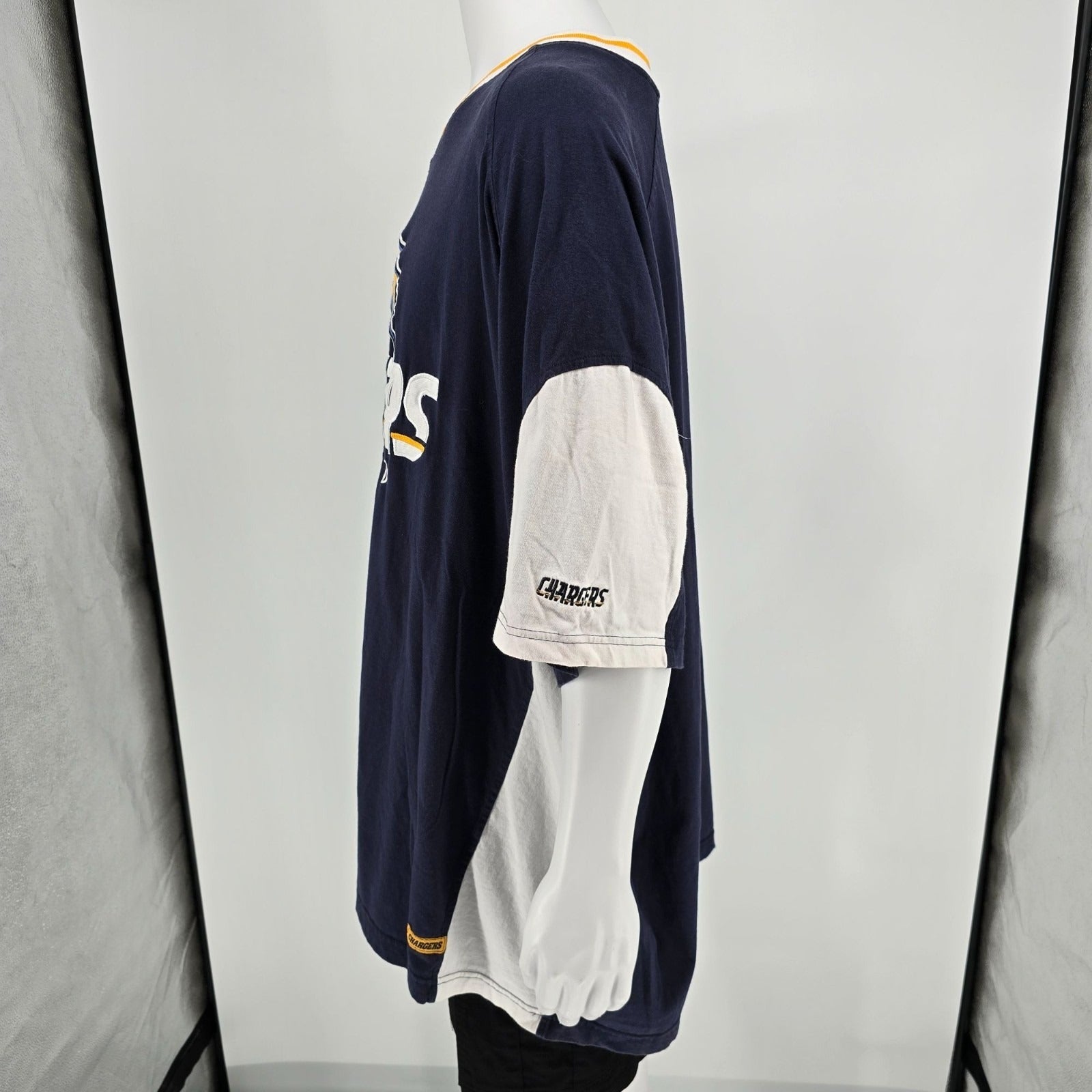 2000s San Diego Chargers NFL Embroidered Blue/White V-Neck Jersey T-Shirt (4XL)