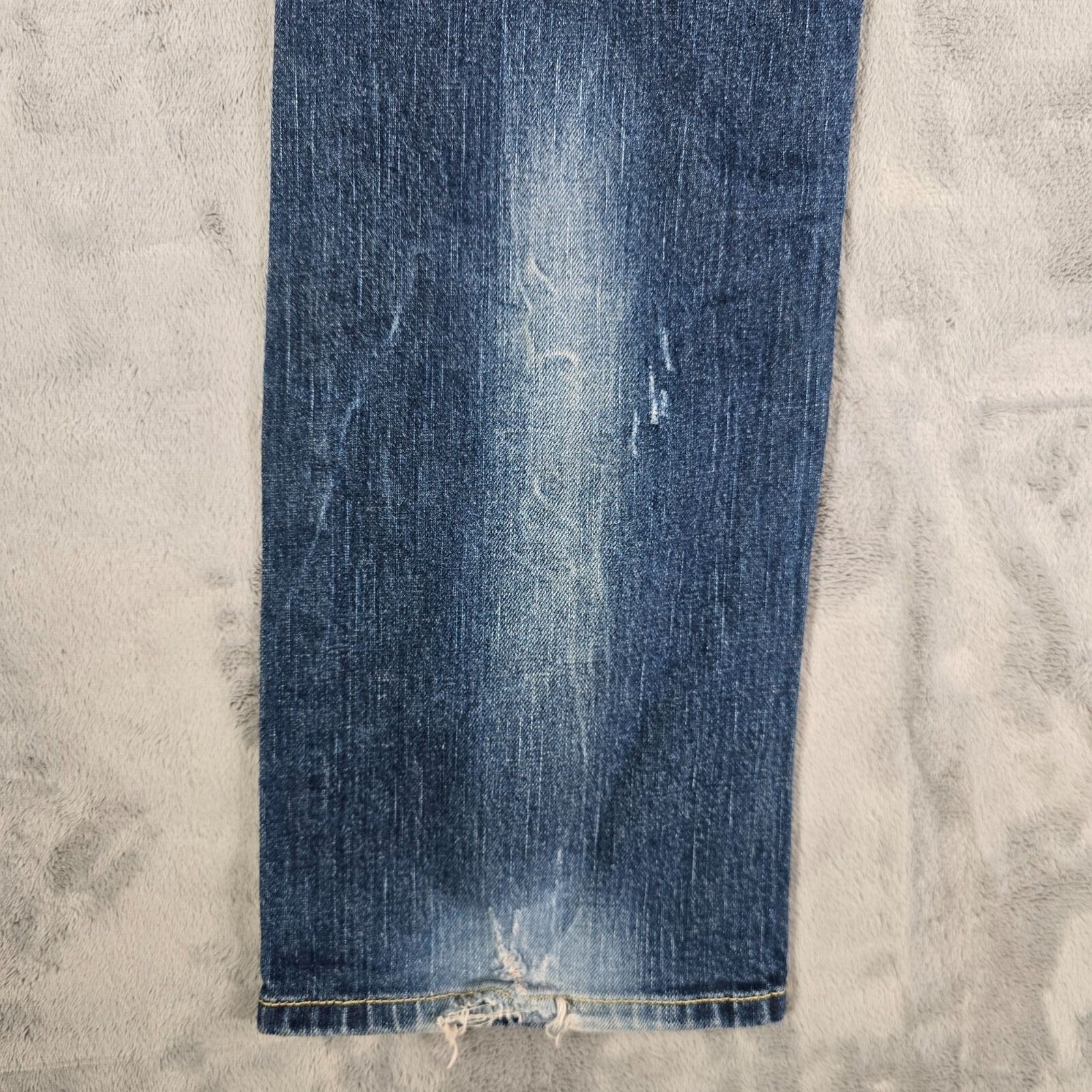Condition Notes: Good used condition. Whiskering on front at thighs. Fade pattern from thighs to calves on front and from calves to cuffs on back. Spots of heavy fabric wear/distressing scattered throughout. See photos.