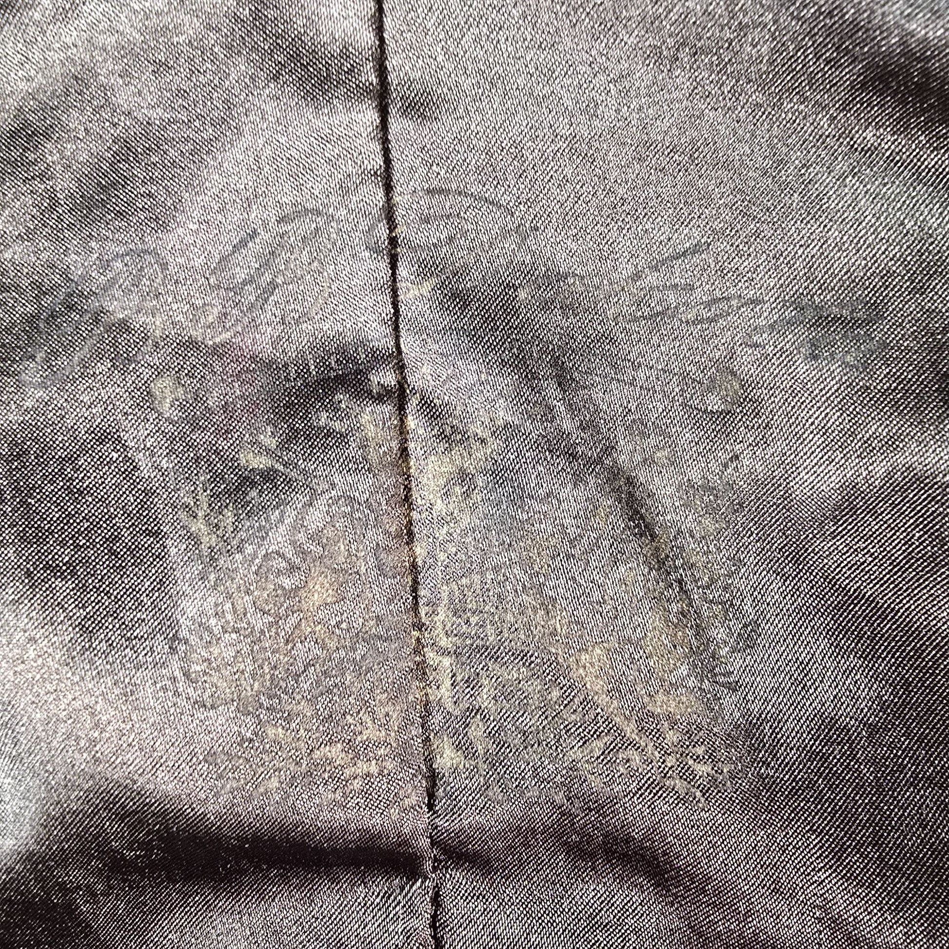 Good used condition. Coat is missing its original belt. Back left sleeve has an area of heavy wear with scuffing and small holes. Inner lining has tears at both pits (not visible when coat is worn). Otherwise light to moderate fabric wear and fading throughout. See photos for details.