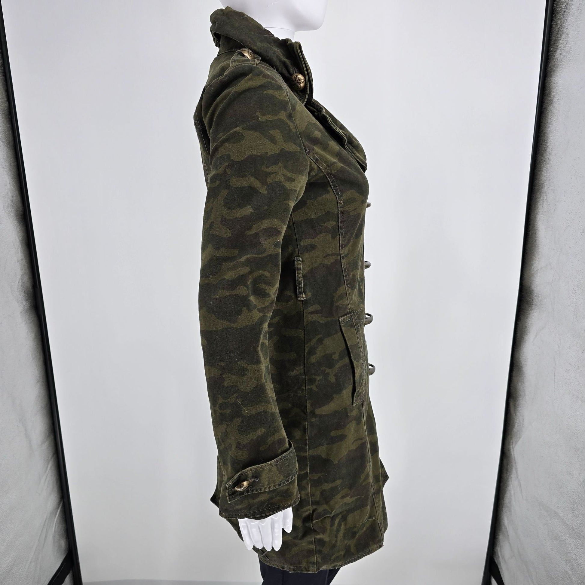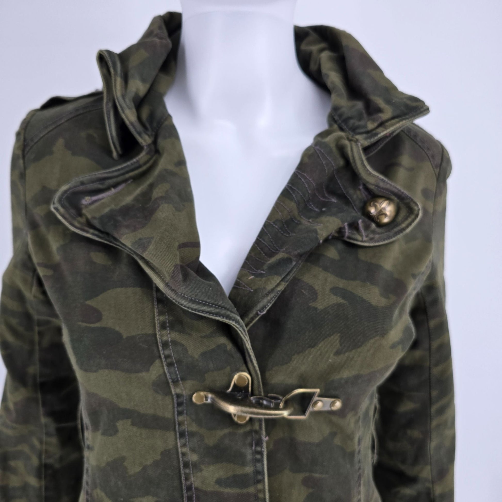 2010s BB Dakota Women's Green Camouflage Military-Style Clasp Front Coat (XS)