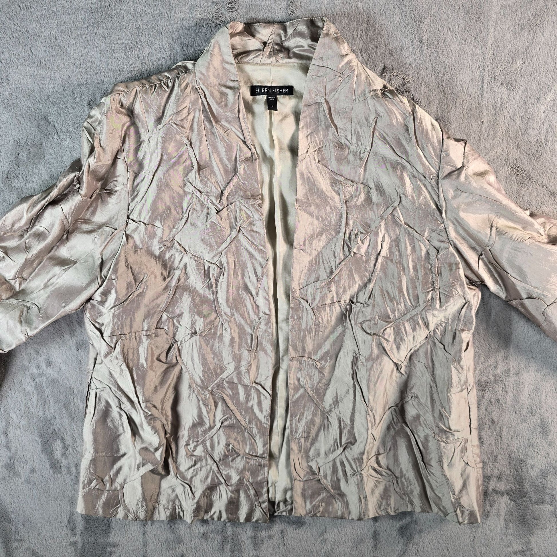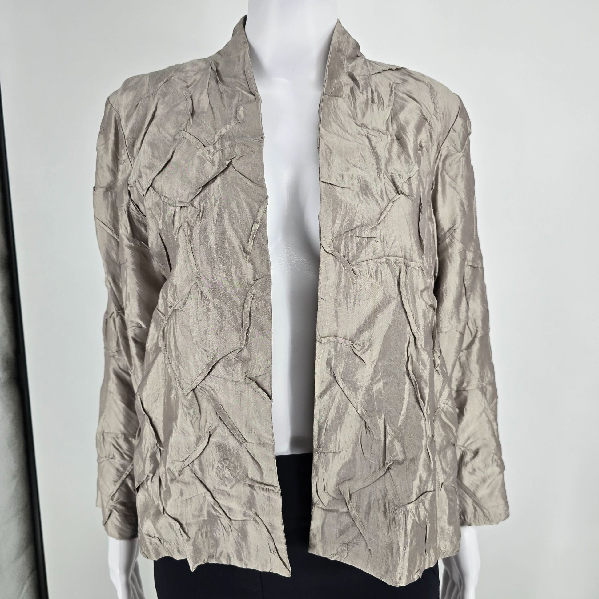 2010s Eileen Fisher Women's 100% Silk Crinkle Texture Open Front Jacket (S)