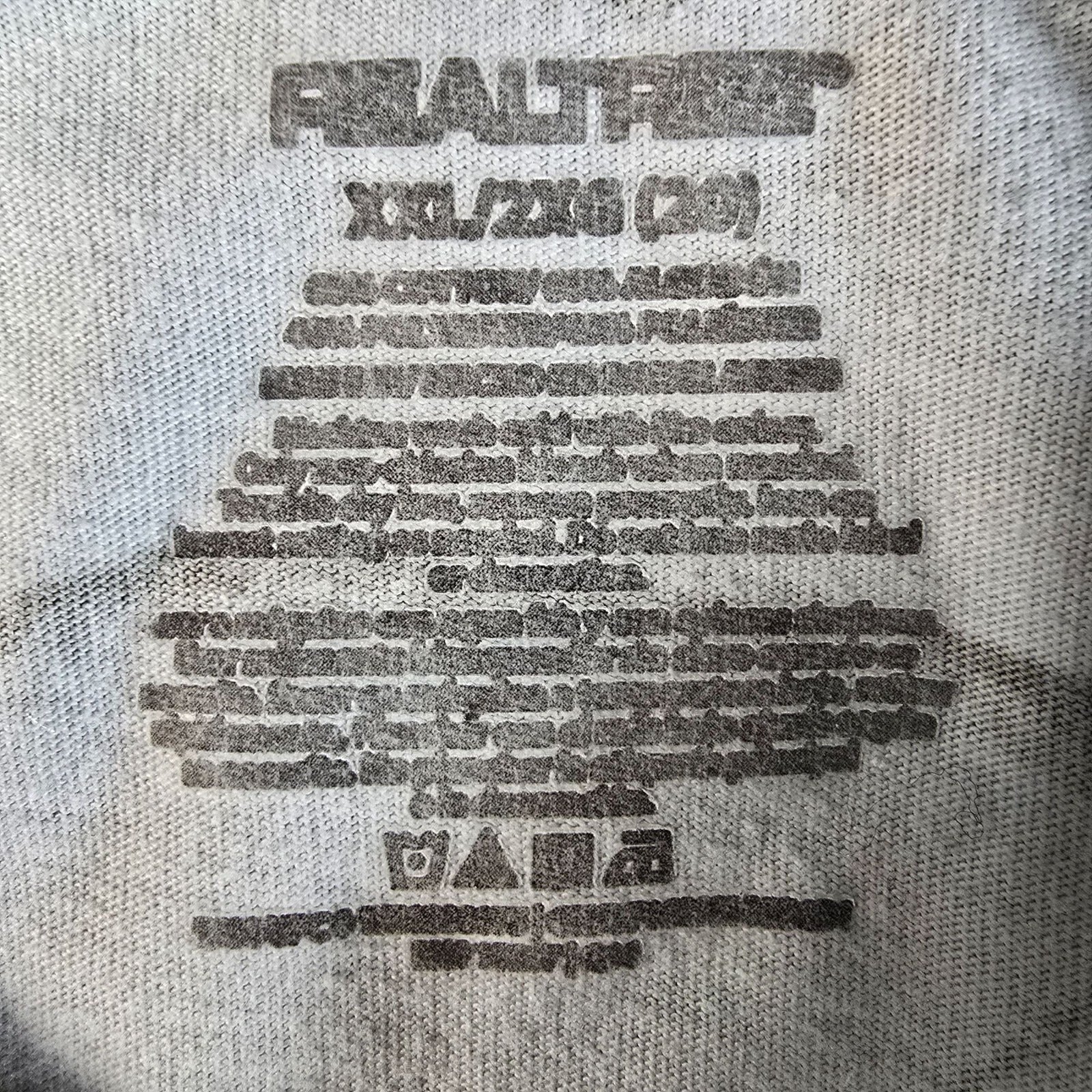 Faint stain on front of shirt in middle about 2/3 of way down to hem.