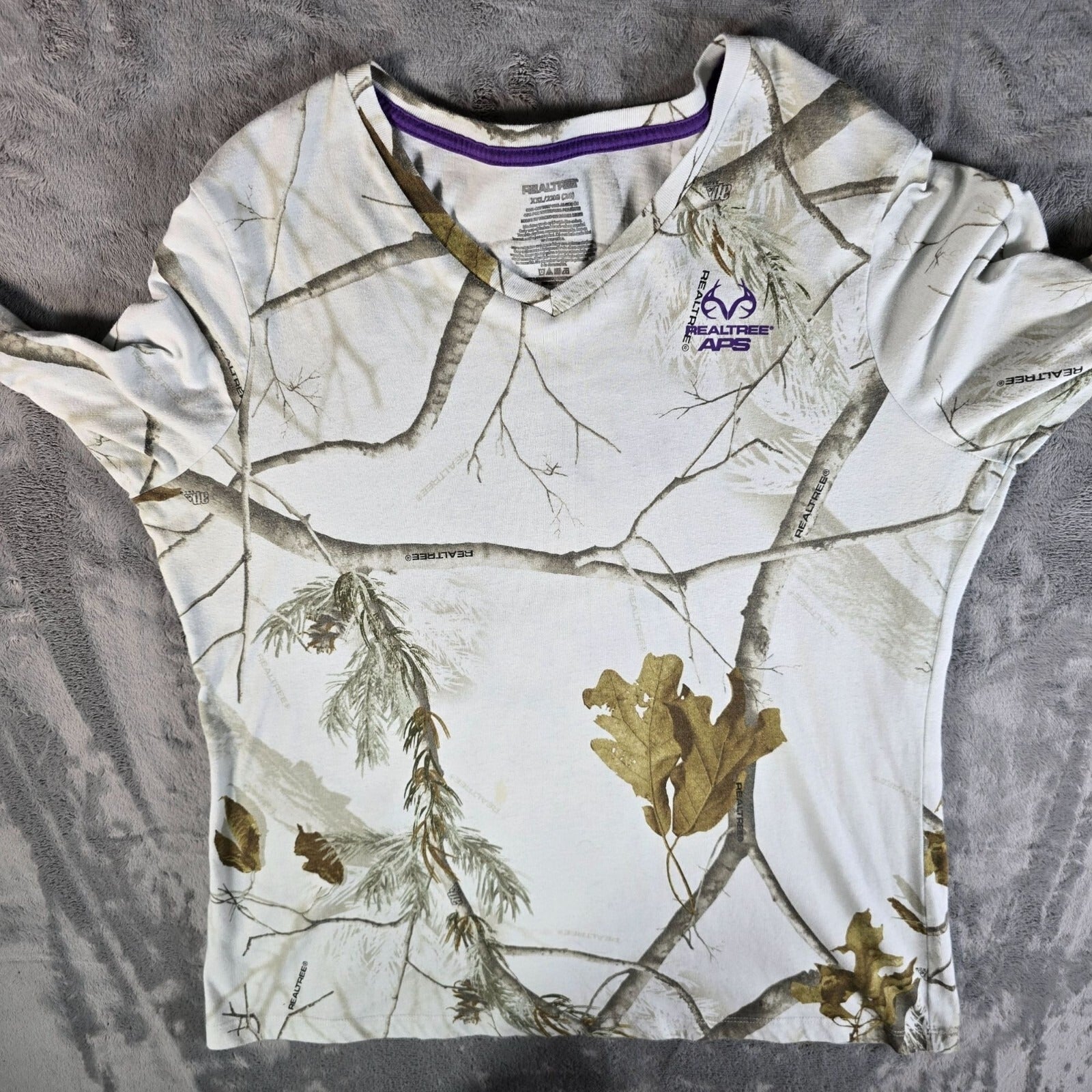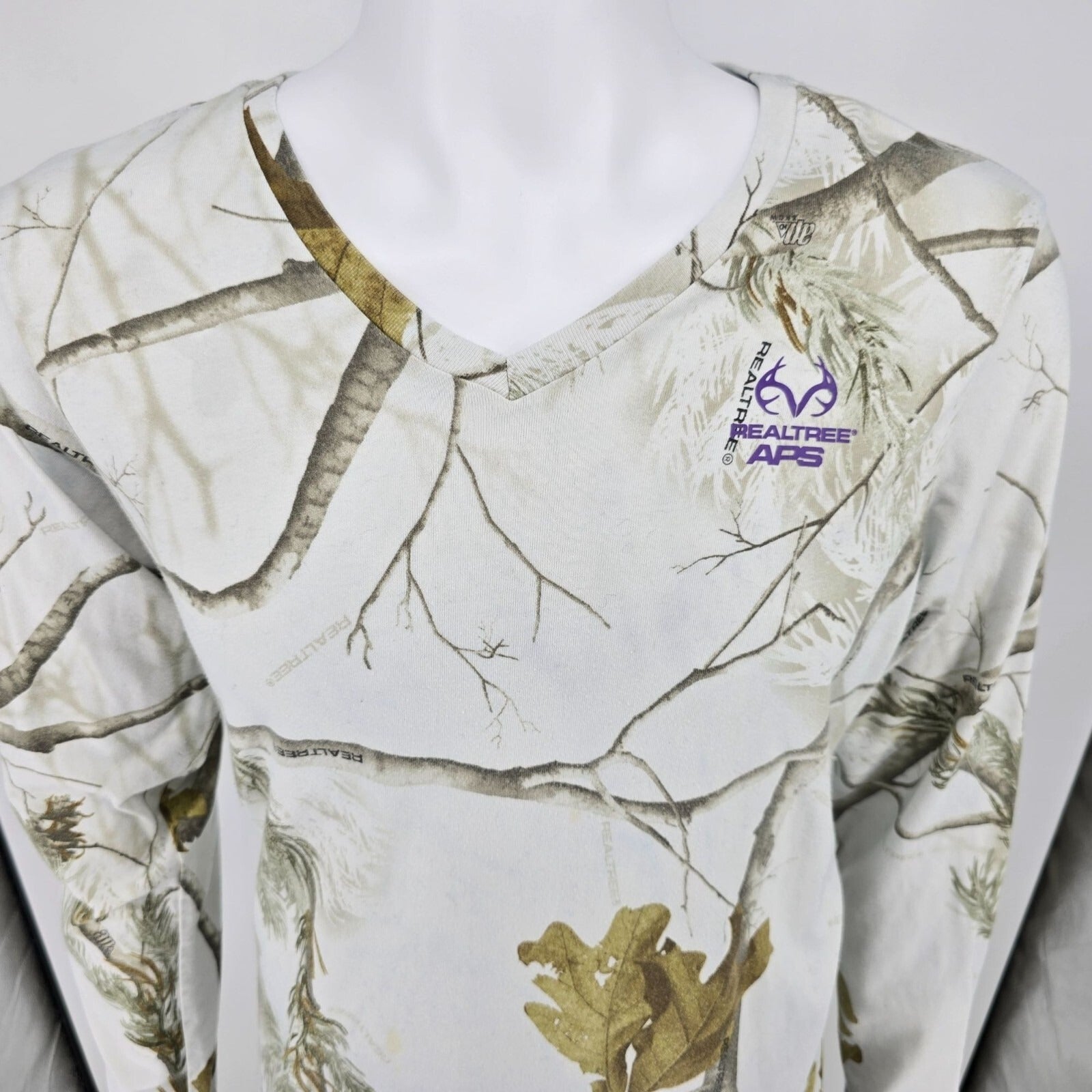 2010s Realtree APS Snow Camo V-Neck Long Sleeve Performance T-Shirt (Womens XXL)
