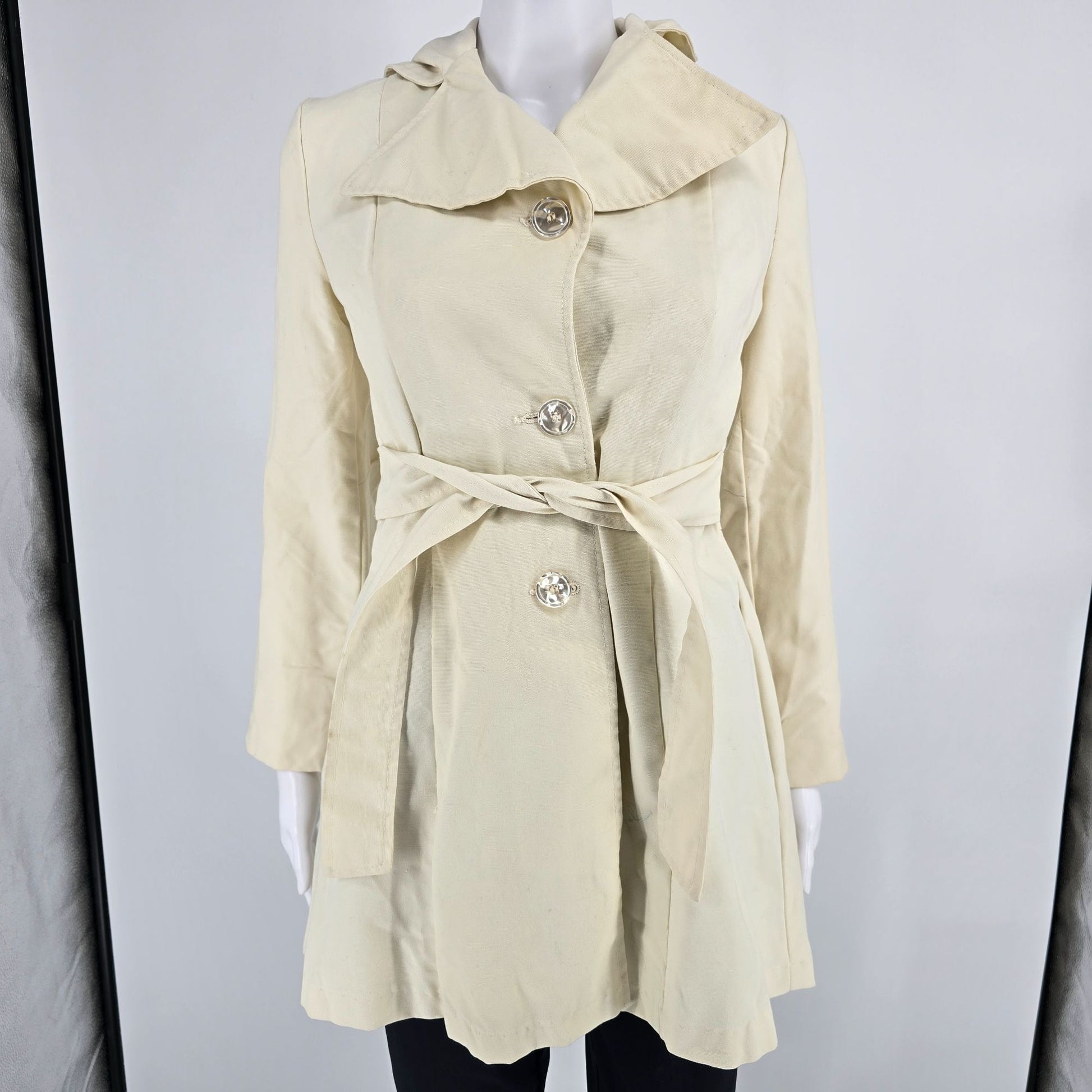 2010s Unbranded Women's Cream/Off-White Single-Breasted Belted Trench Coat (S)