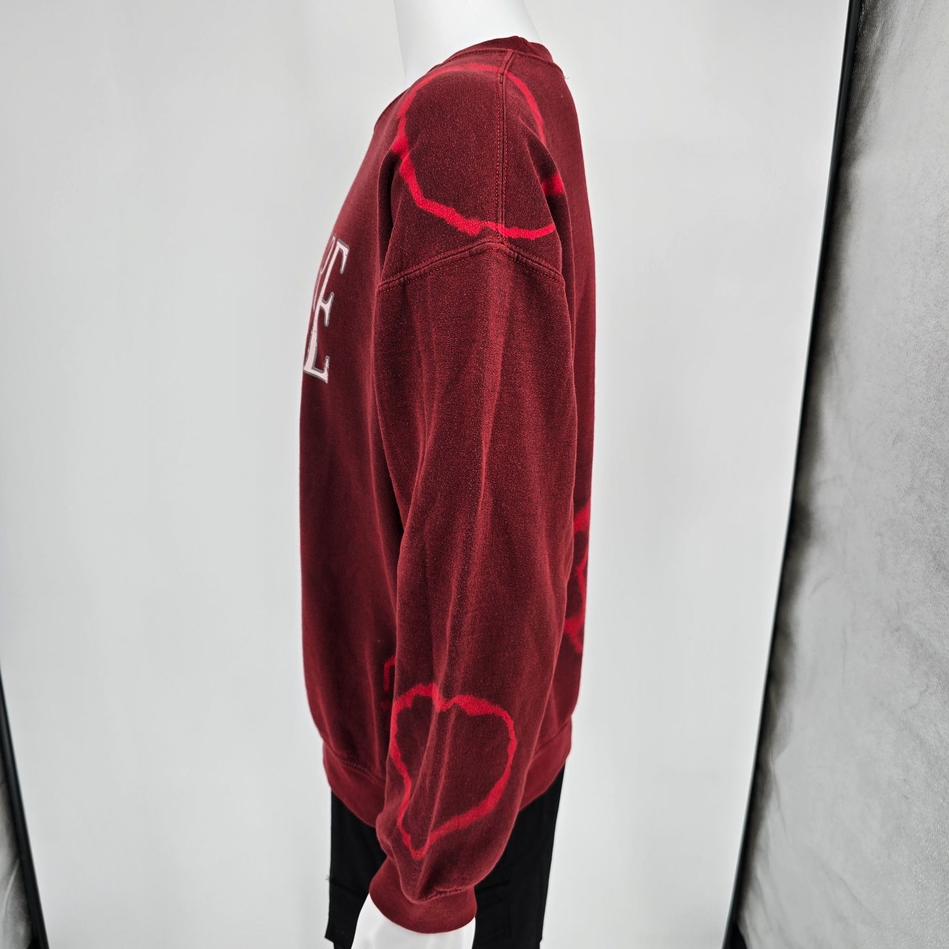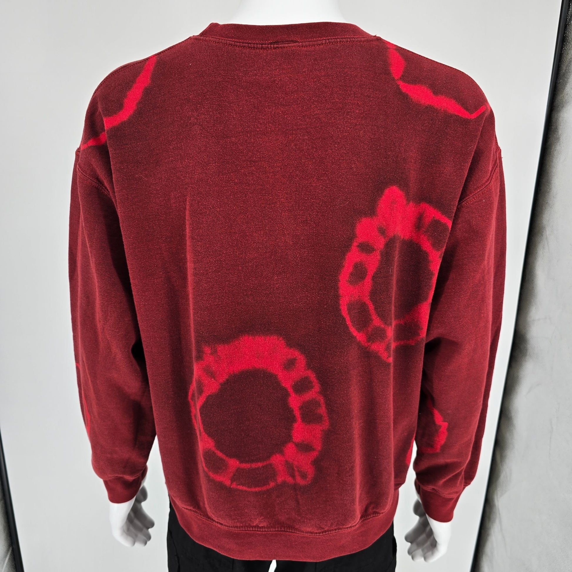 Color: Burgundy with red bleach tie-dye