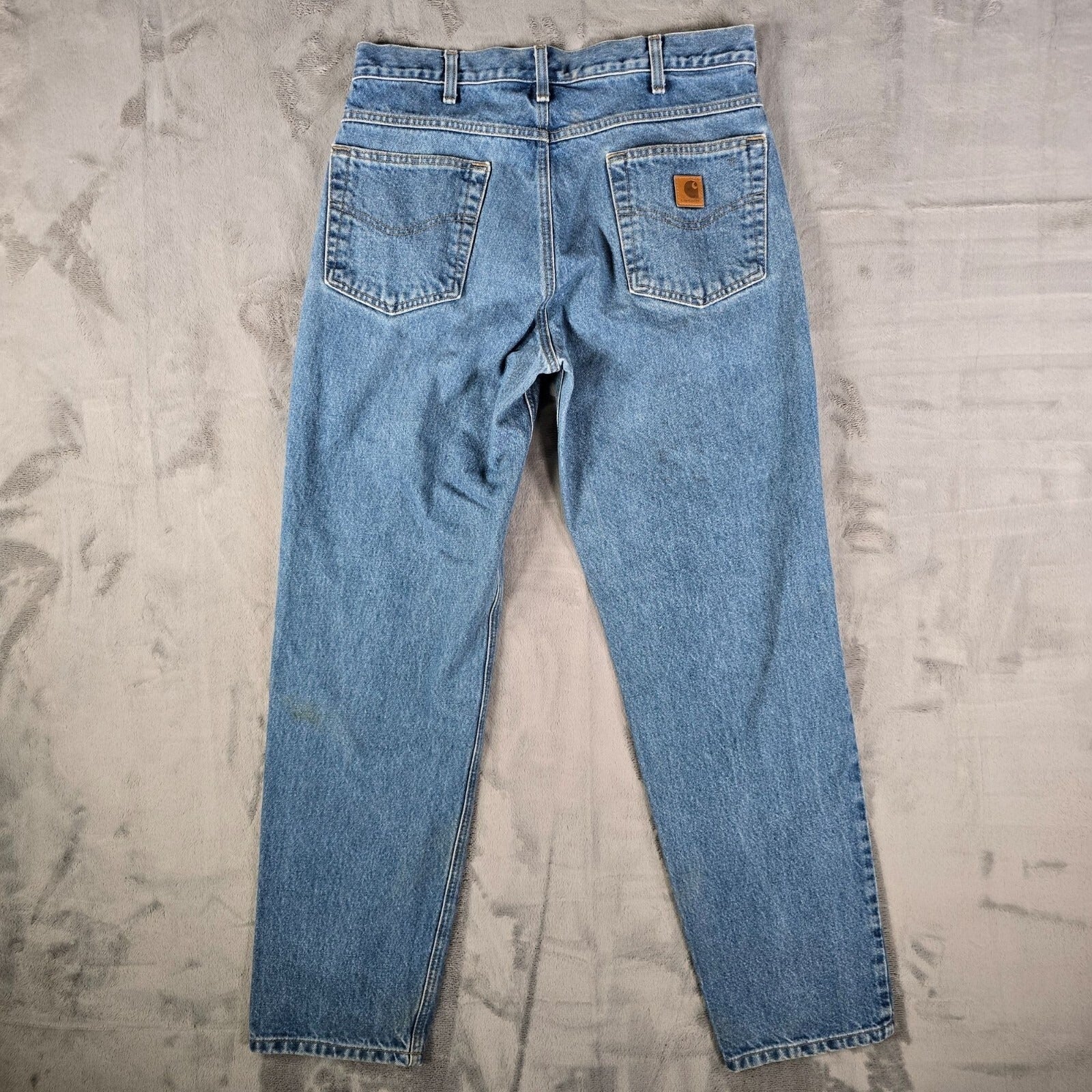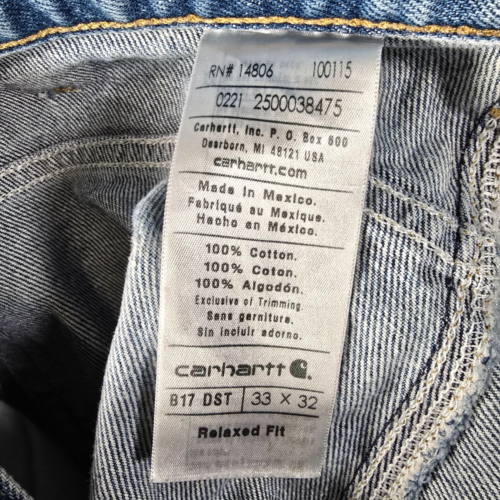 2021 Distressed Carhartt Mens #B17 Relaxed Fit Taper Leg Darkstone Jeans (33x31)