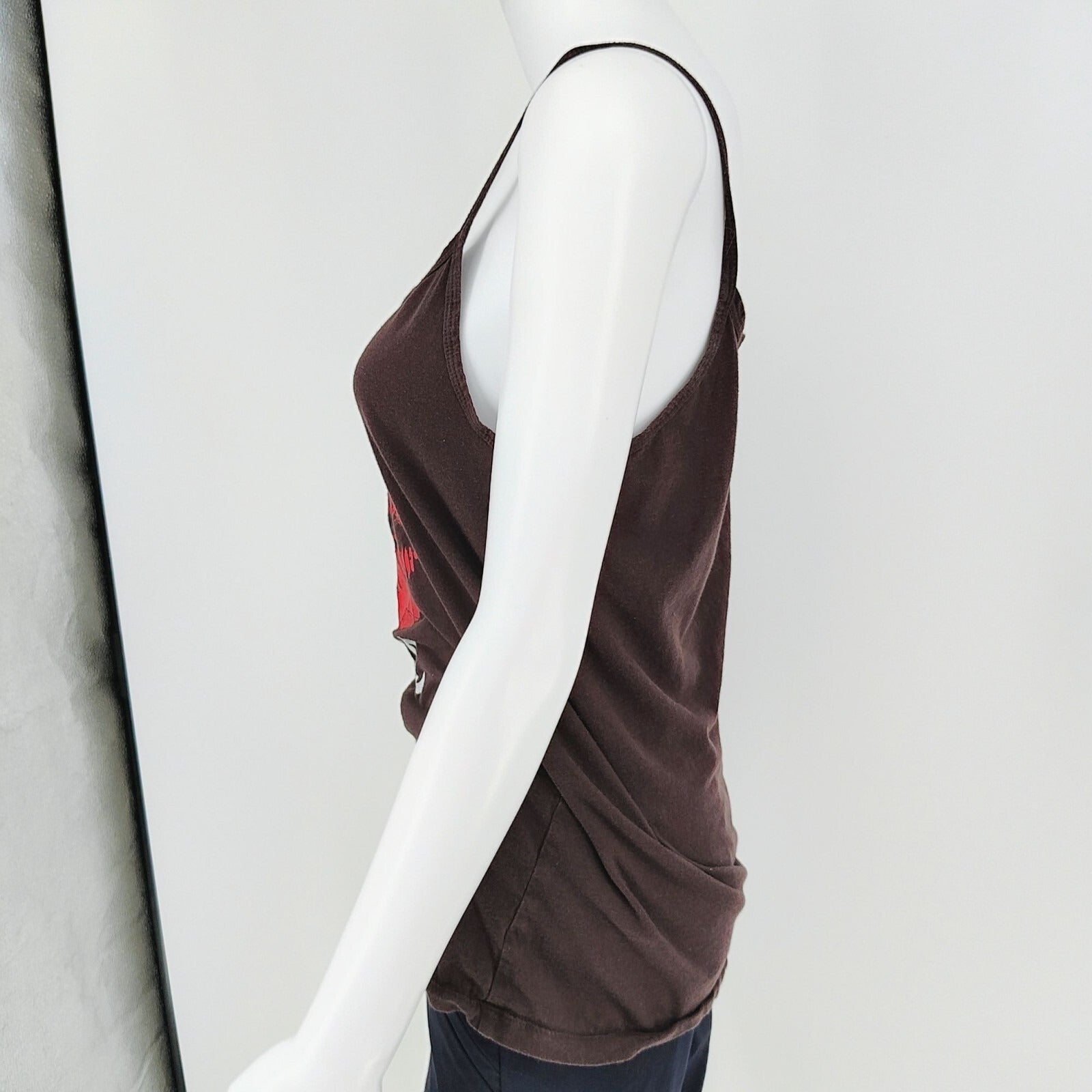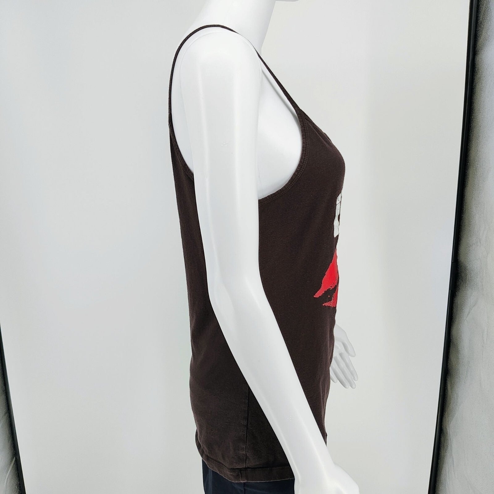 Bella "Don't Kiss & Tell" Lips Graphic Brown Spaghetti Strap Tank Top (XL)
