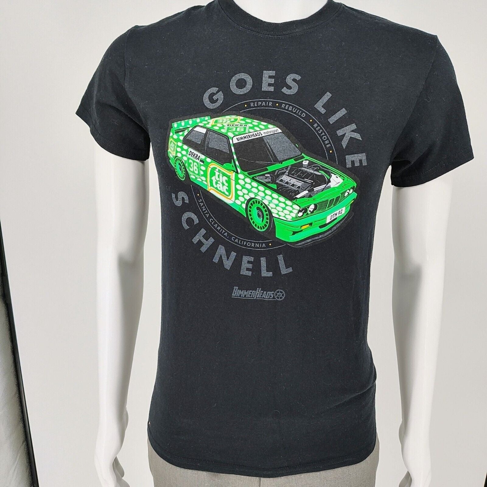 BimmerHeads "Goes Like Schnell" BMW M3 E30 Tic Tac Black Graphic T-Shirt (XS)