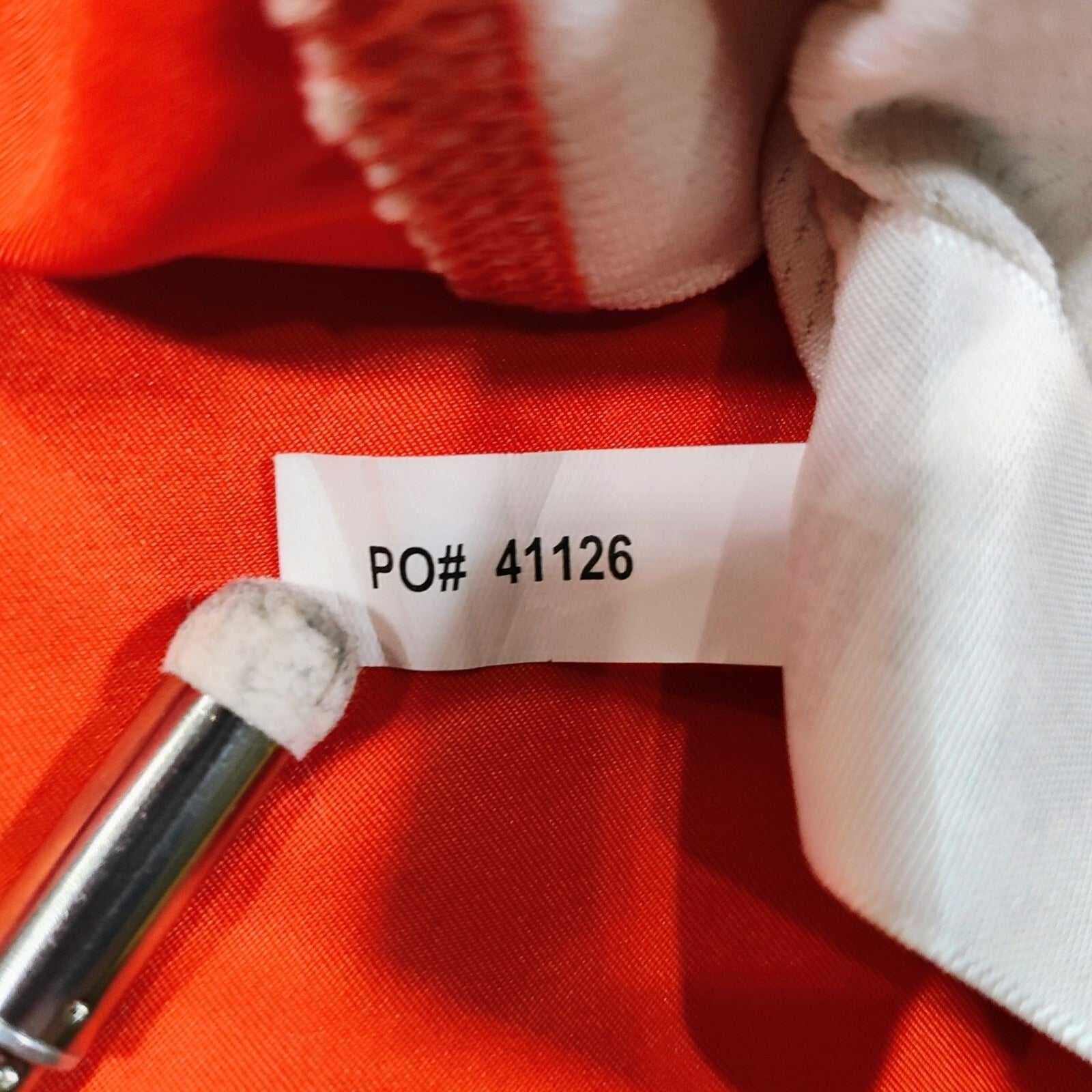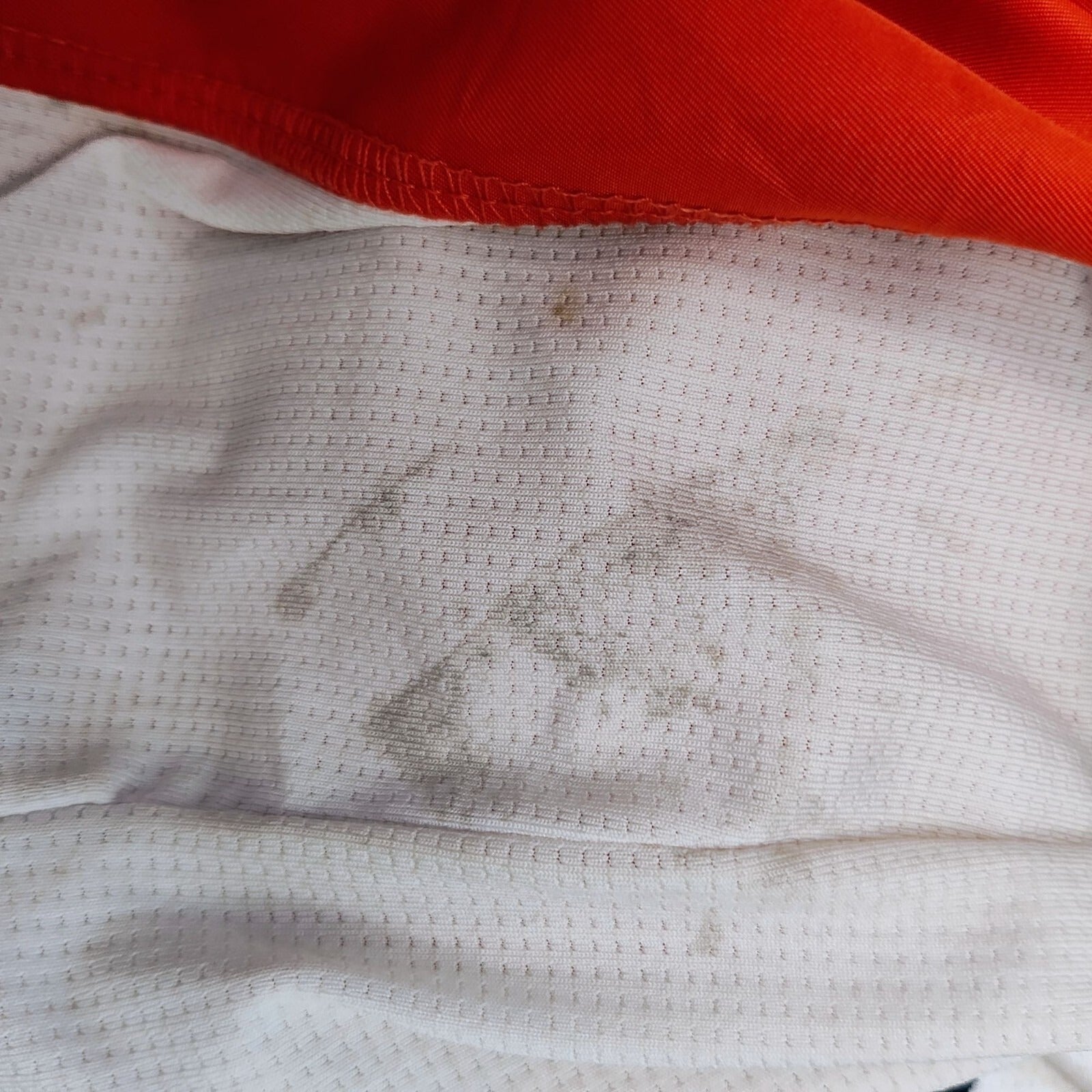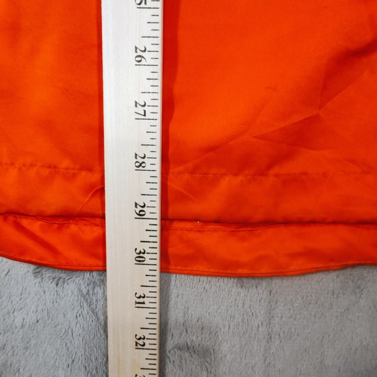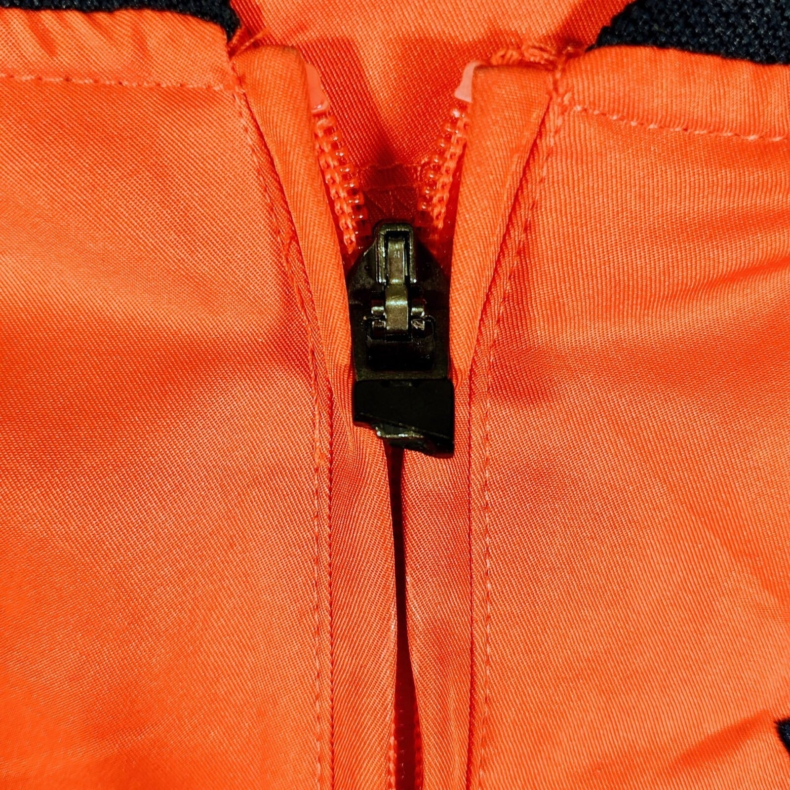 Fair Condition. Small stain on back. Broken pull on front zipper (zipper still works). Large stain right side of the back of the jacket. Additional small stains/discoloration throughout (see pictures)