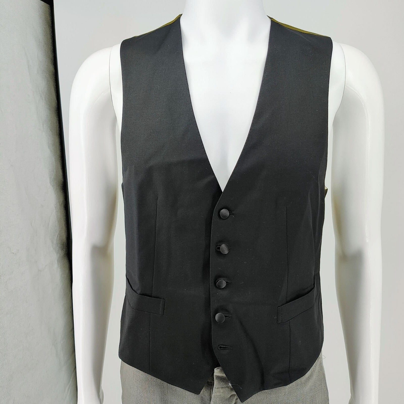 Brioni Mens 100% Wool Made in Italy Black Suit Vest Gold Back (XS)
