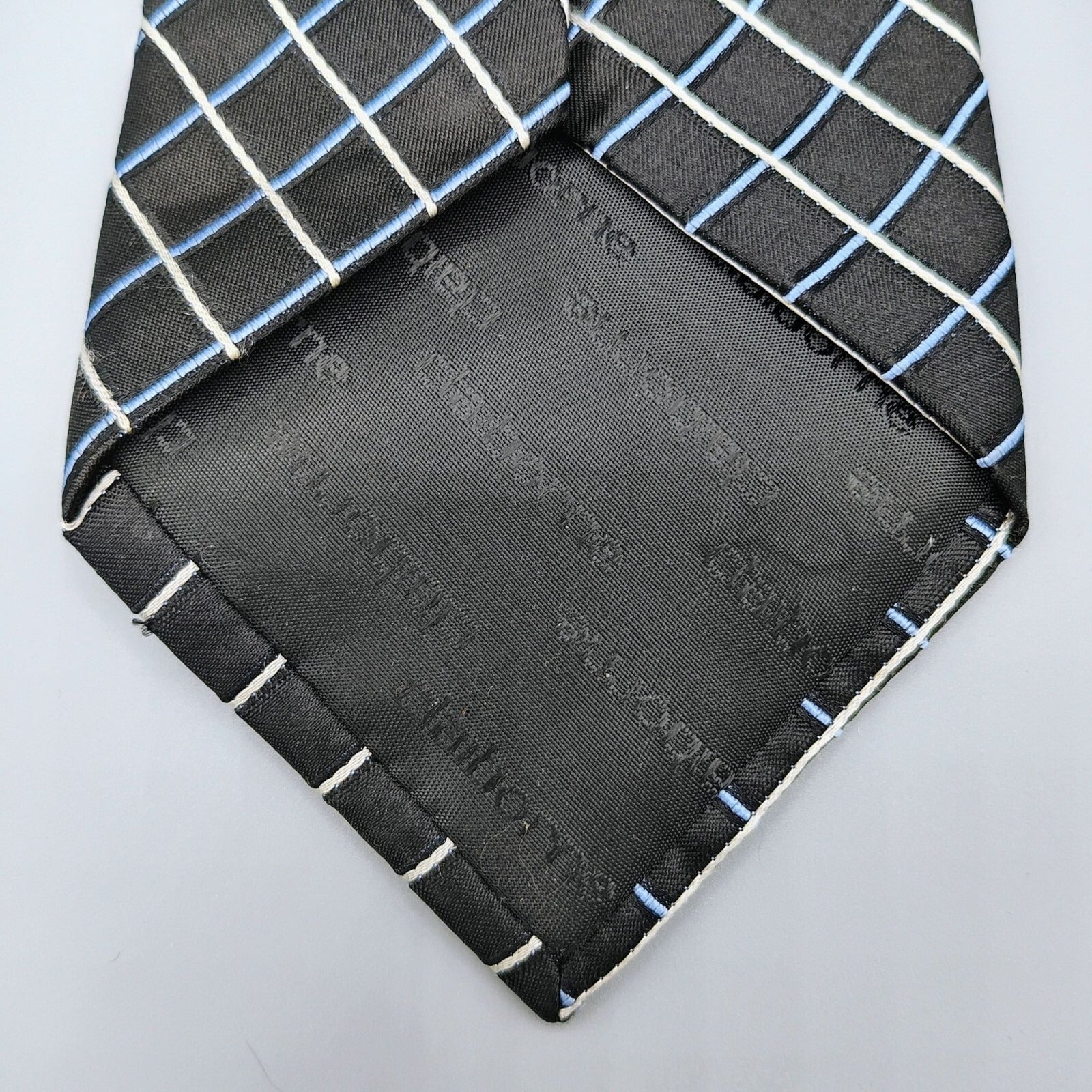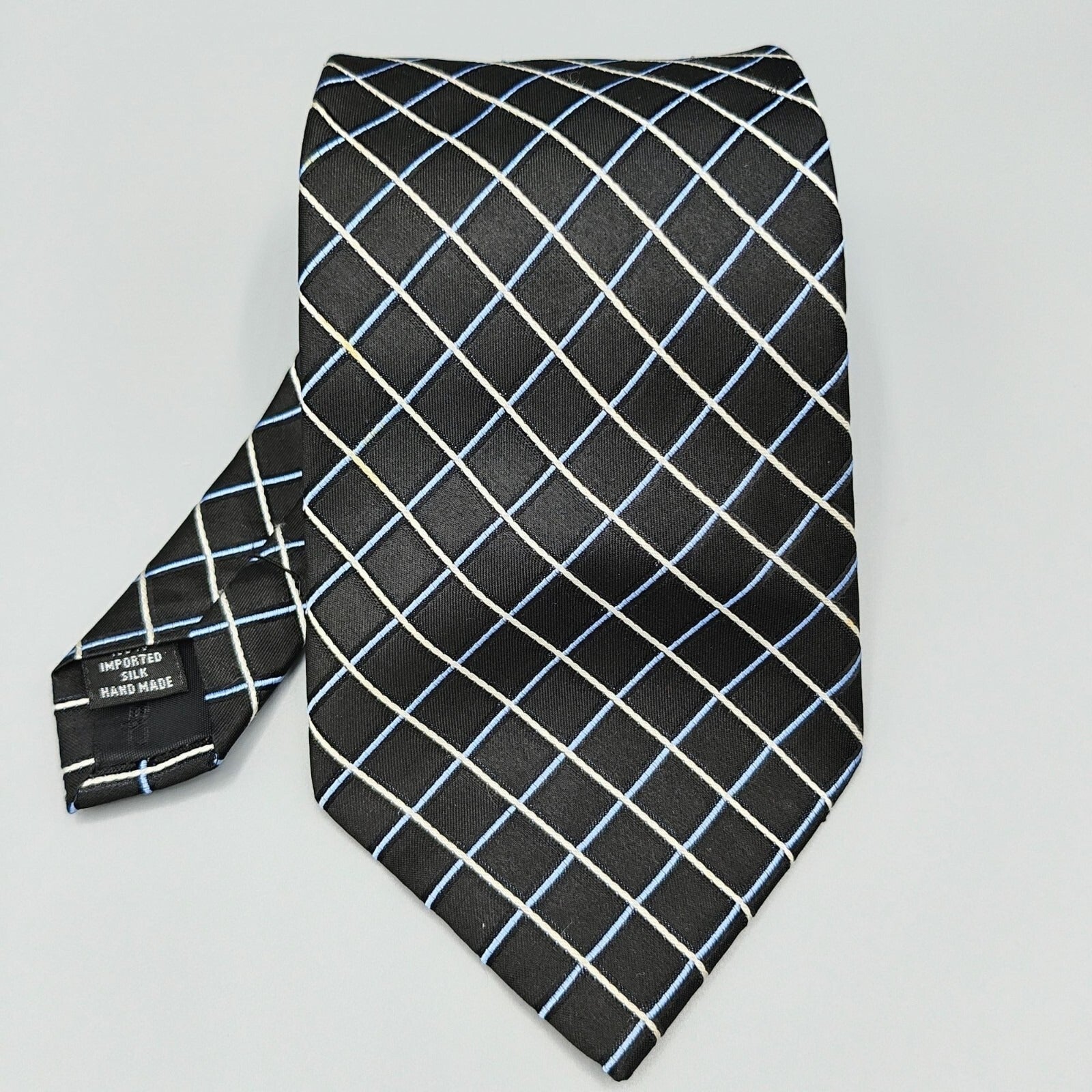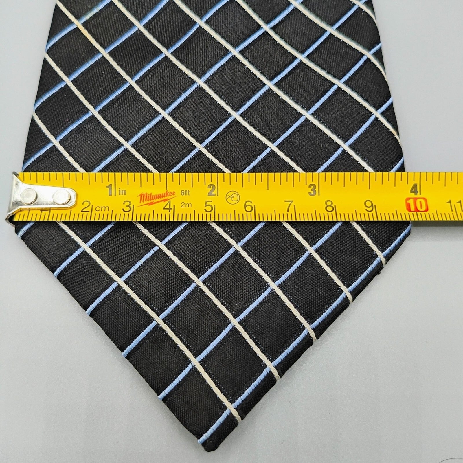 Claiborne Mens Black, Blue, and White Grid Pattern Textured 100% Silk Necktie