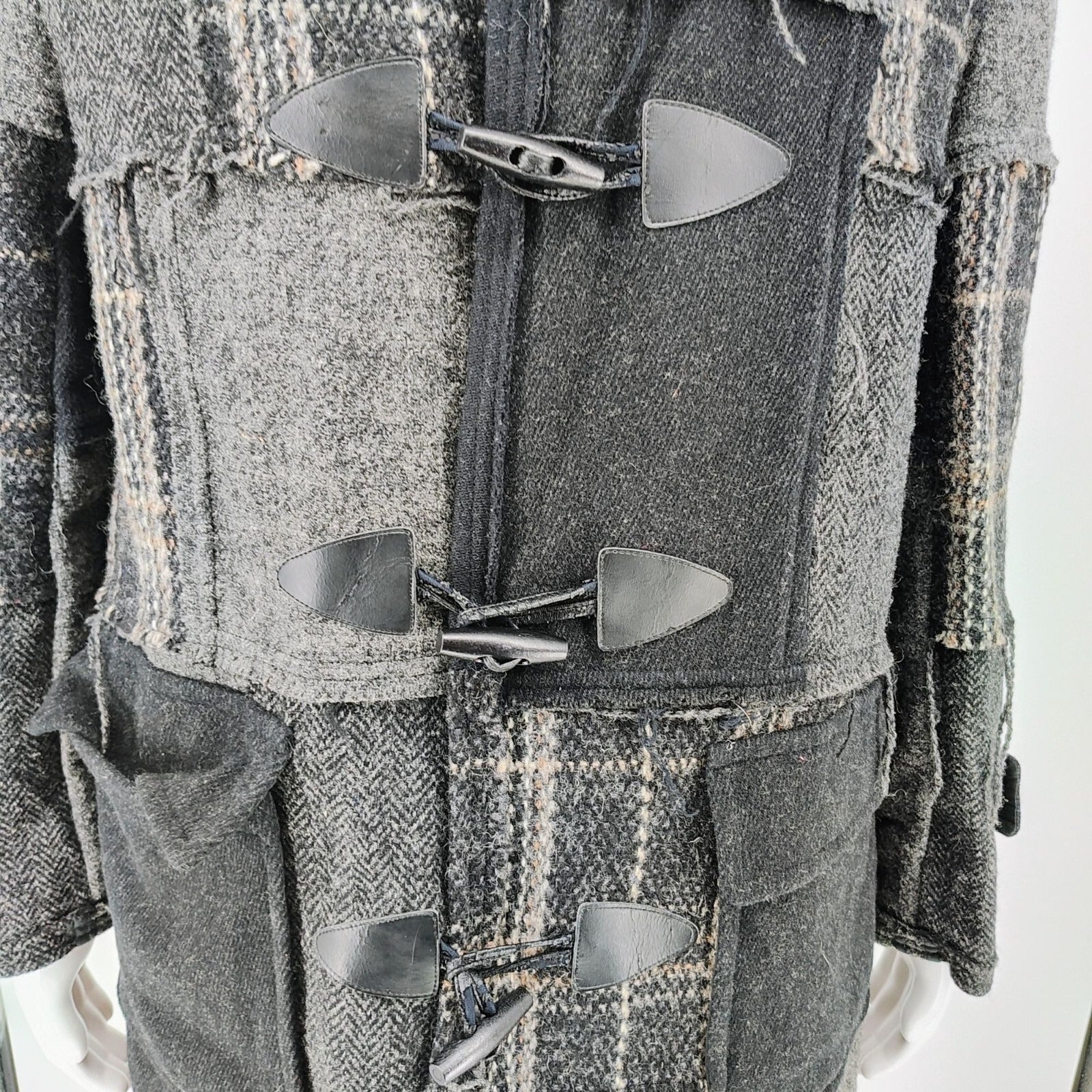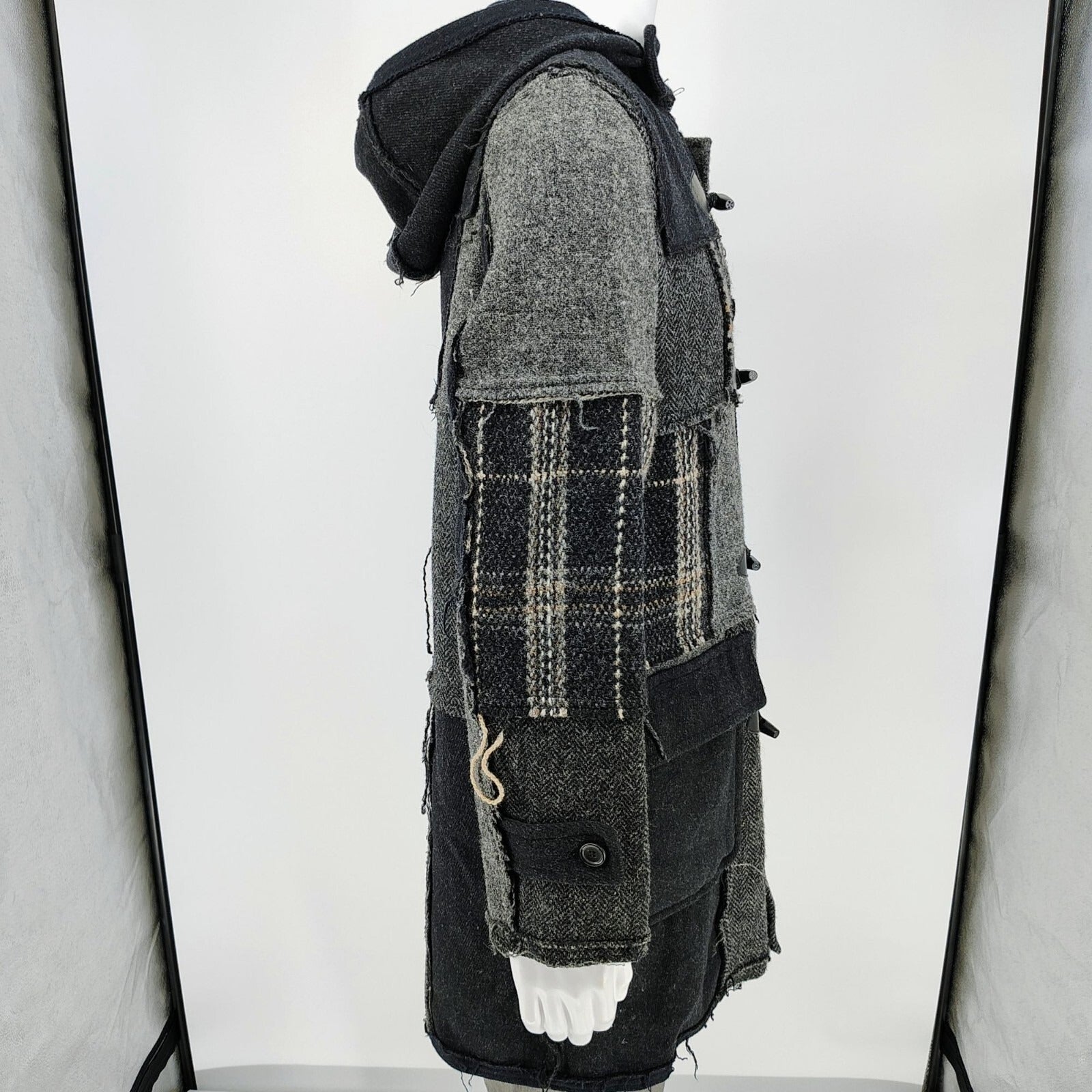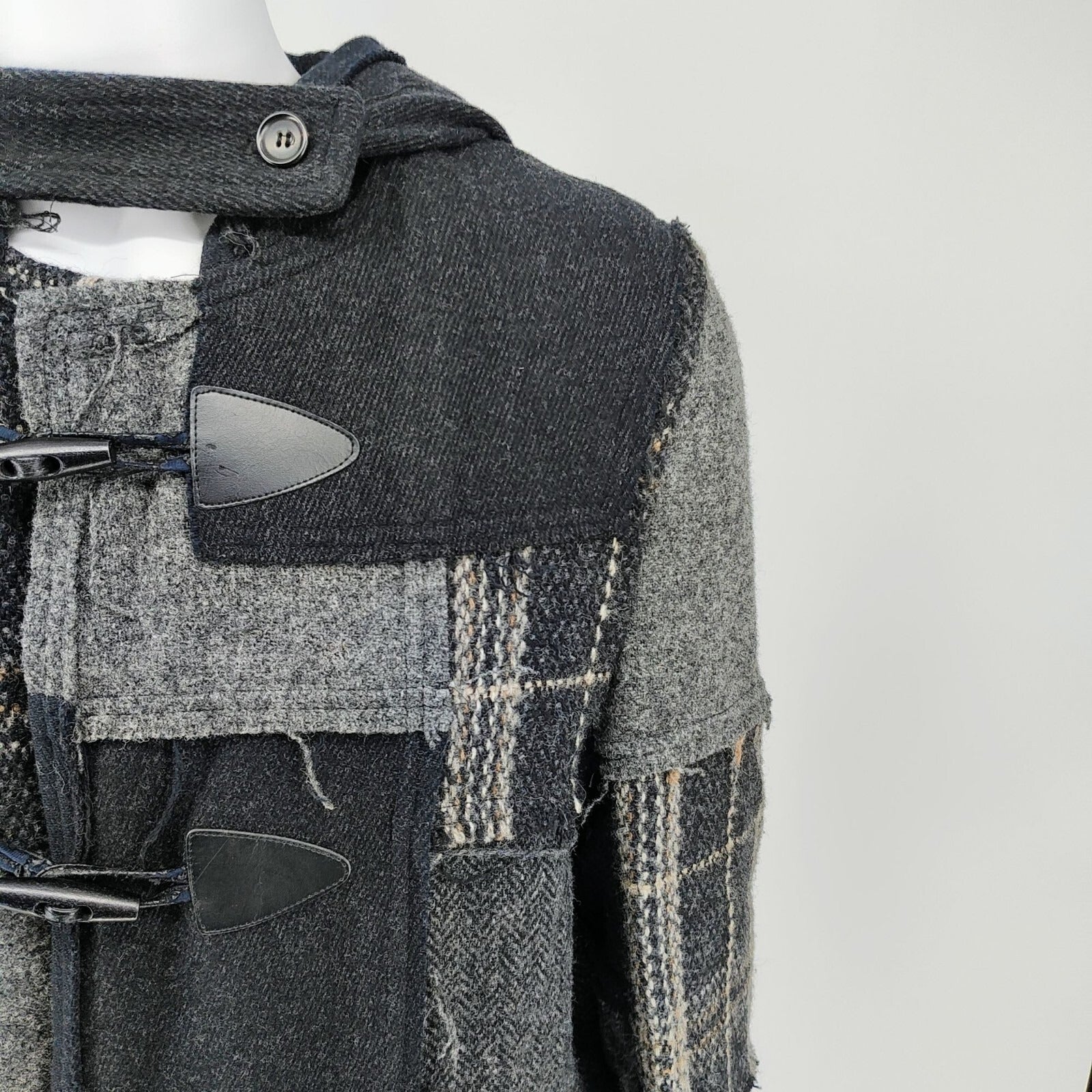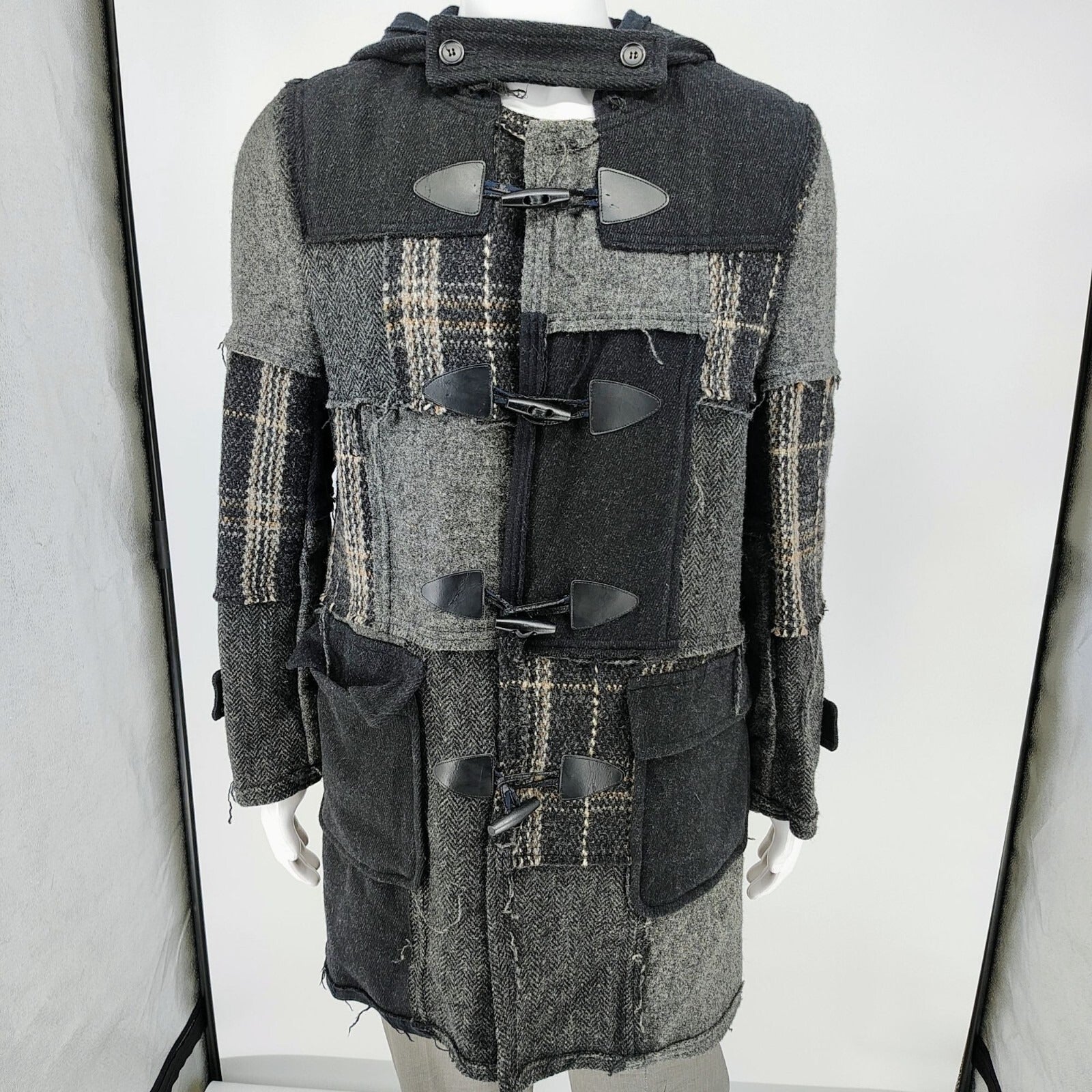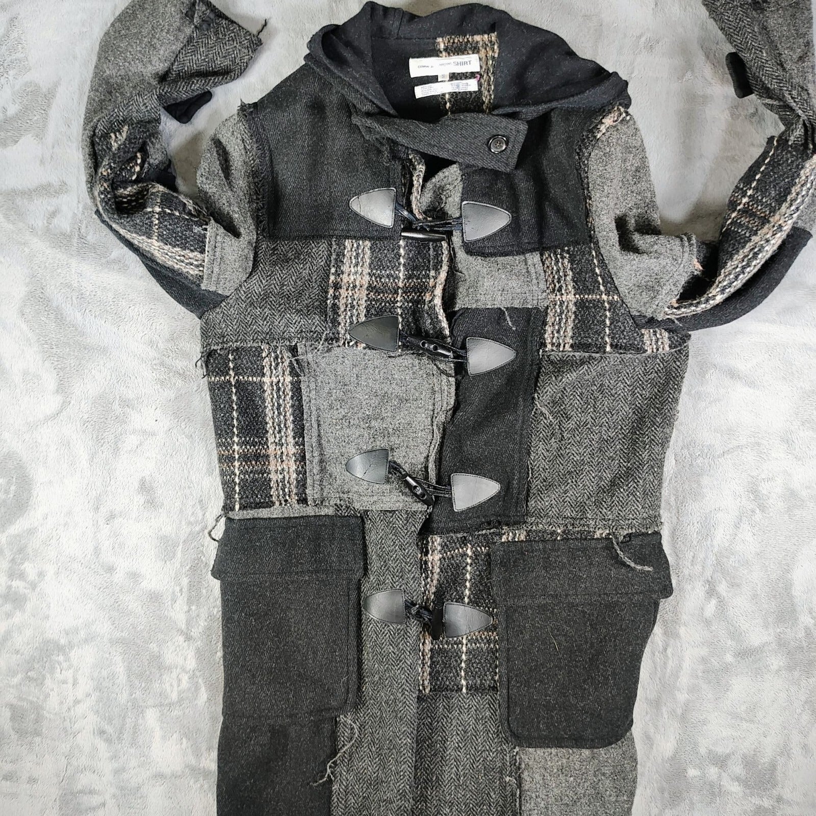 Comme Des Garcons SHIRT Hooded Toggle Closure Wool Patchwork Duffle Coat (S)