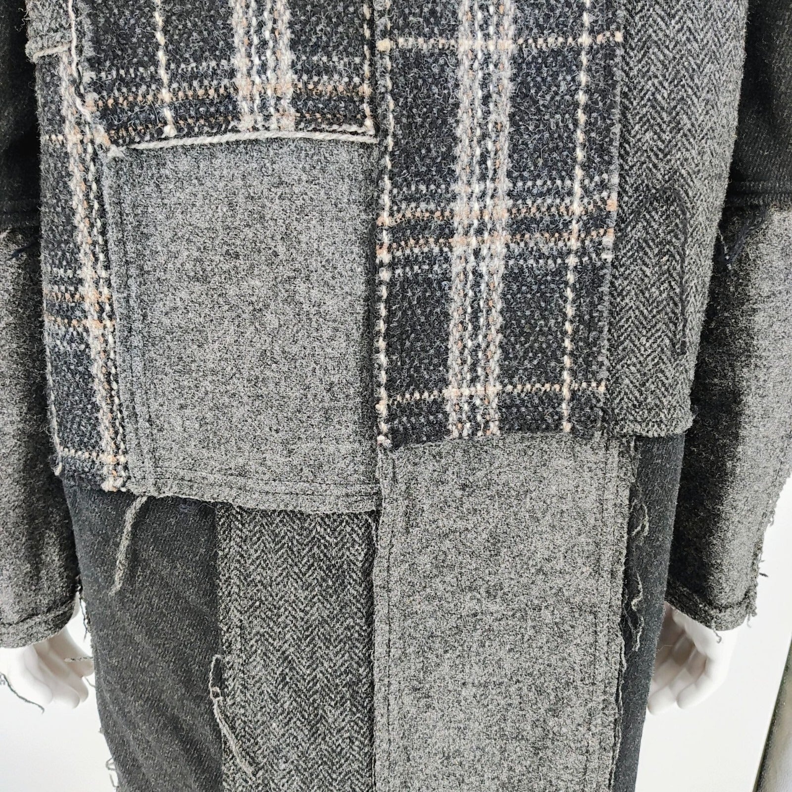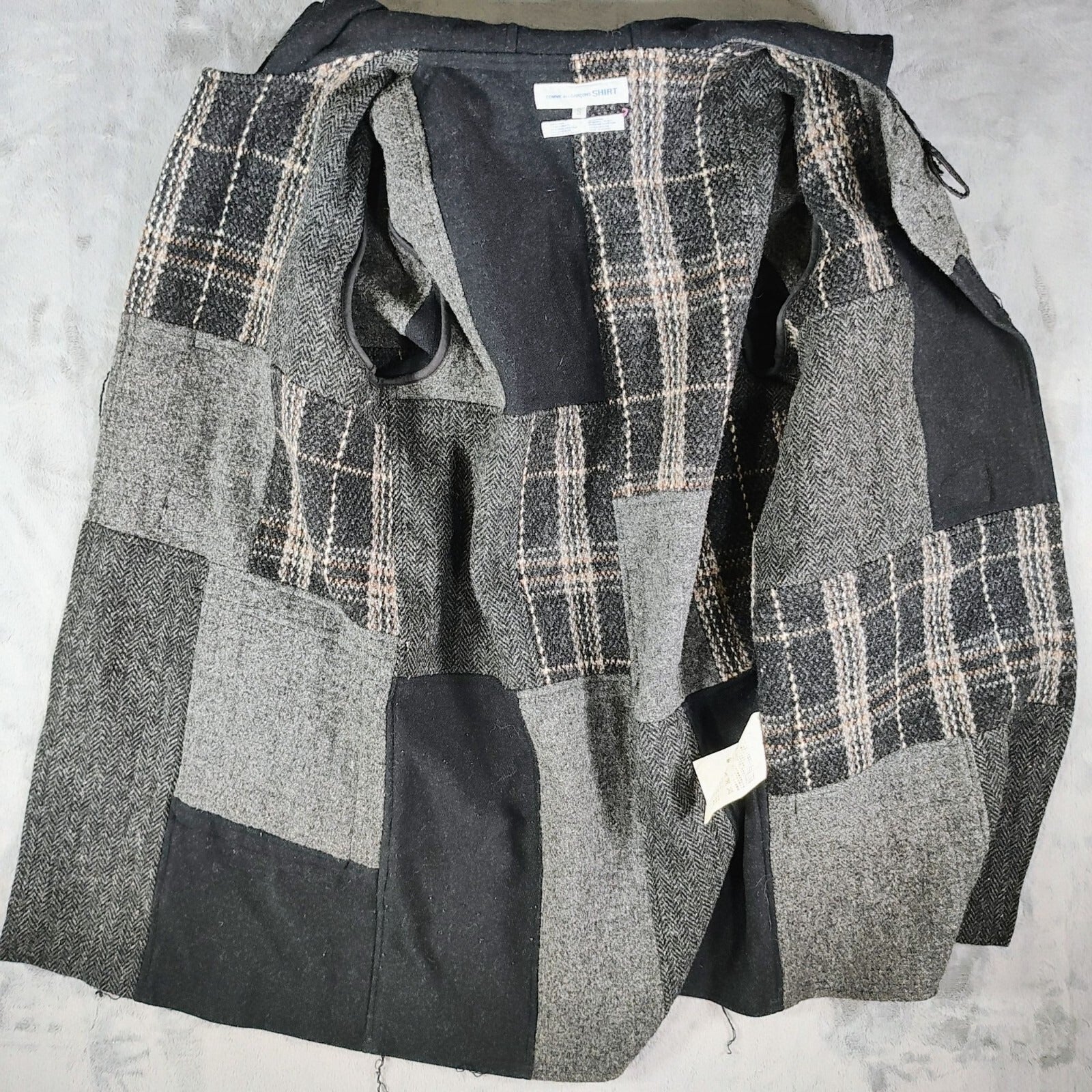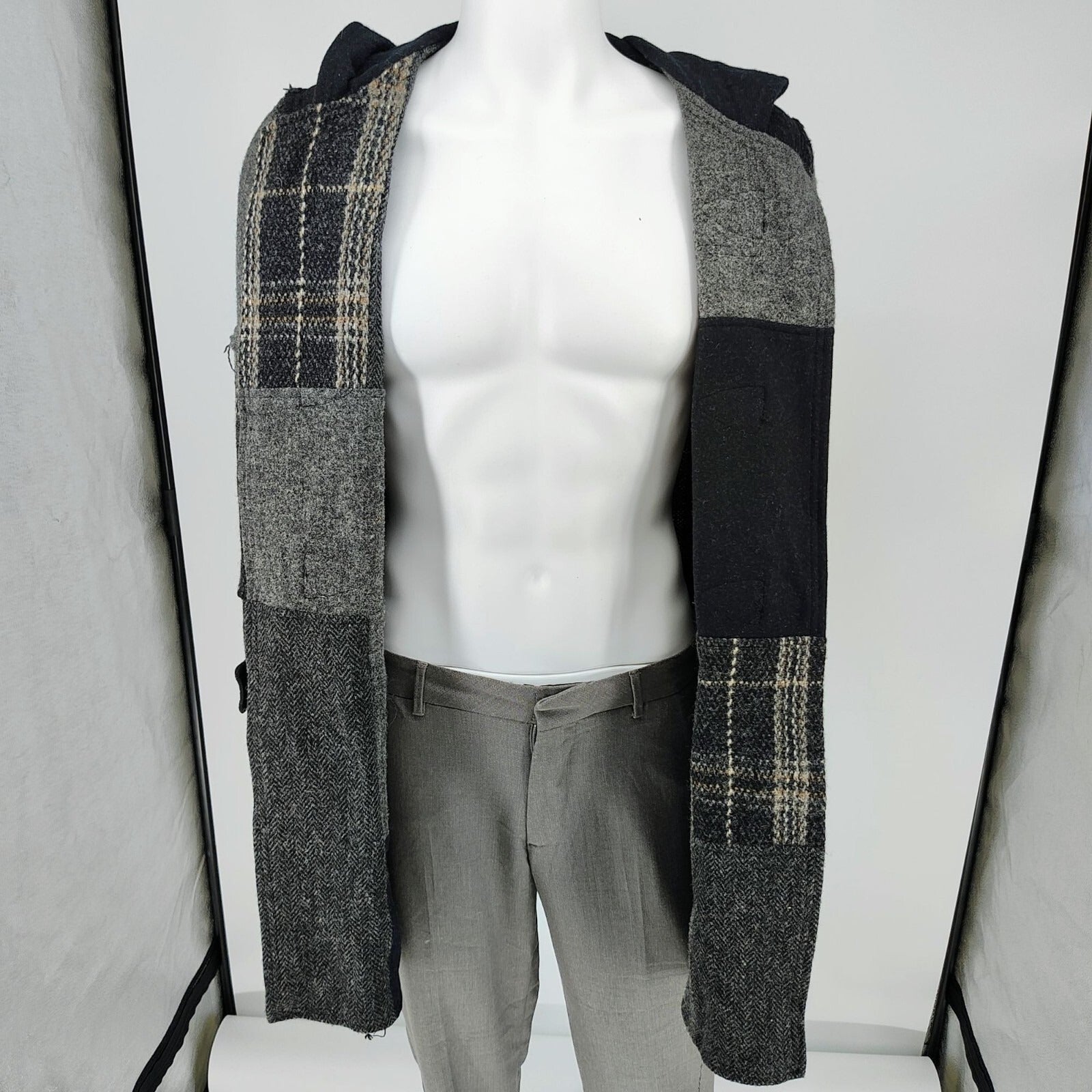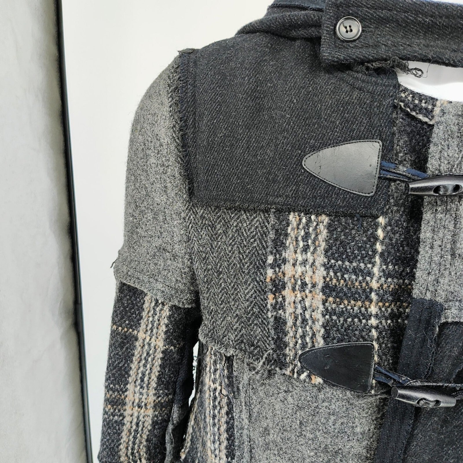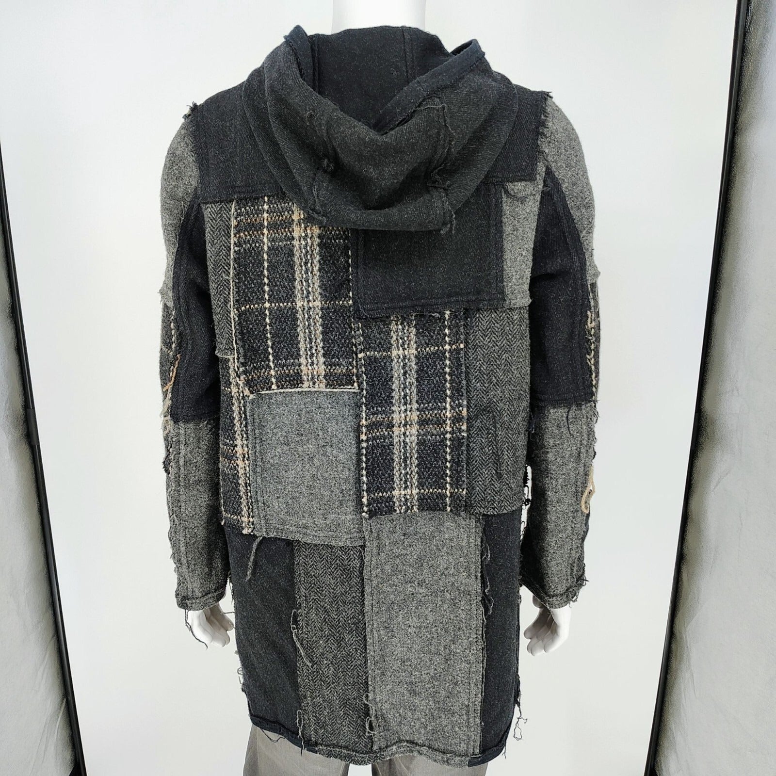 Comme Des Garcons SHIRT Hooded Toggle Closure Wool Patchwork Duffle Coat (S)