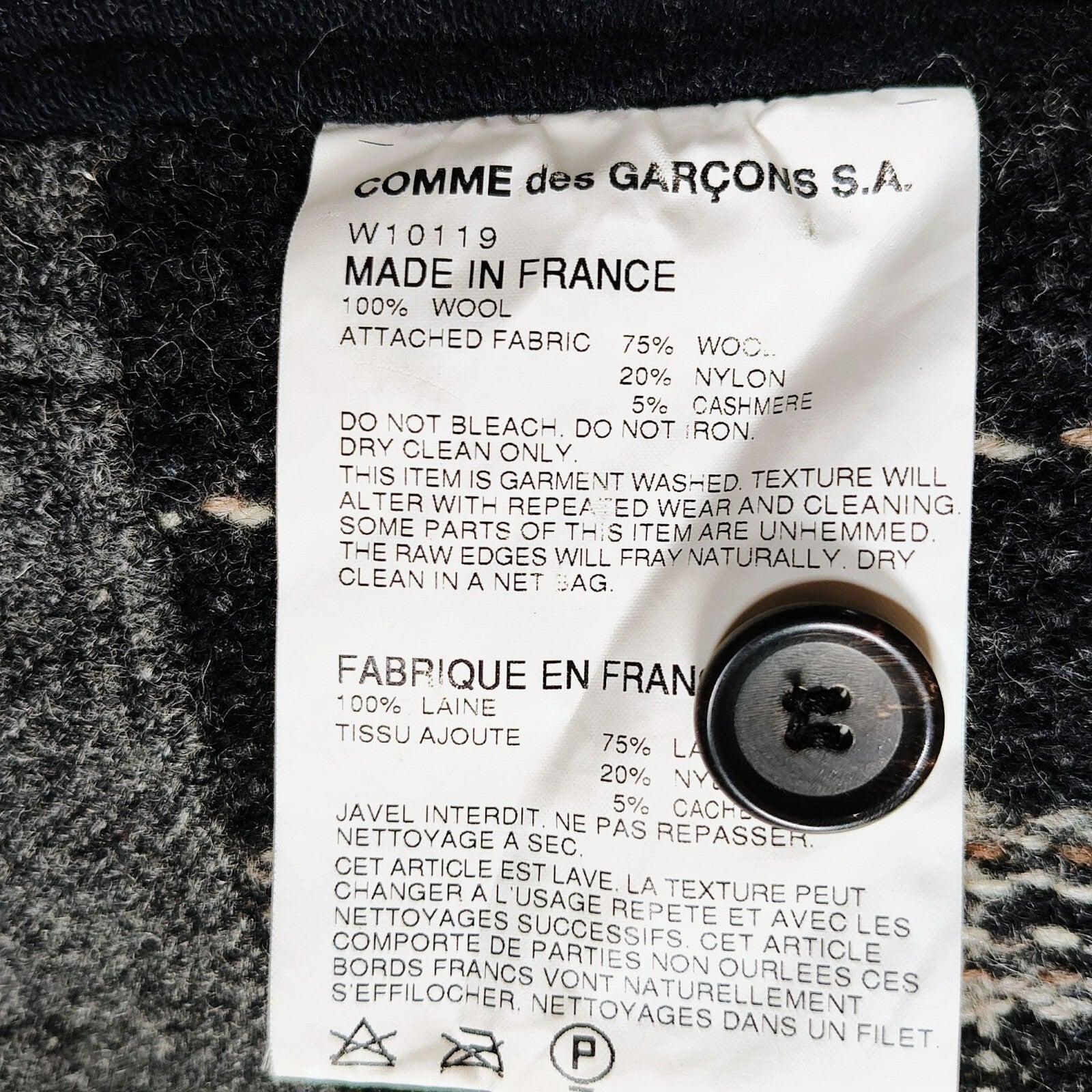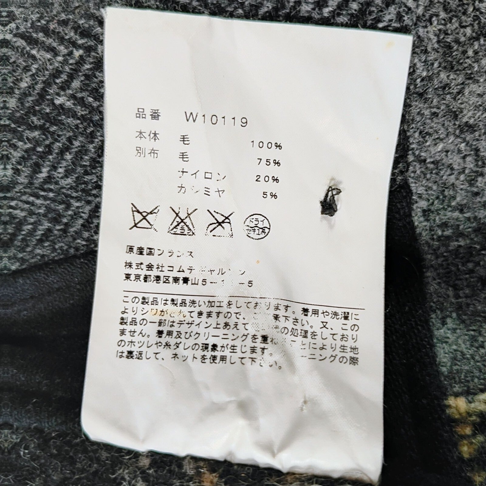 • Attached fabric: 75% Wool, 20% Nylon, 5% Cashmere