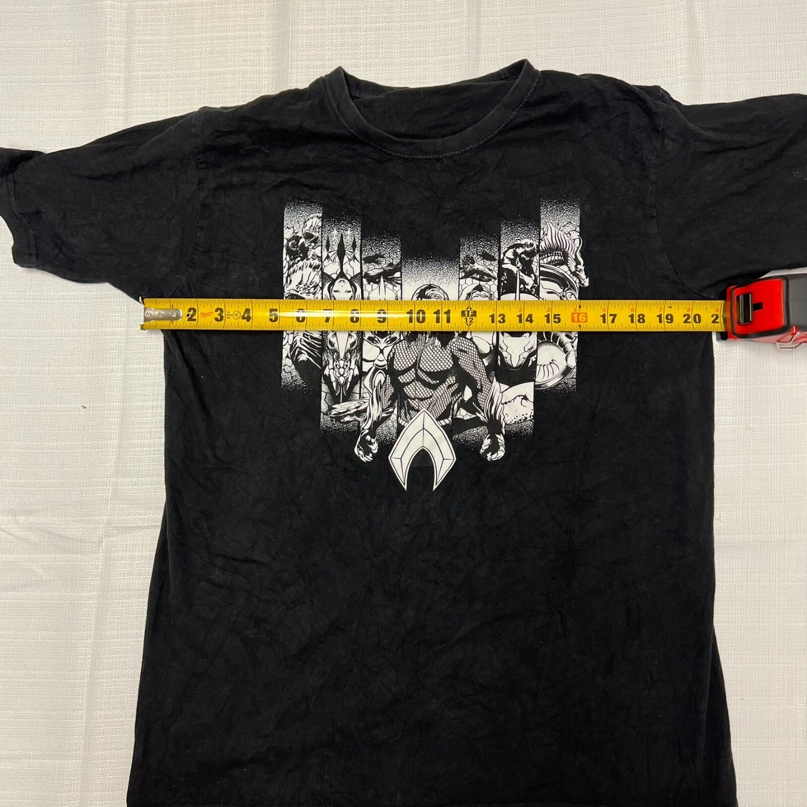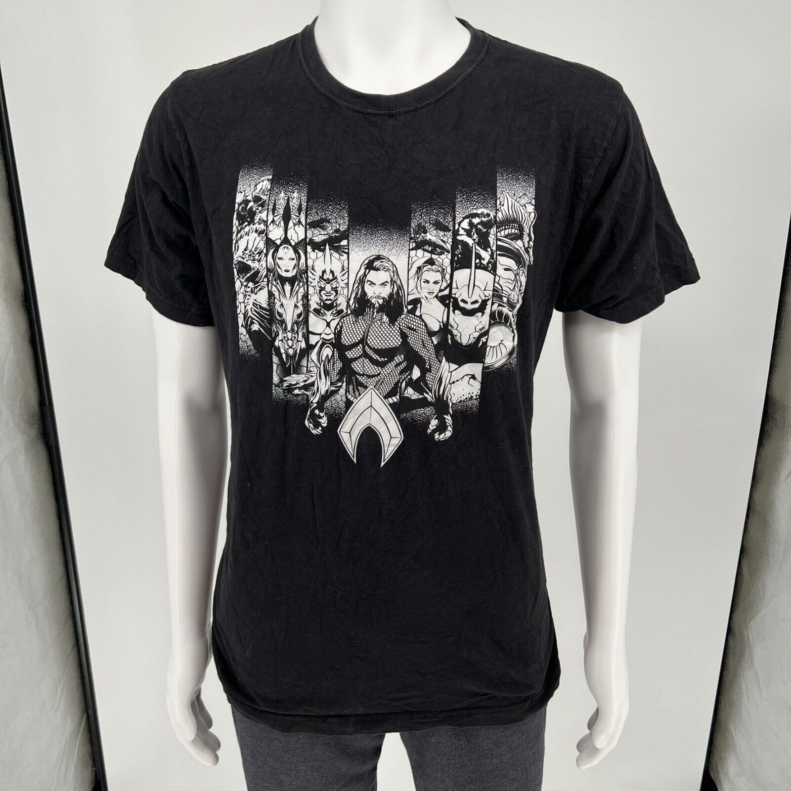 DC Comics Character Bars Aquaman Front & Center Black and White T-Shirt (Large)