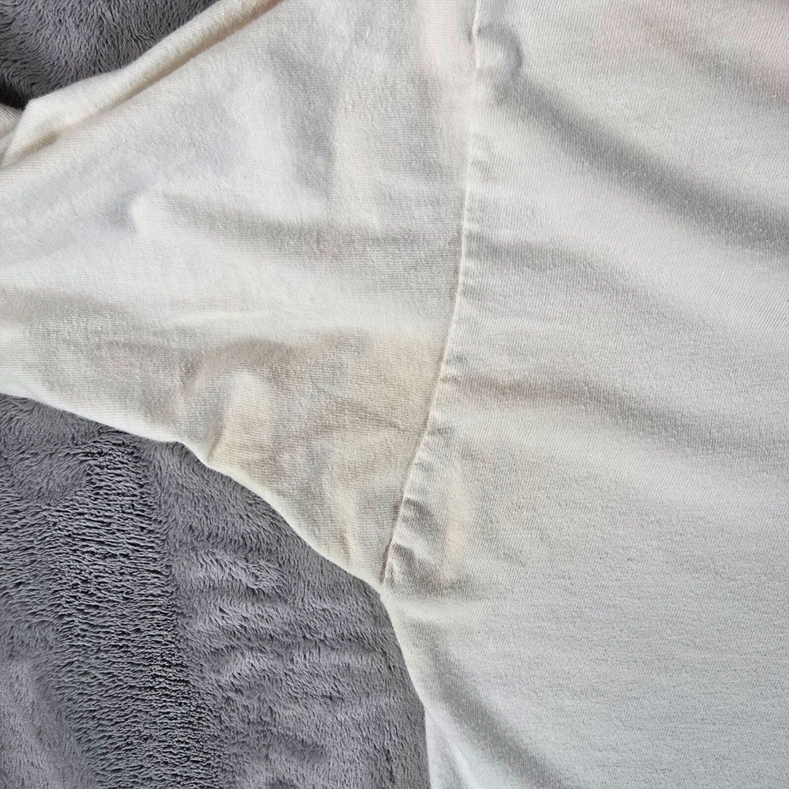 Faint staining across the entirety of the bottom half of the back of the shirt.