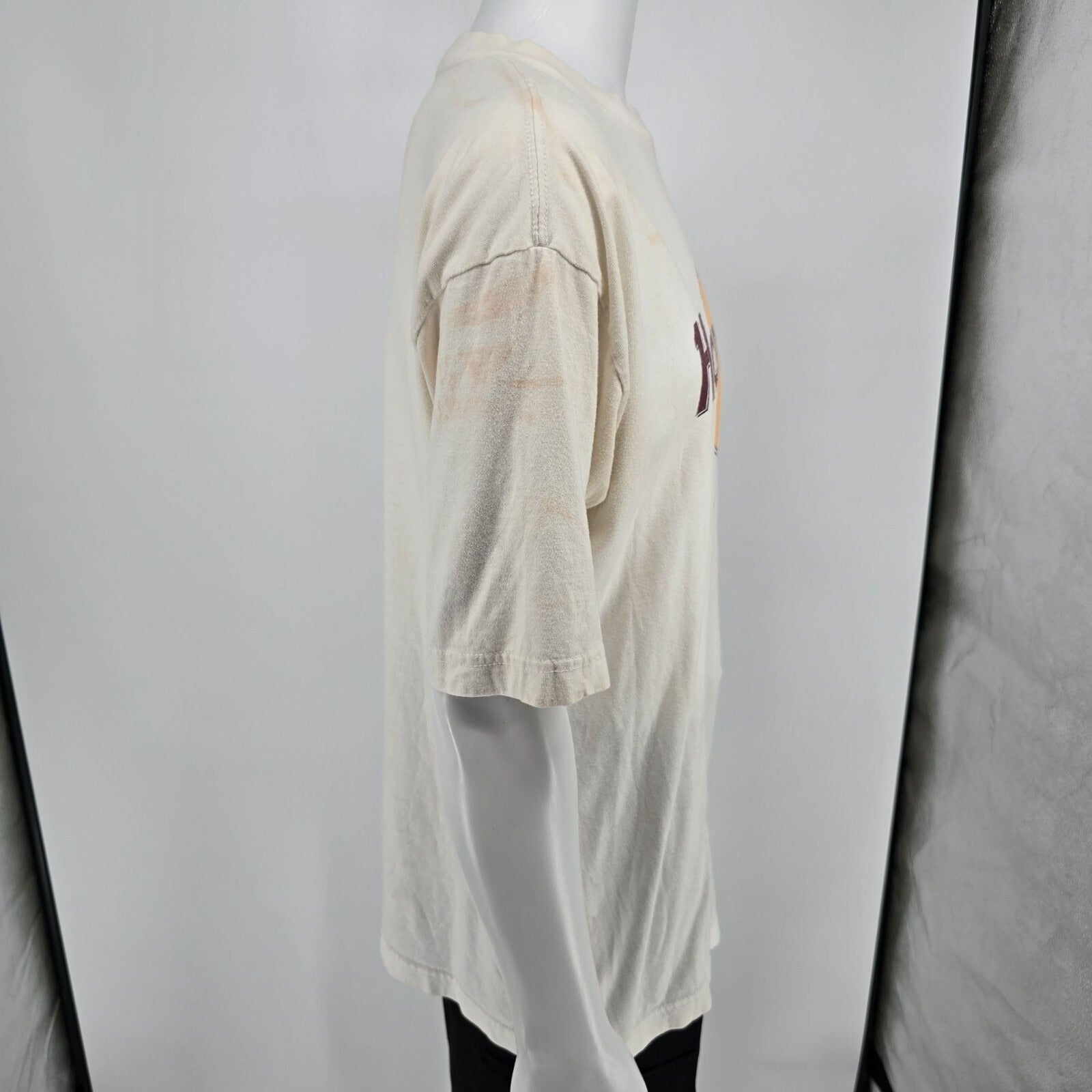Dirty White Vintage 1990s Hard Rock Cafe Madrid Logo Souvenir T-Shirt (XL)