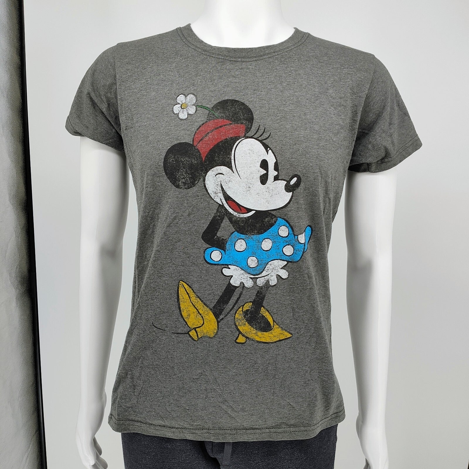 Disney Minnie Mouse with Flower Hat and Blue Dress Womens Graphic T-Shirt (L)