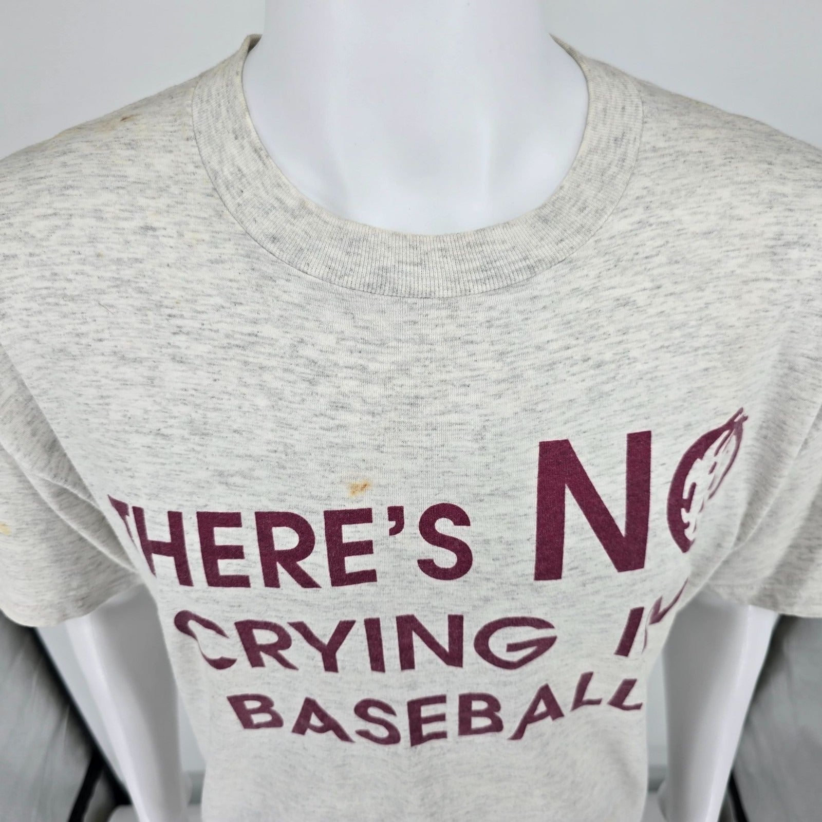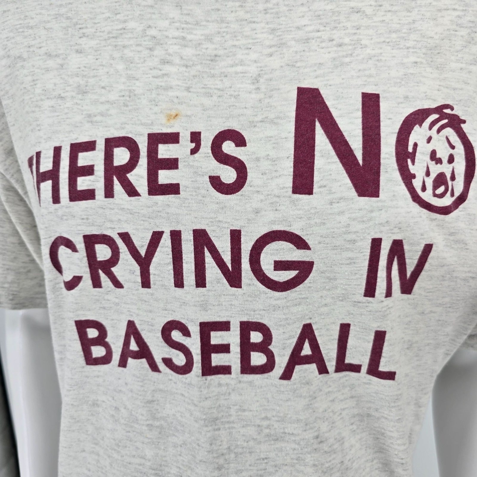 Distressed 1990s Oneita "There's No Crying in Baseball" Gray T-Shirt (XL)