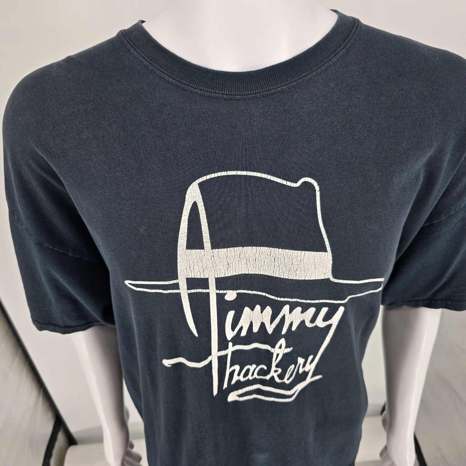 Distressed 2000s Gildan Ultra Cotton Jimmy Thackery Hat Graphic T-Shirt (XXL)