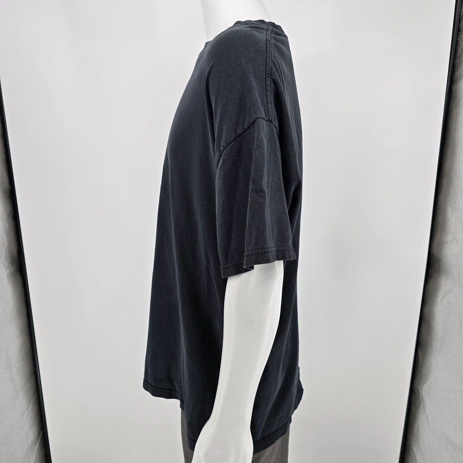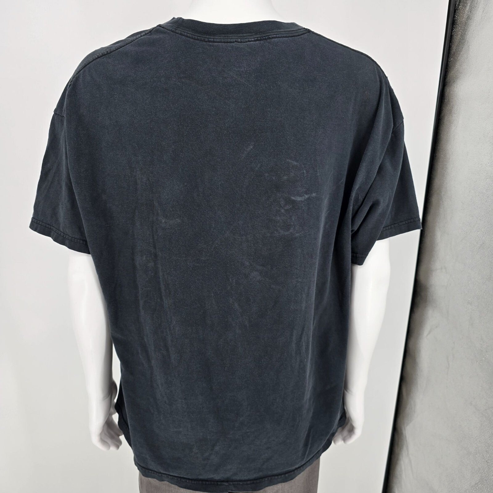 Fair/distressed used condition. Size tag removed. Heavy wear at graphic. Staining/discoloration on front beneath logo. Heavy fading on back of shirt. Moderate to heavy fabric wear and fading throughout. See photos.