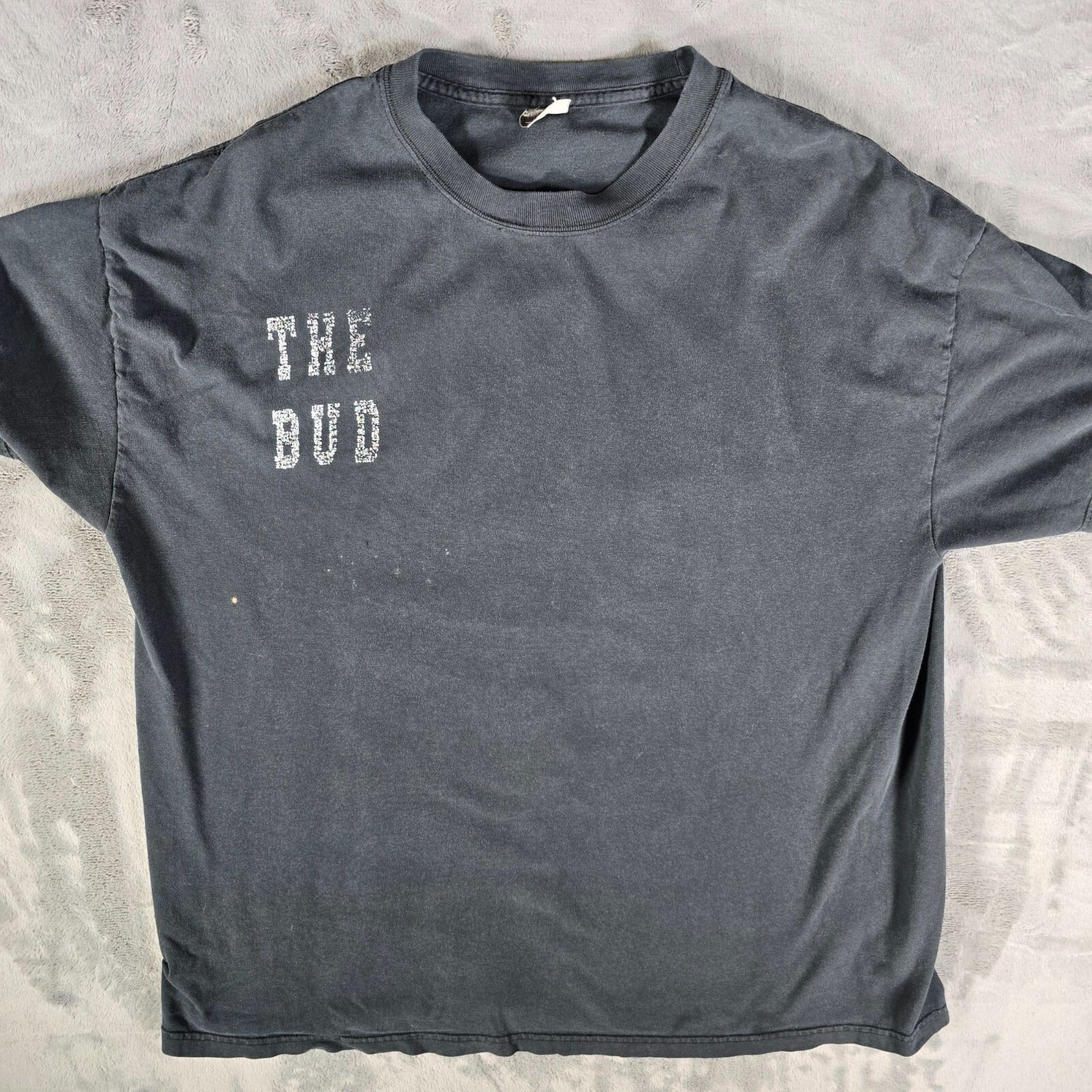 Distressed 2000s Hanes Beefy-T Budweiser "The Bud" Faded Black T-Shirt (XL)