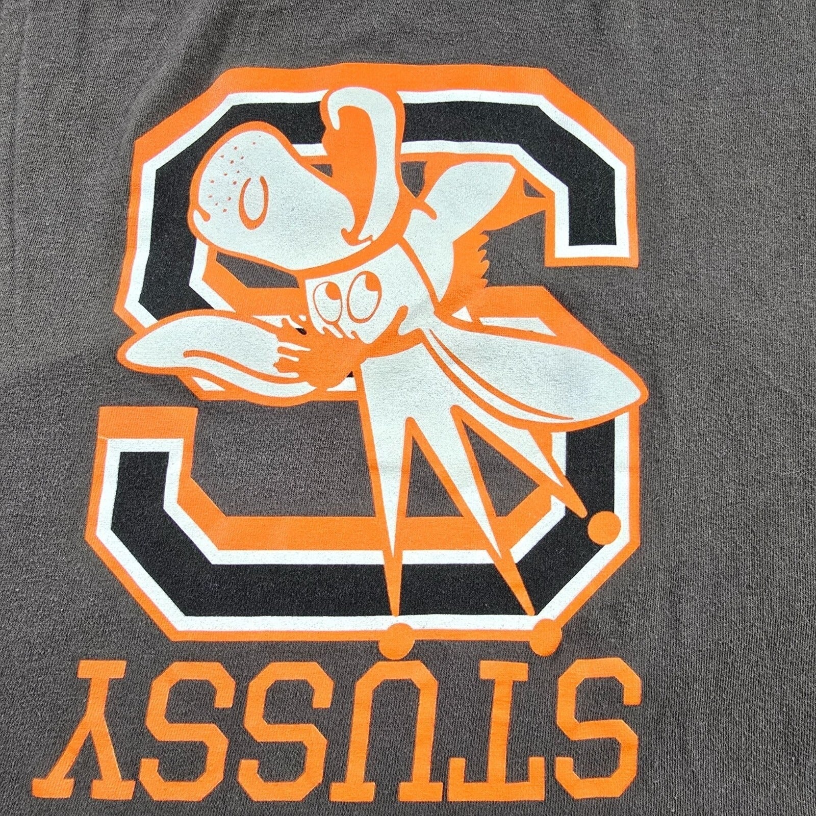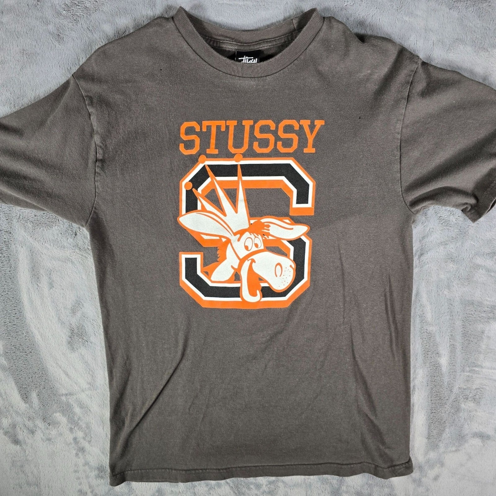 Notable Features: Features a bold front graphic with "Stüssy" lettering, varsity-style "S" logo, and a cartoon donkey wearing a crown.