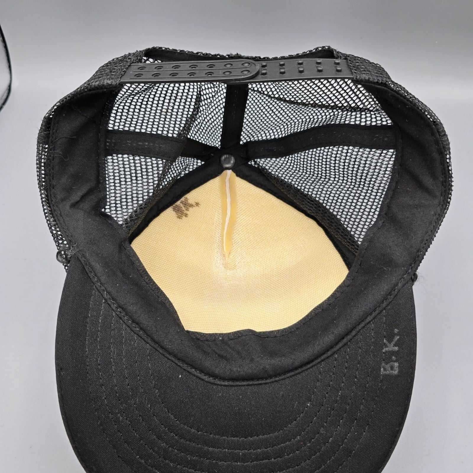 Condition Notes: Fair/distressed used condition. Significant creasing and discoloration on foam front panel. Initials written in with ink on underside of bill and on inside of foam panel. Moderate wear throughout. See photos.