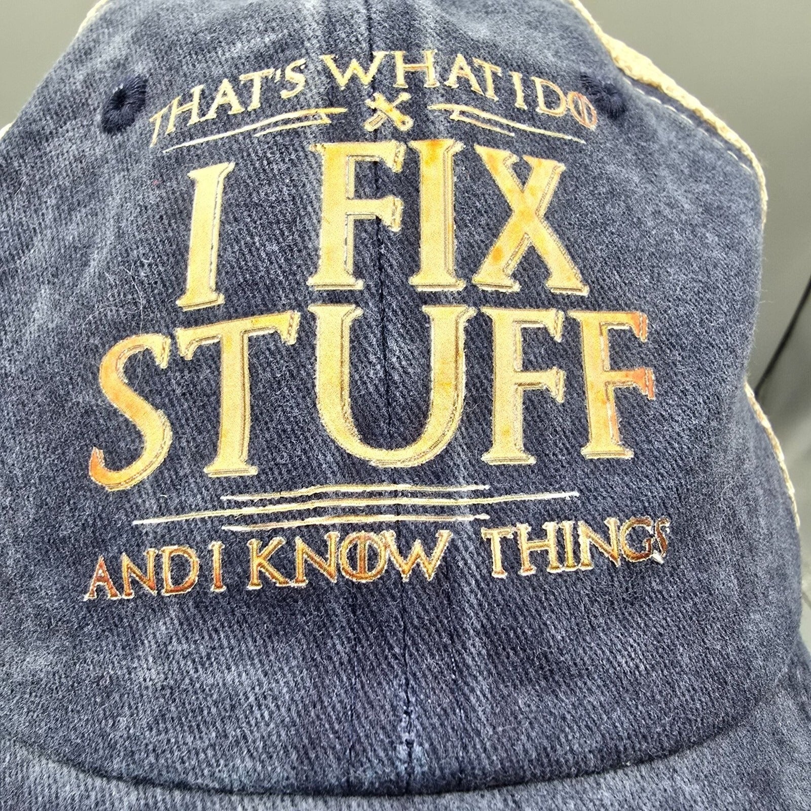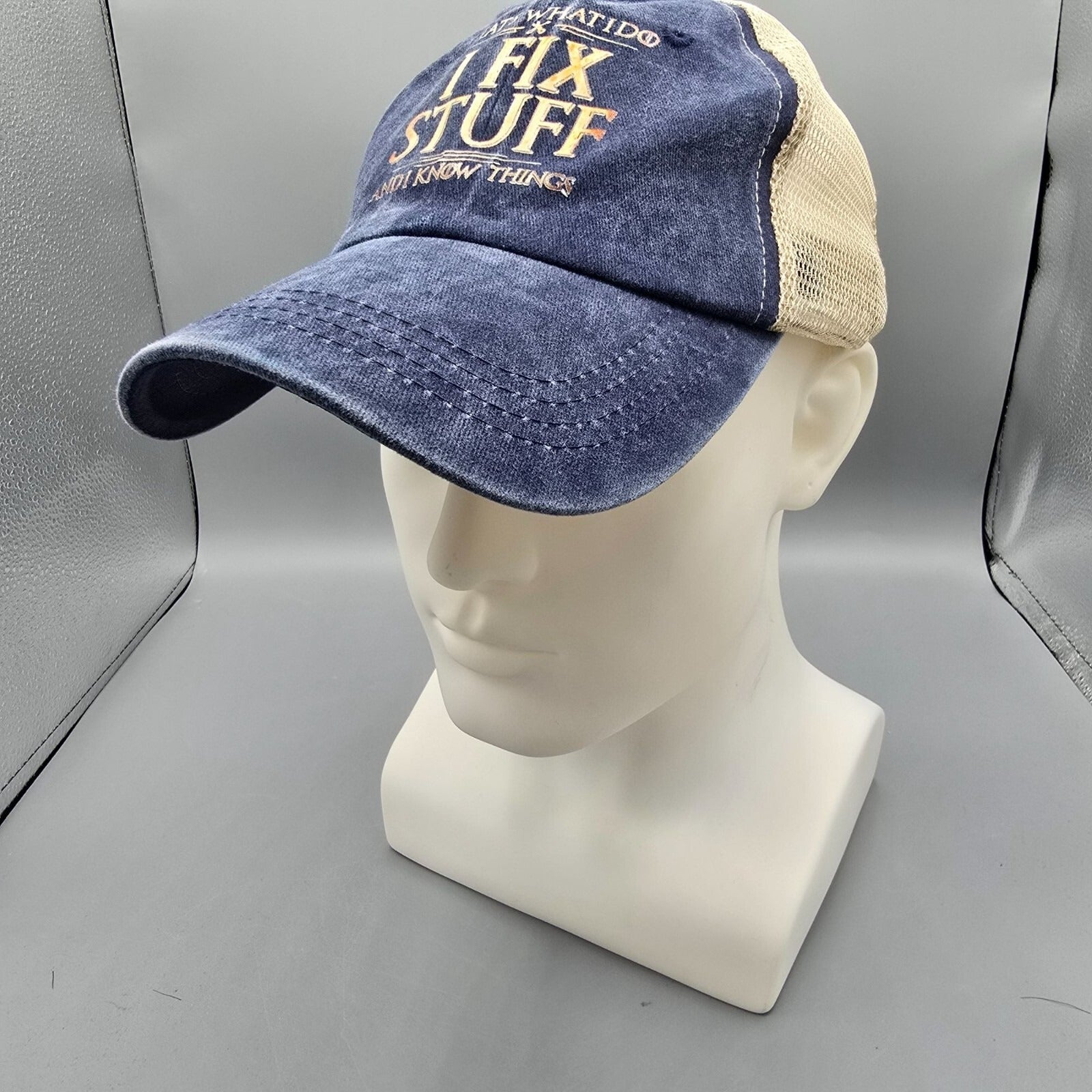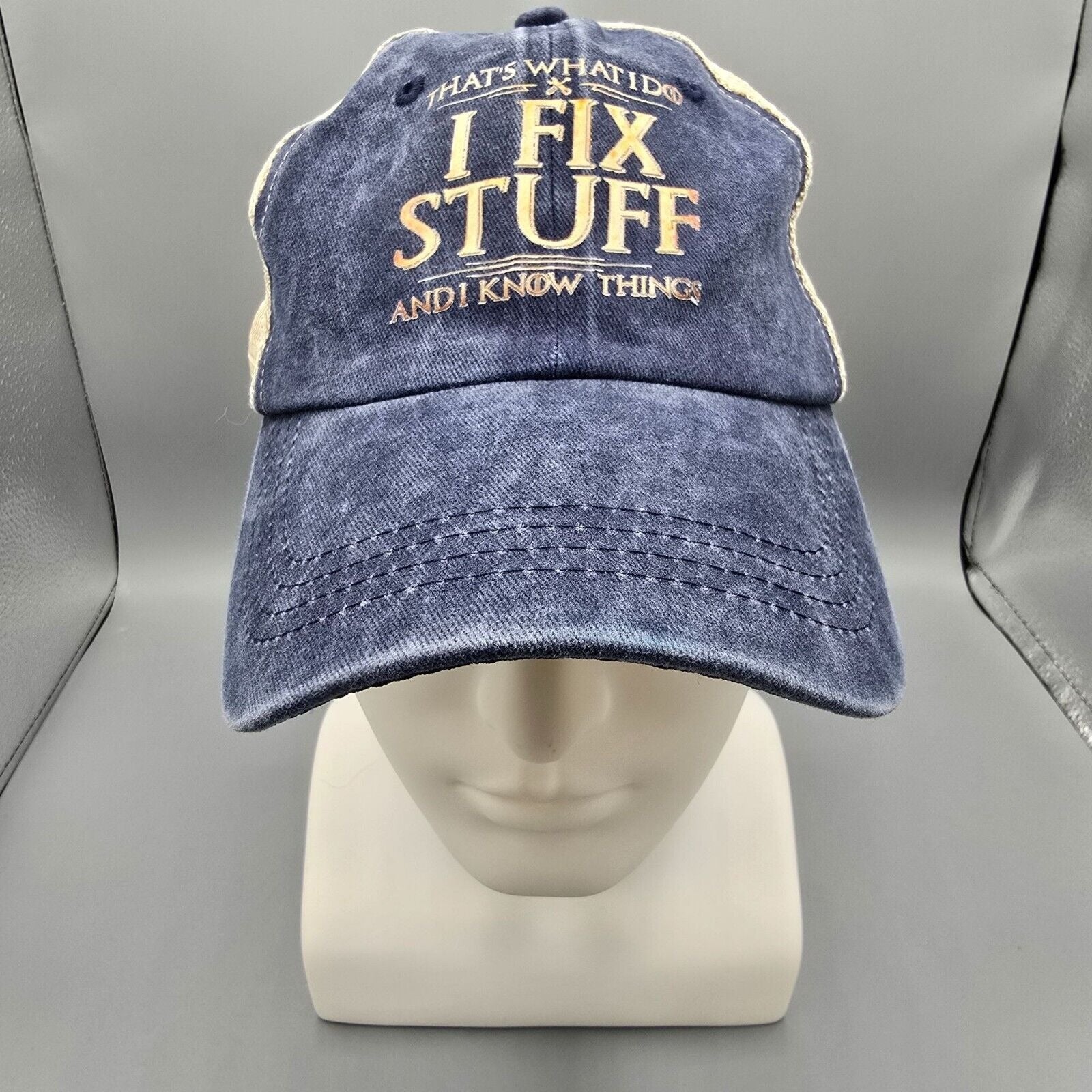 Distressed "That What I Do: I Fix Stuff and I Know Things" Blue Mesh-Back Dad Ha