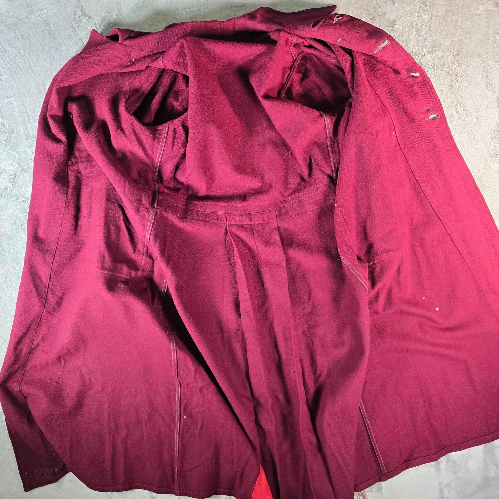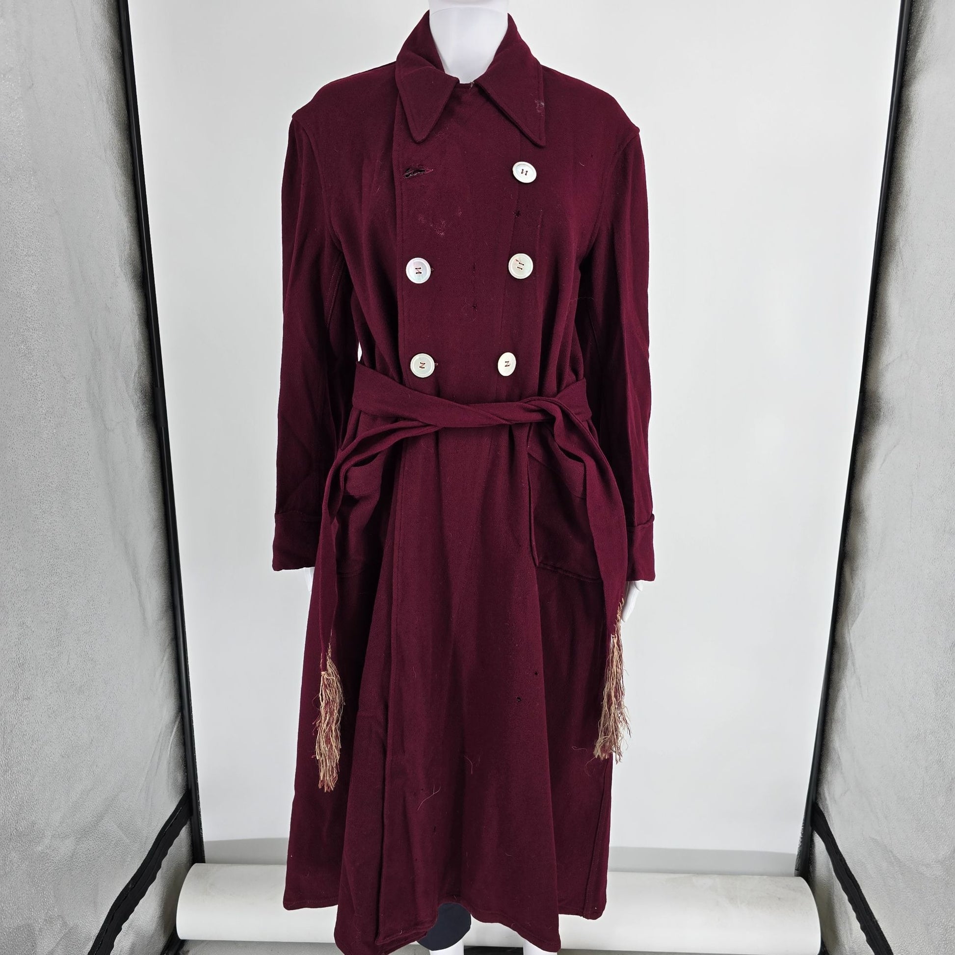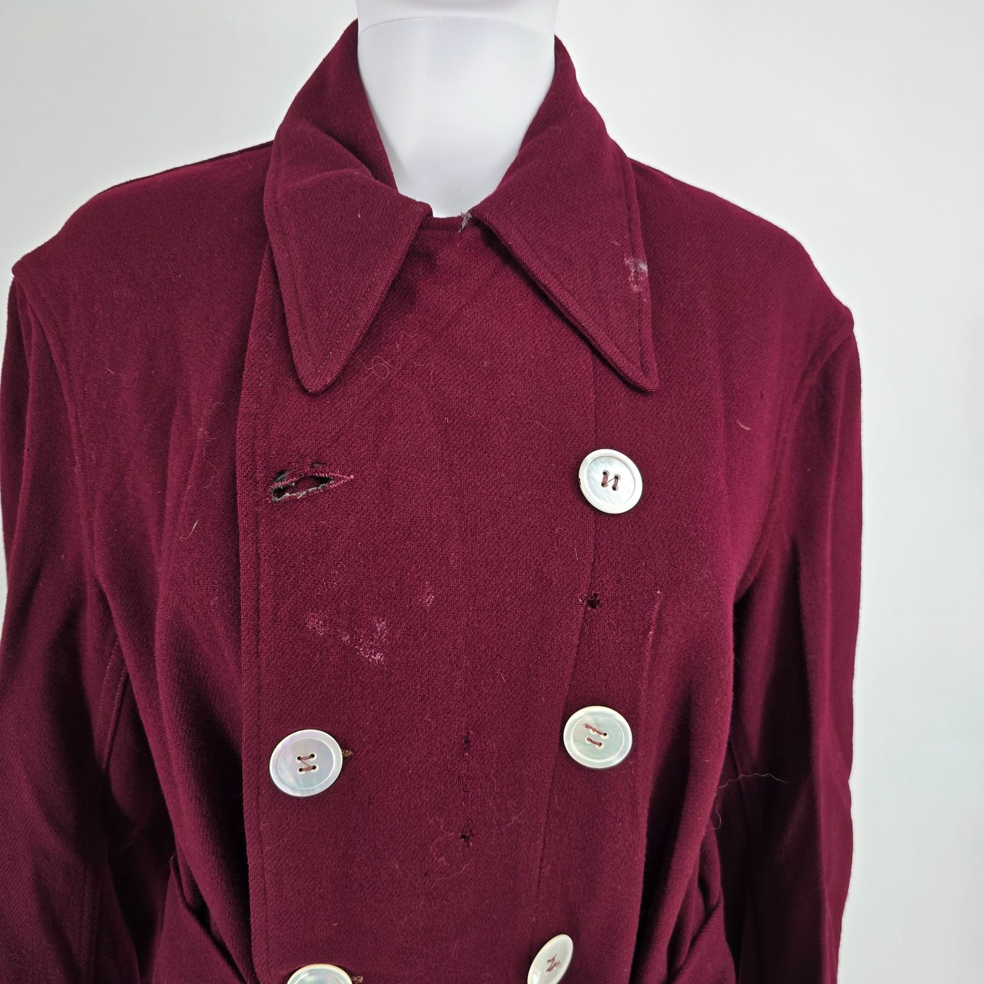 Distressed Vintage 1940s Unbranded Burgundy Wool Double-Breasted Coat (L)