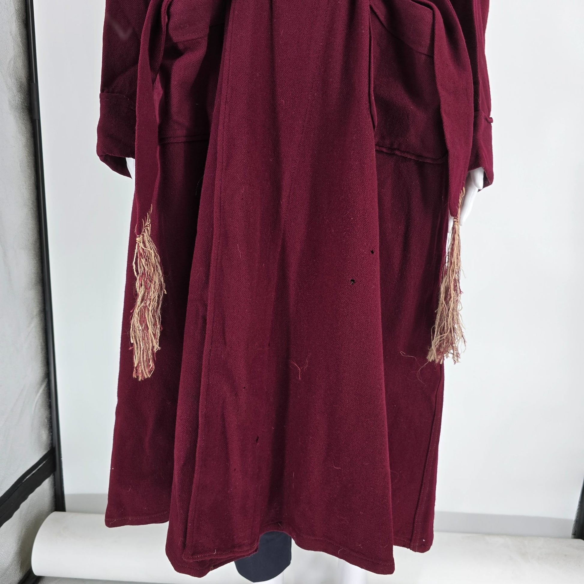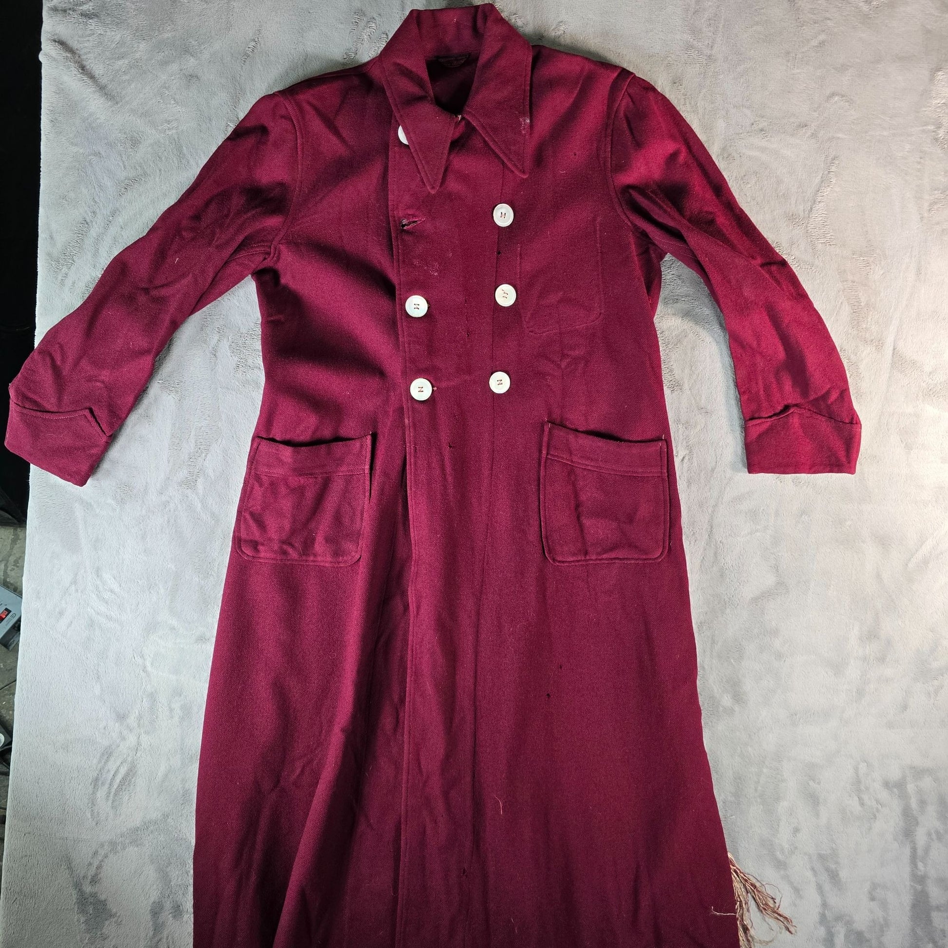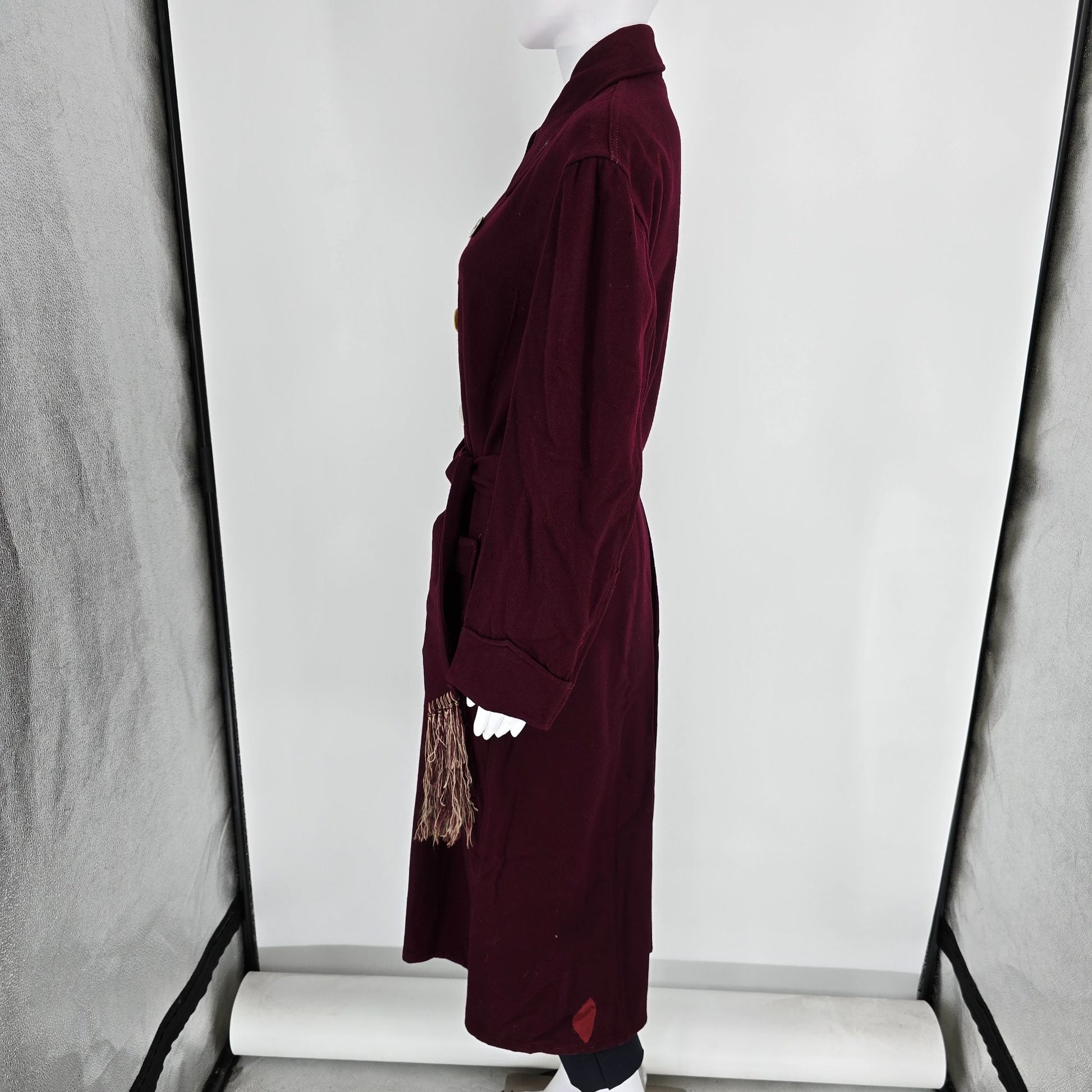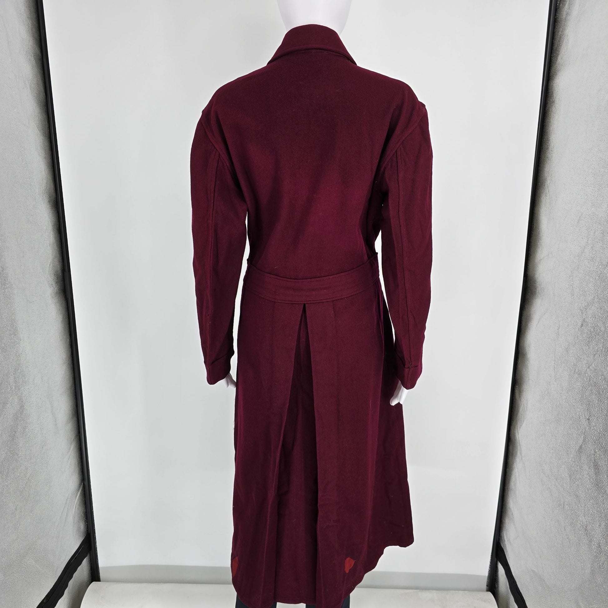 Distressed Vintage 1940s Unbranded Burgundy Wool Double-Breasted Coat (L)