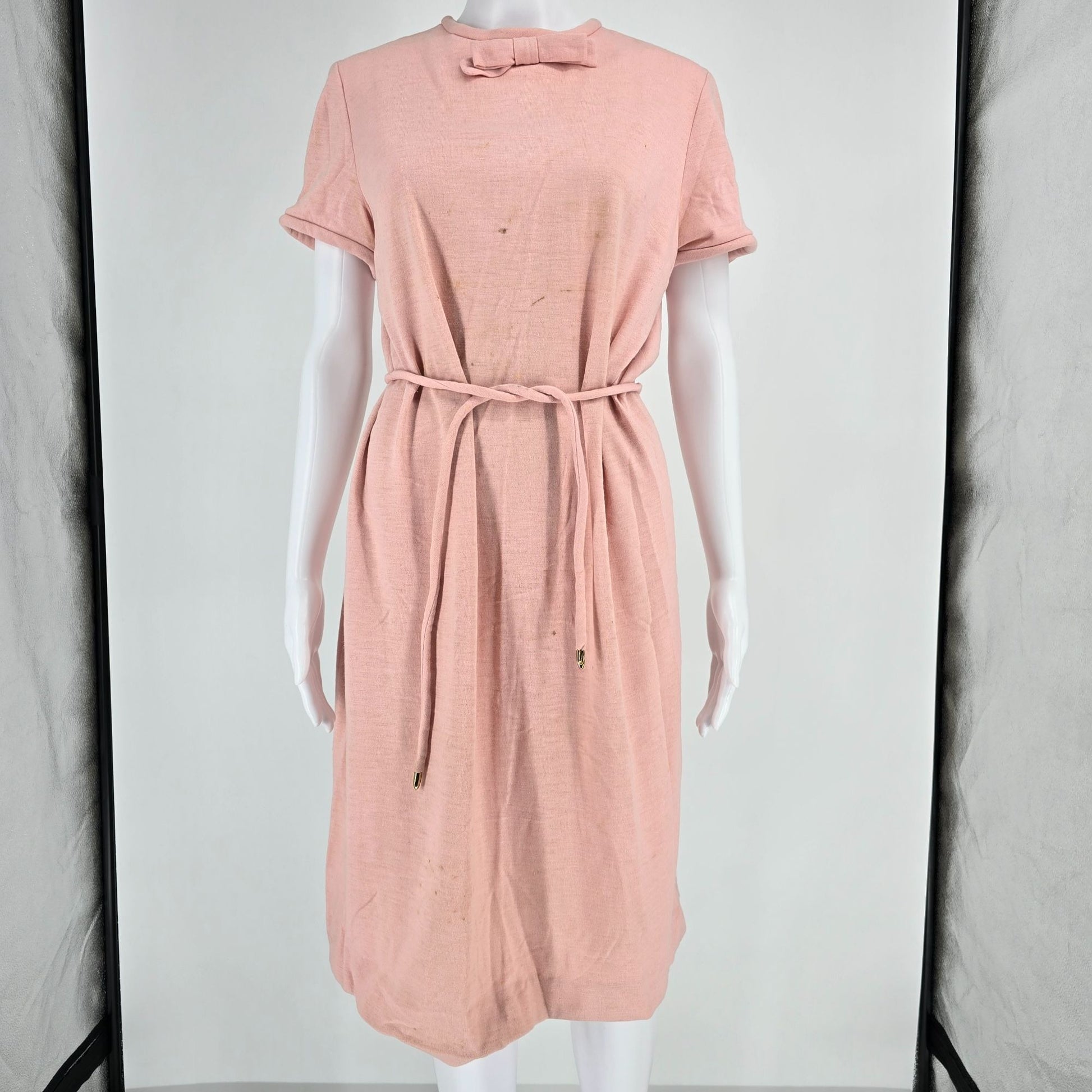 Distressed Vintage 1960s Lady in Waiting Pink Bow Neck Maternity Dress (L)