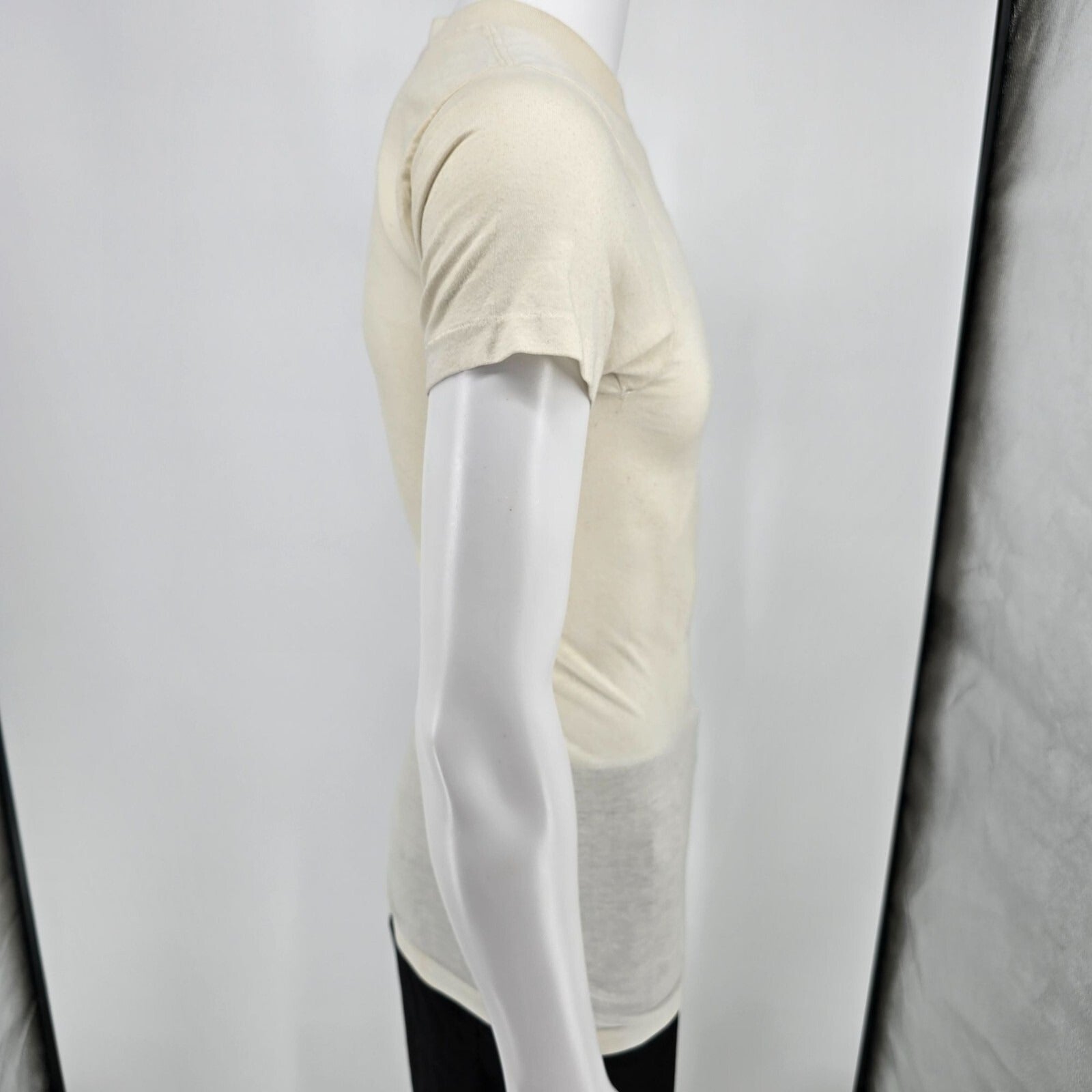 Distressed Vintage 1970s Sears Men's Store Blank Off-White Sheer T-Shirt (XXS)