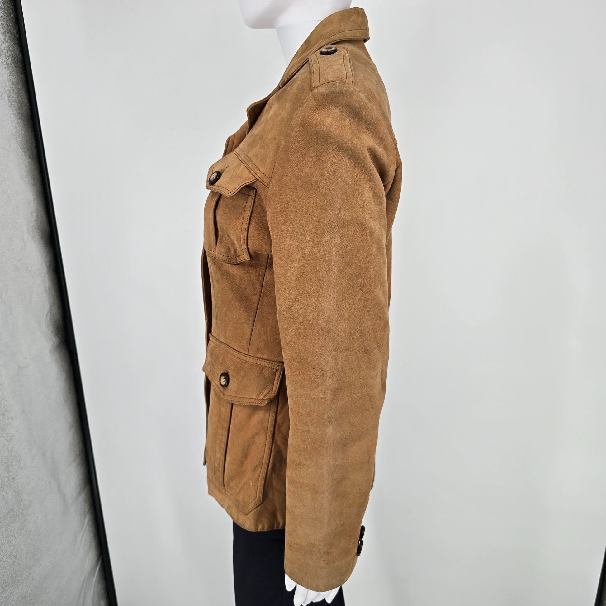 Distressed Vintage 1980s Georgetown Leather Design Leather Safari Jacket (S)