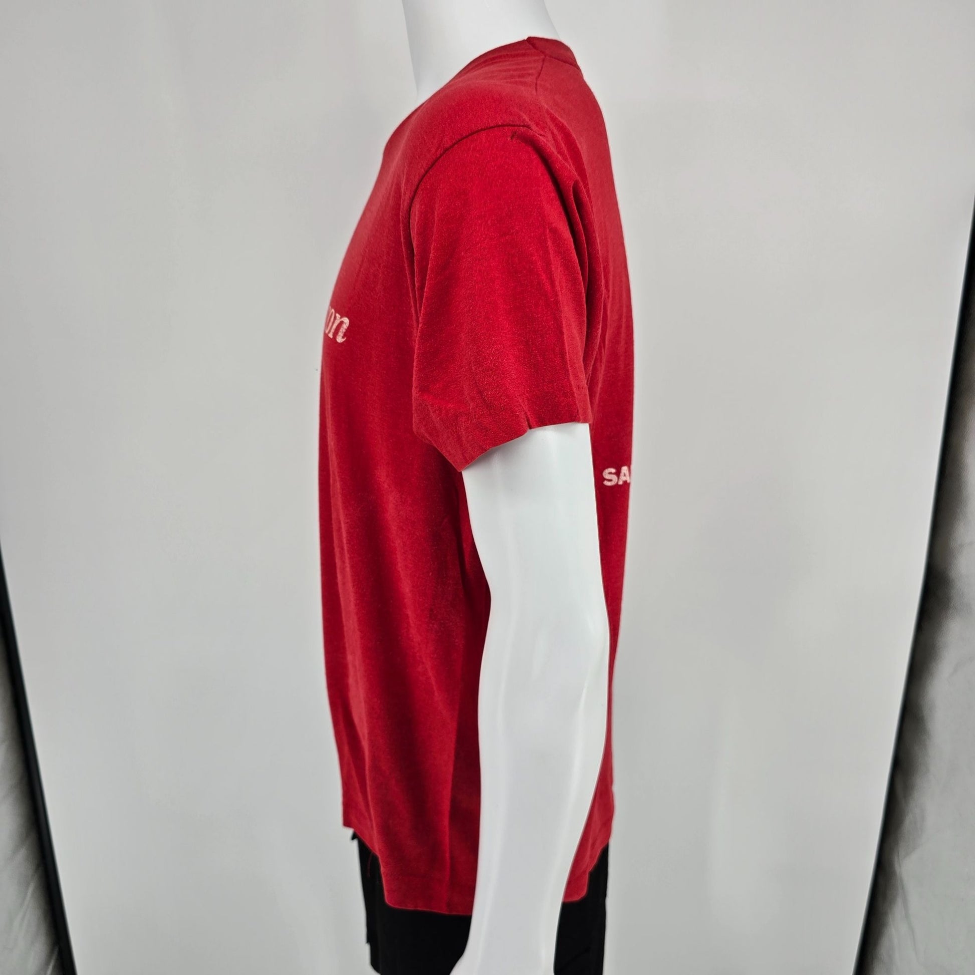 Notable Features: “tc transcon” front logo; back hit reads “Stock Certificate – 100 Shares / Safety Pays Dividends”; single-stitch sleeves and hem;