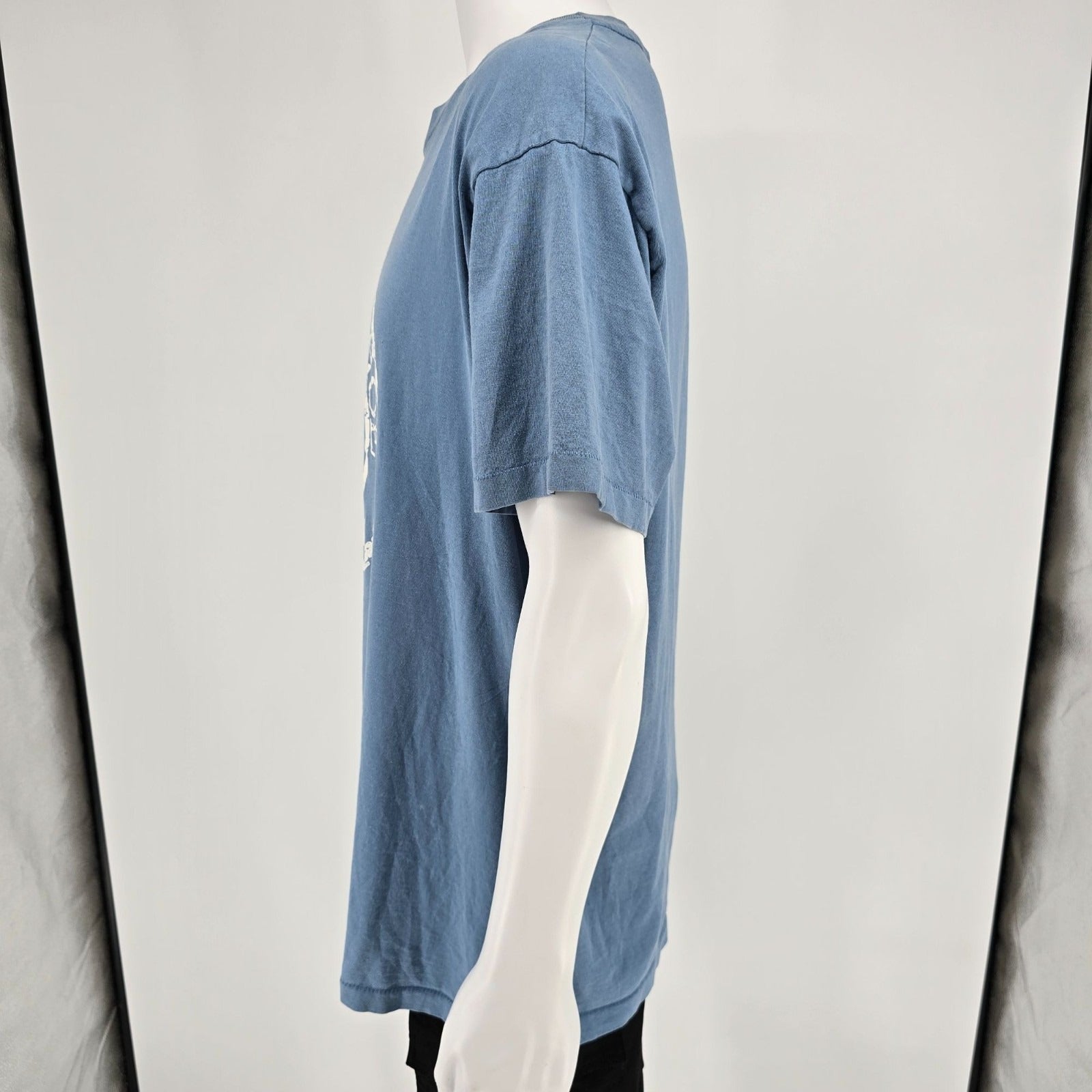 Distressed Vintage 1990s Anvil Blue Lake Tahoe Sailboat Graphic T-Shirt (XL)
