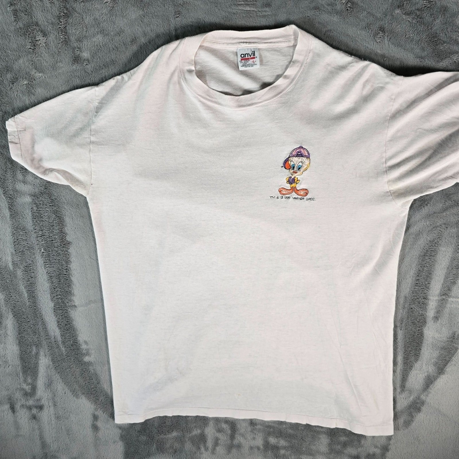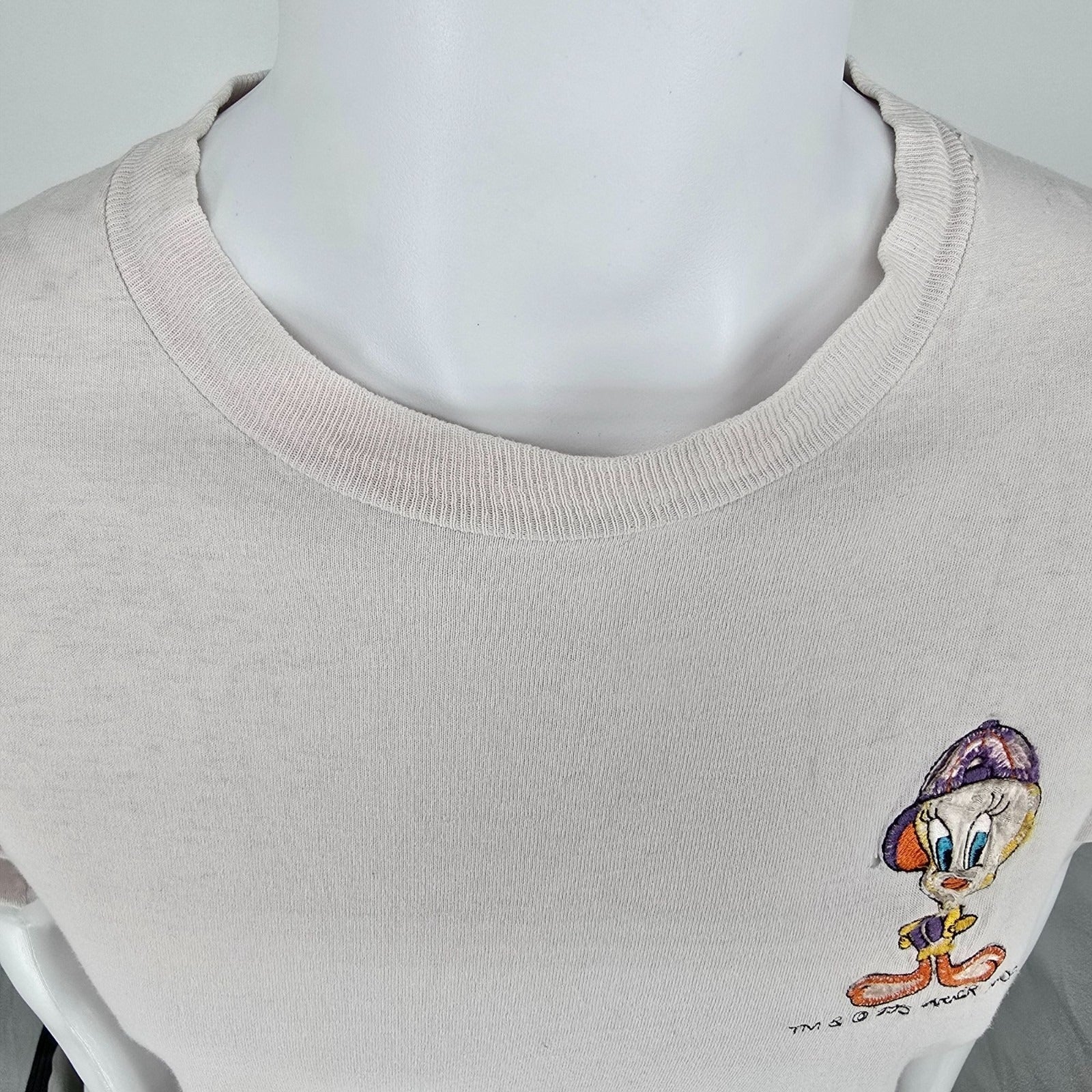 Distressed Vintage 1990s Anvil Embroidered Looney Tunes Tweety Bird T-Shirt (L)