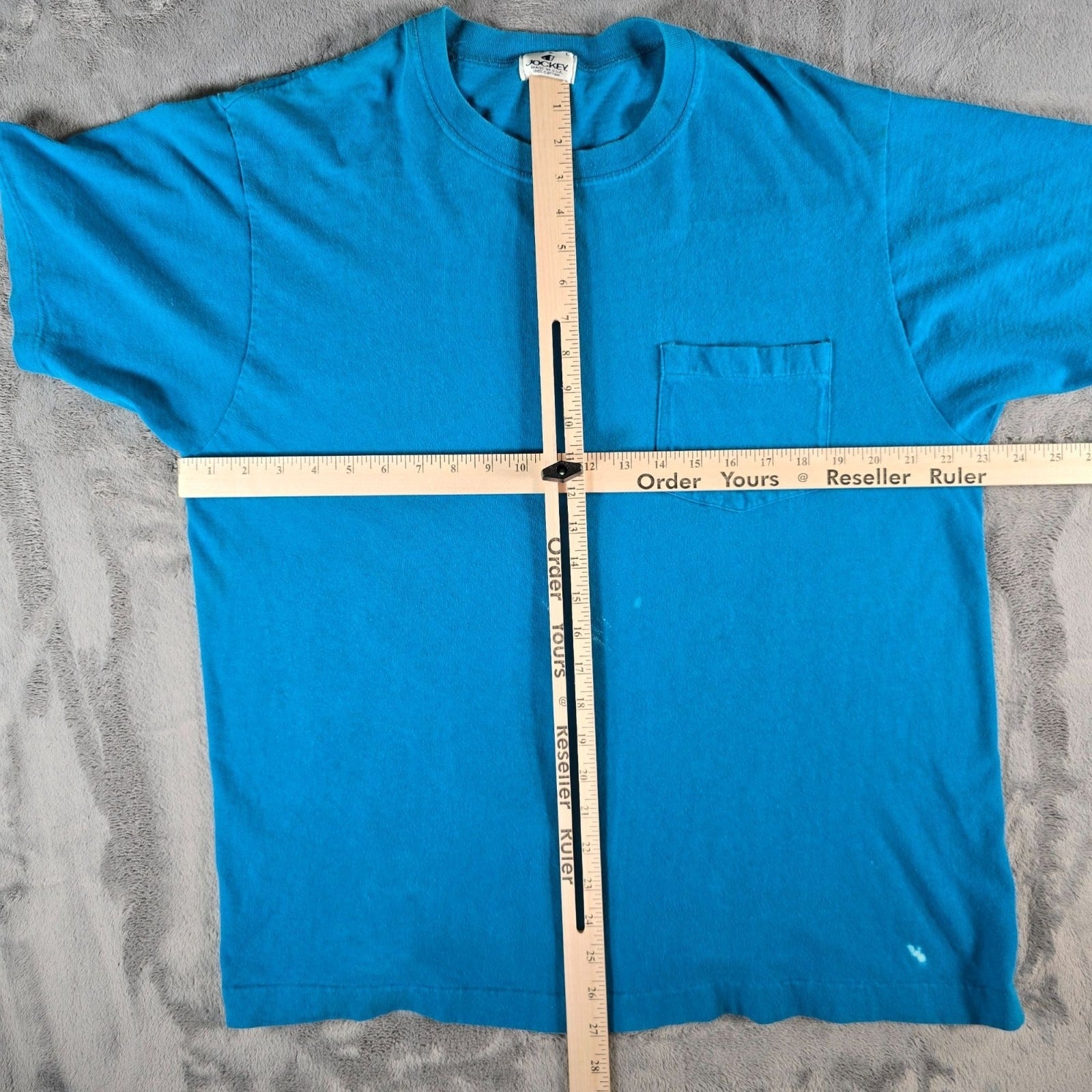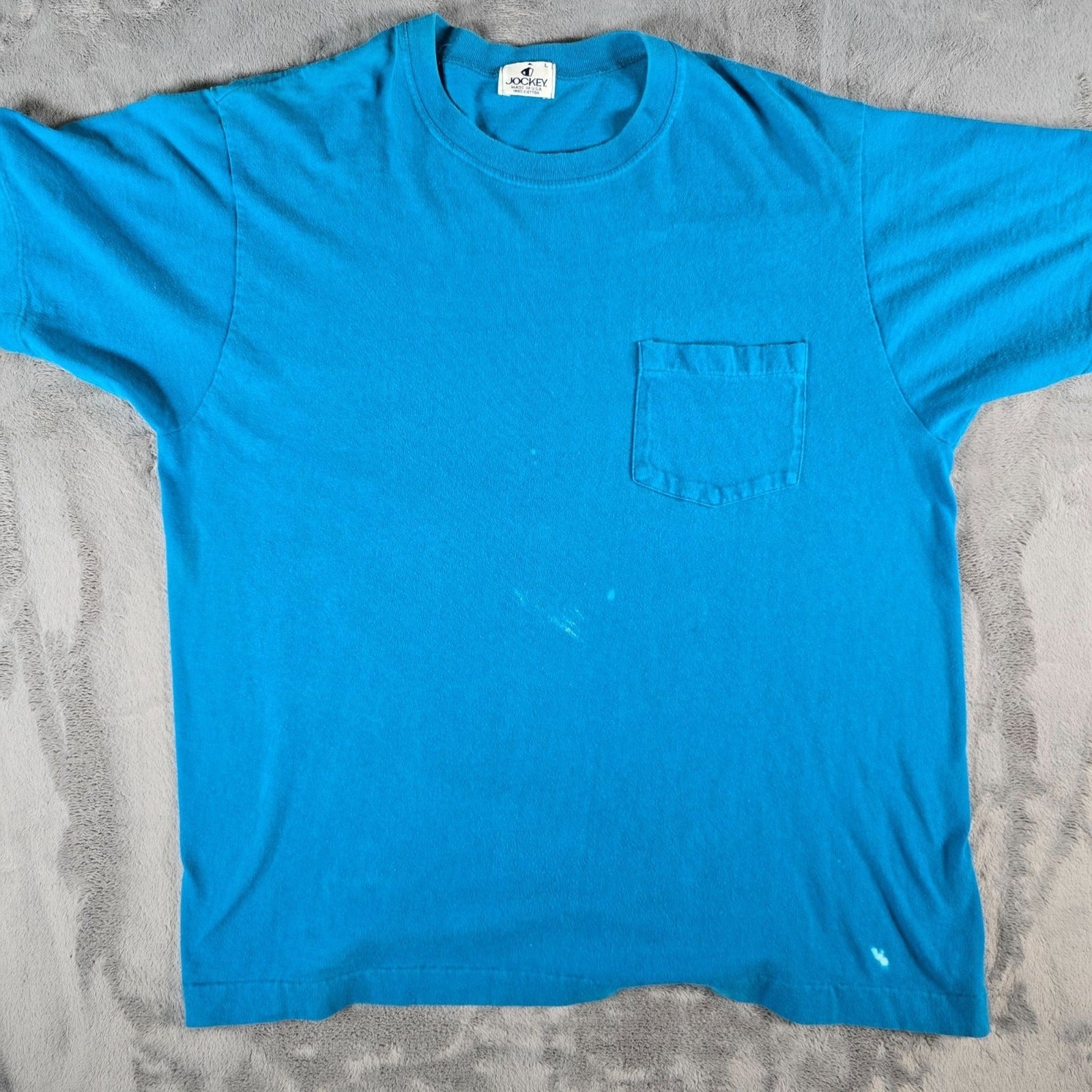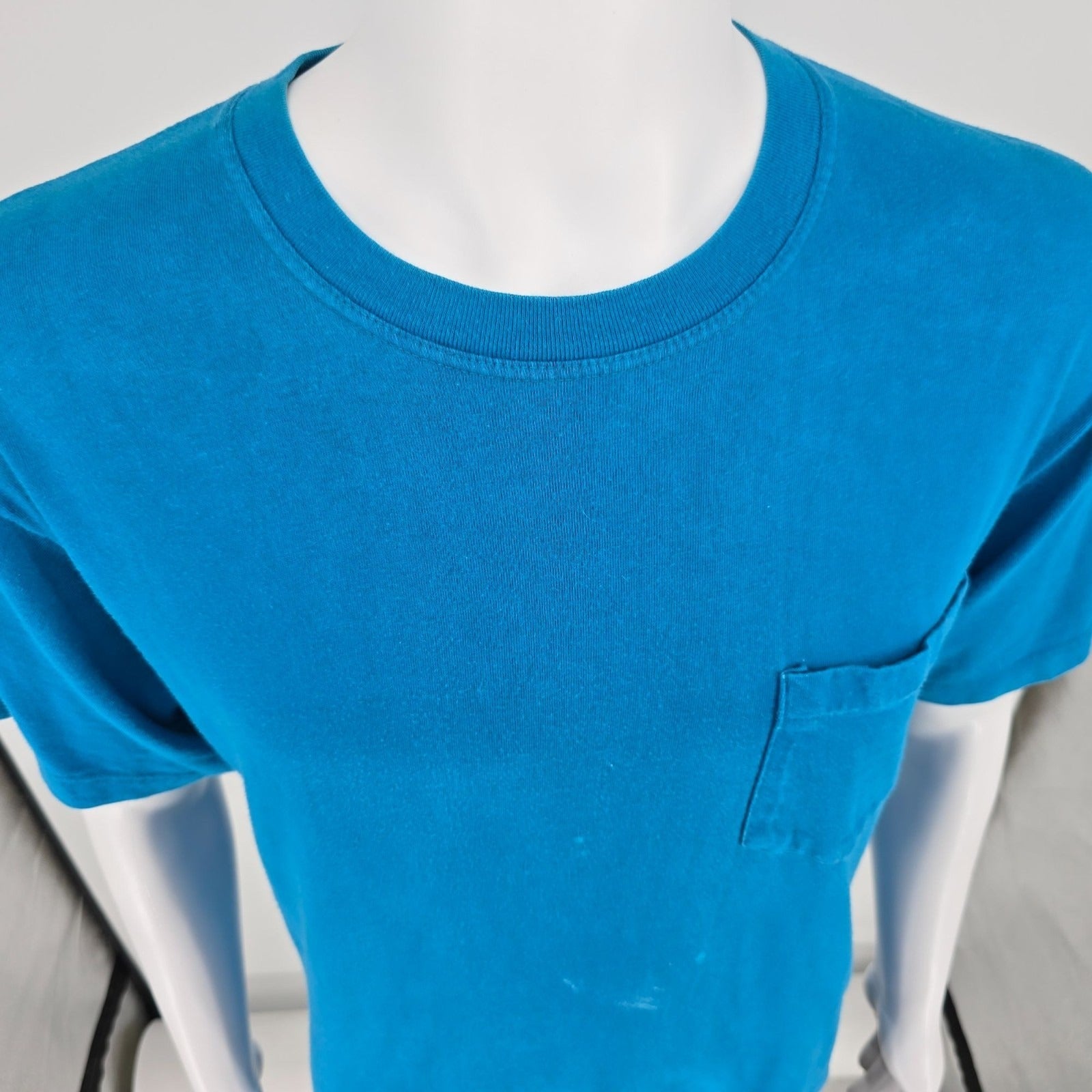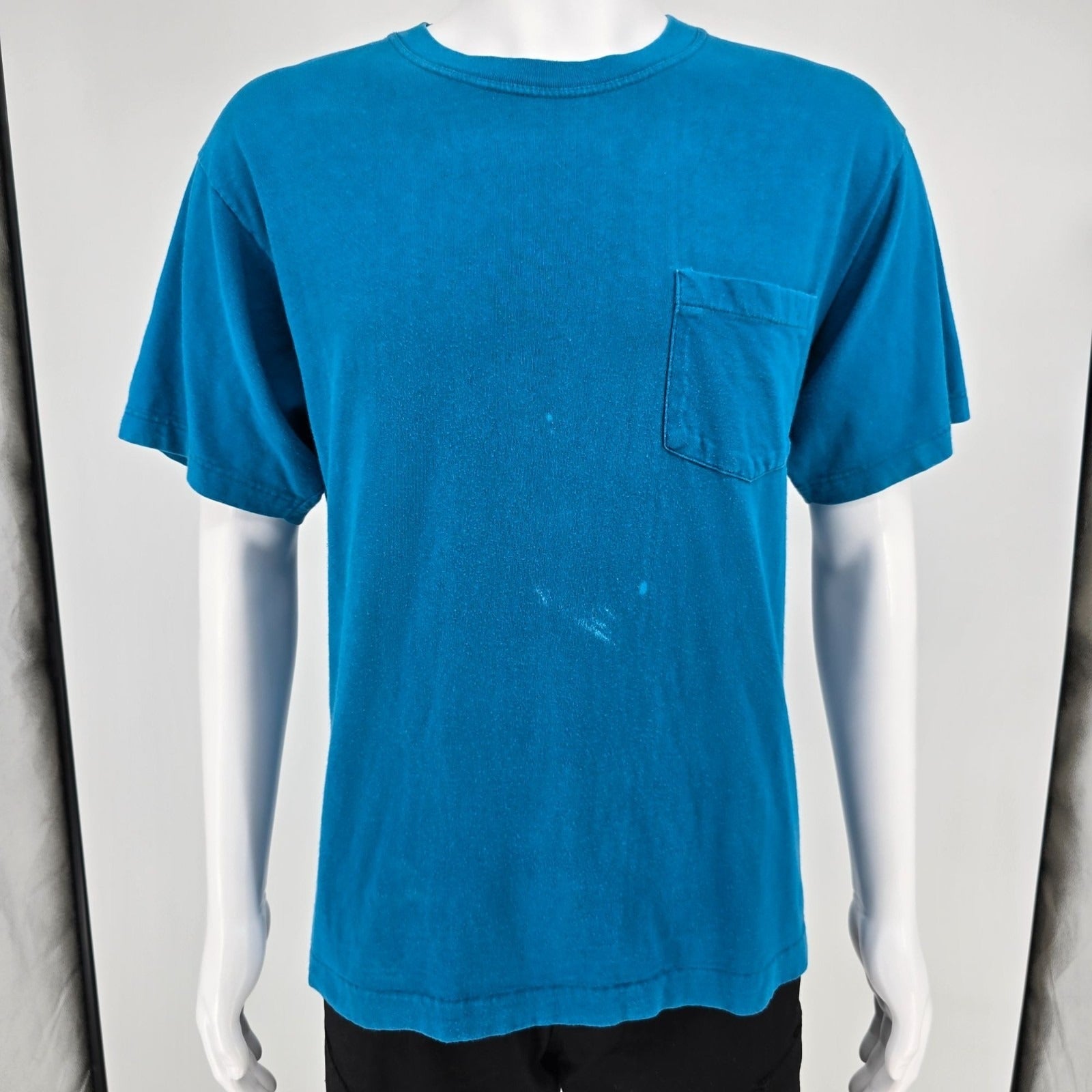Distressed Vintage 1990s Jockey Made in USA Blank Teal Pocket T-Shirt (L)