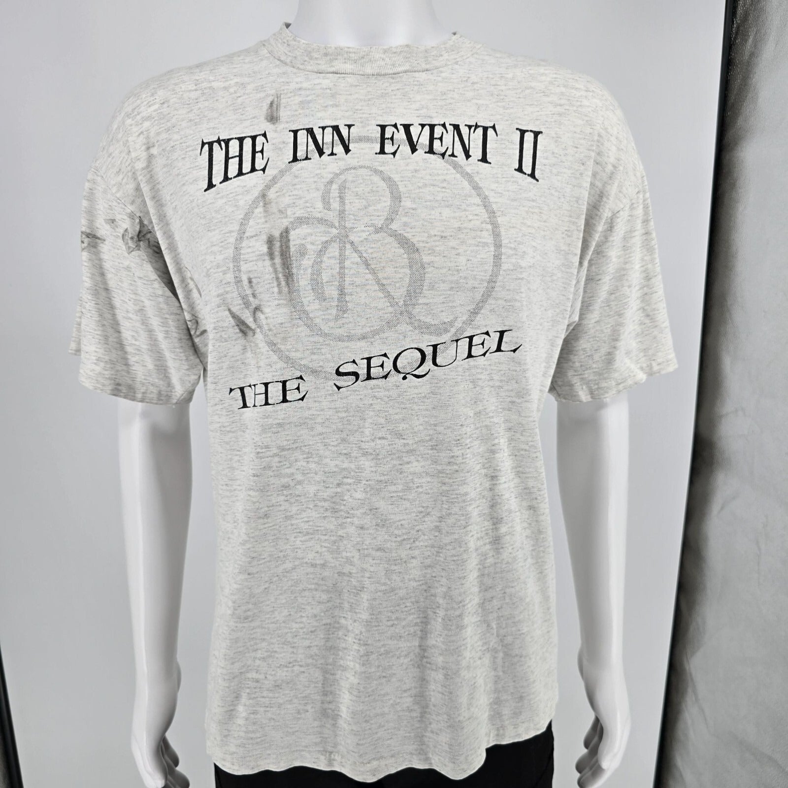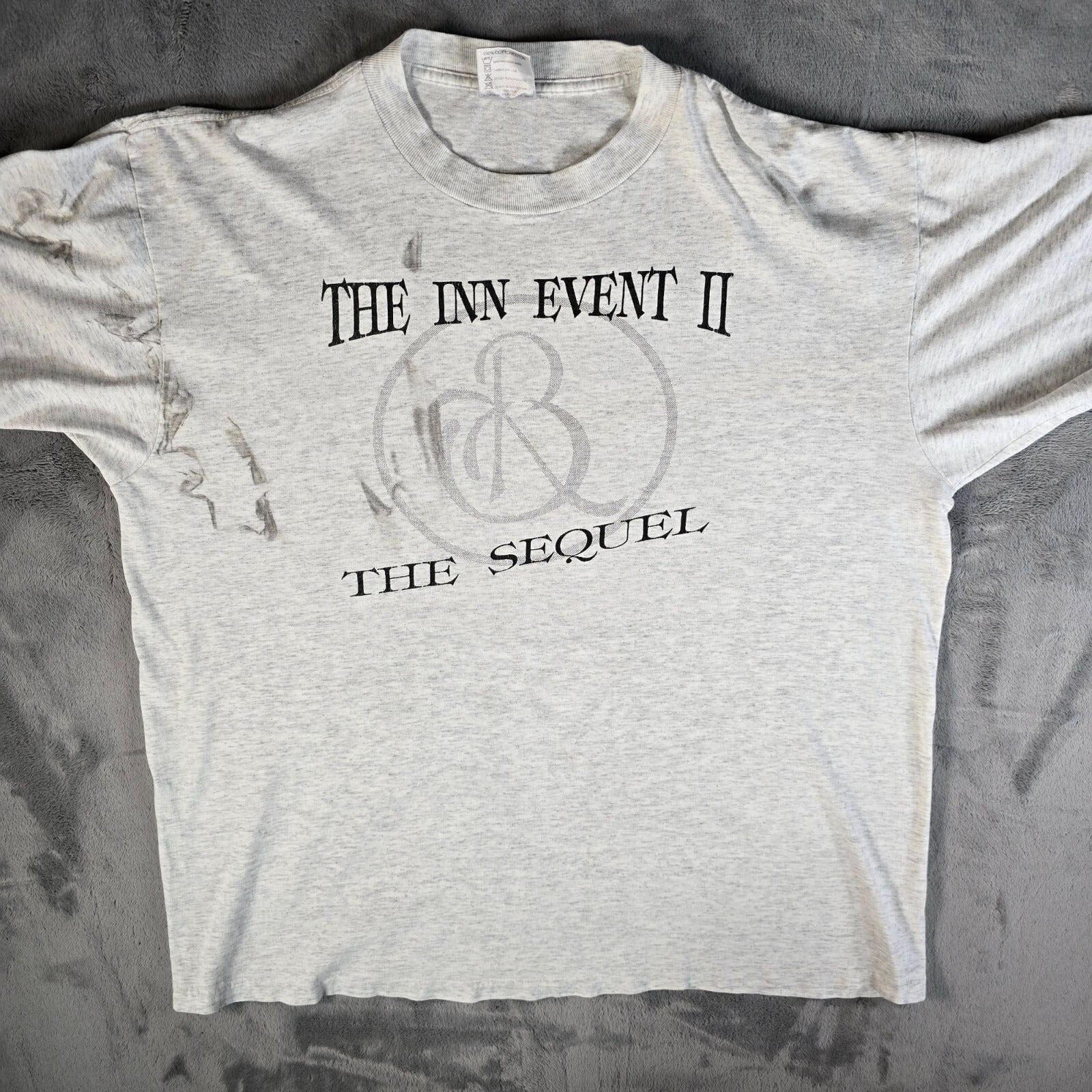 Distressed Vintage 1990s Oneita "The Inn Event II: The Sequel" Gray T-Shirt (XL)