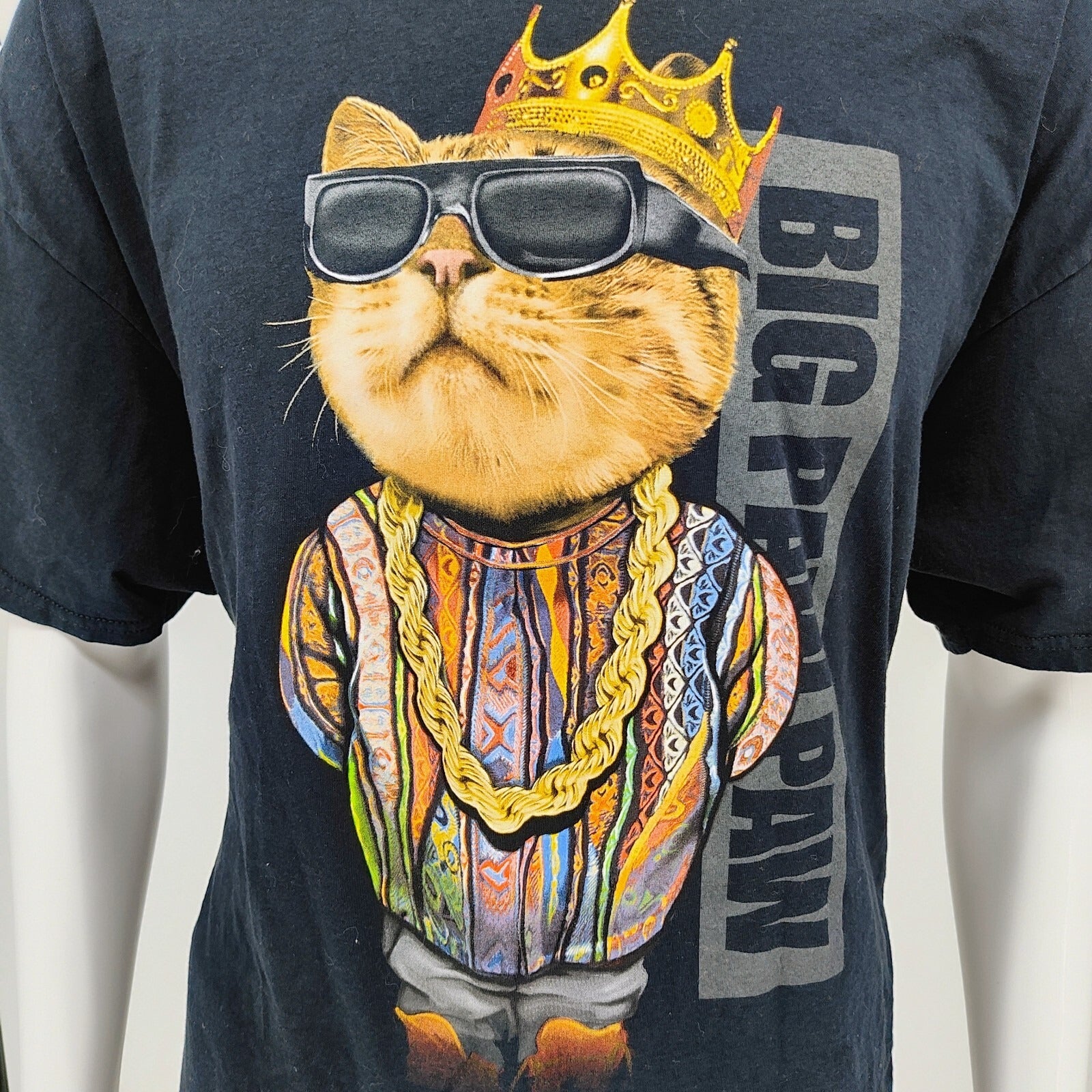 DOM "Big Paw Paw" Notorious BIG Biggies Smalls Rap Cat Graphic T-Shirt (2XL)