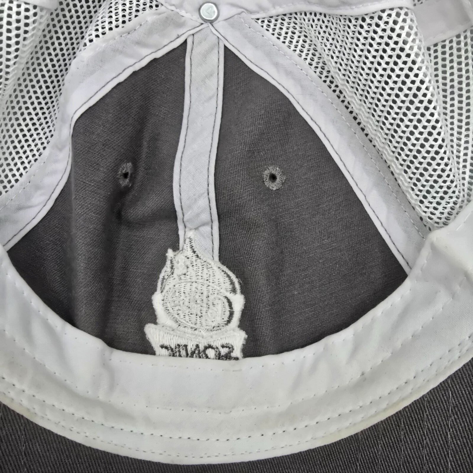 •Condition Notes: Fair/flawed used condition. Residue stain on front panels next to embroidered logo. Moderate visible wear at sweatband, at hook and loop closure, and at closure. Otherwise, light wear throughout. See photos.