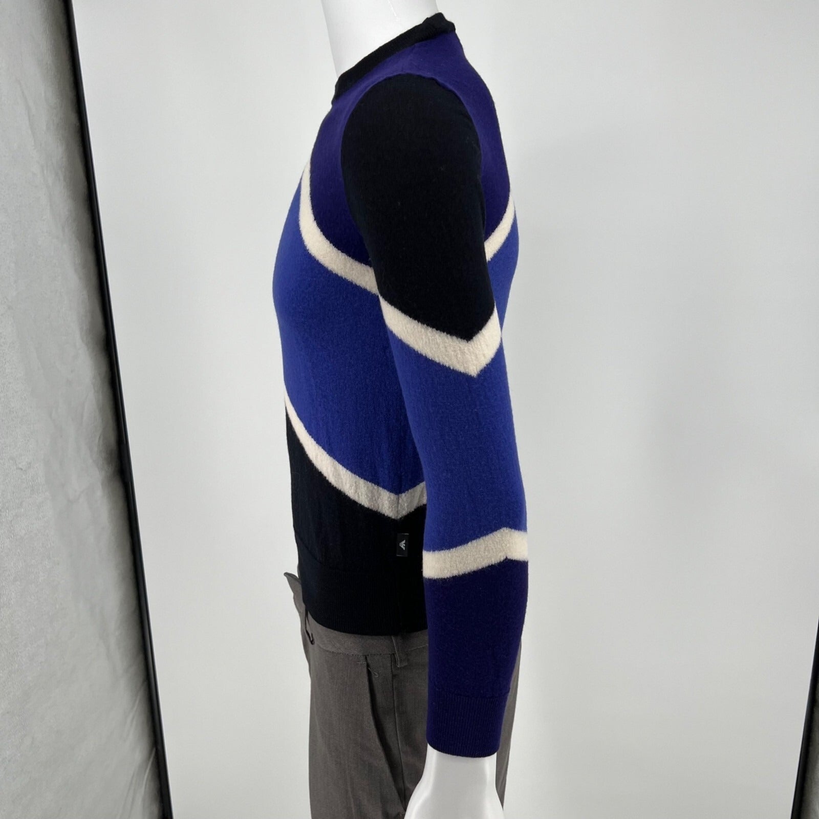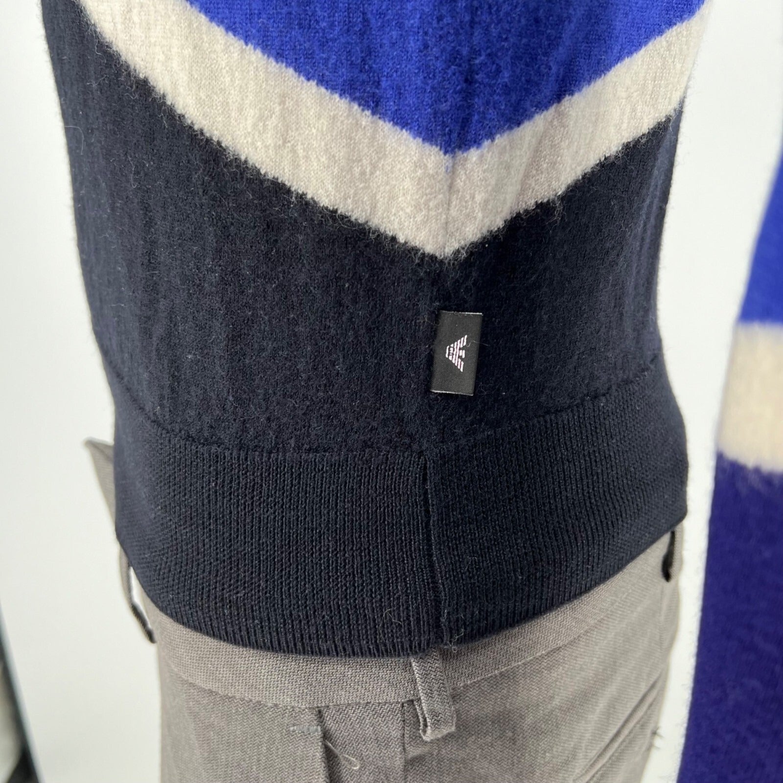 Emporio Armani Blue Color Block Striped Crew Neck Pullover Sweater (Size Small)
