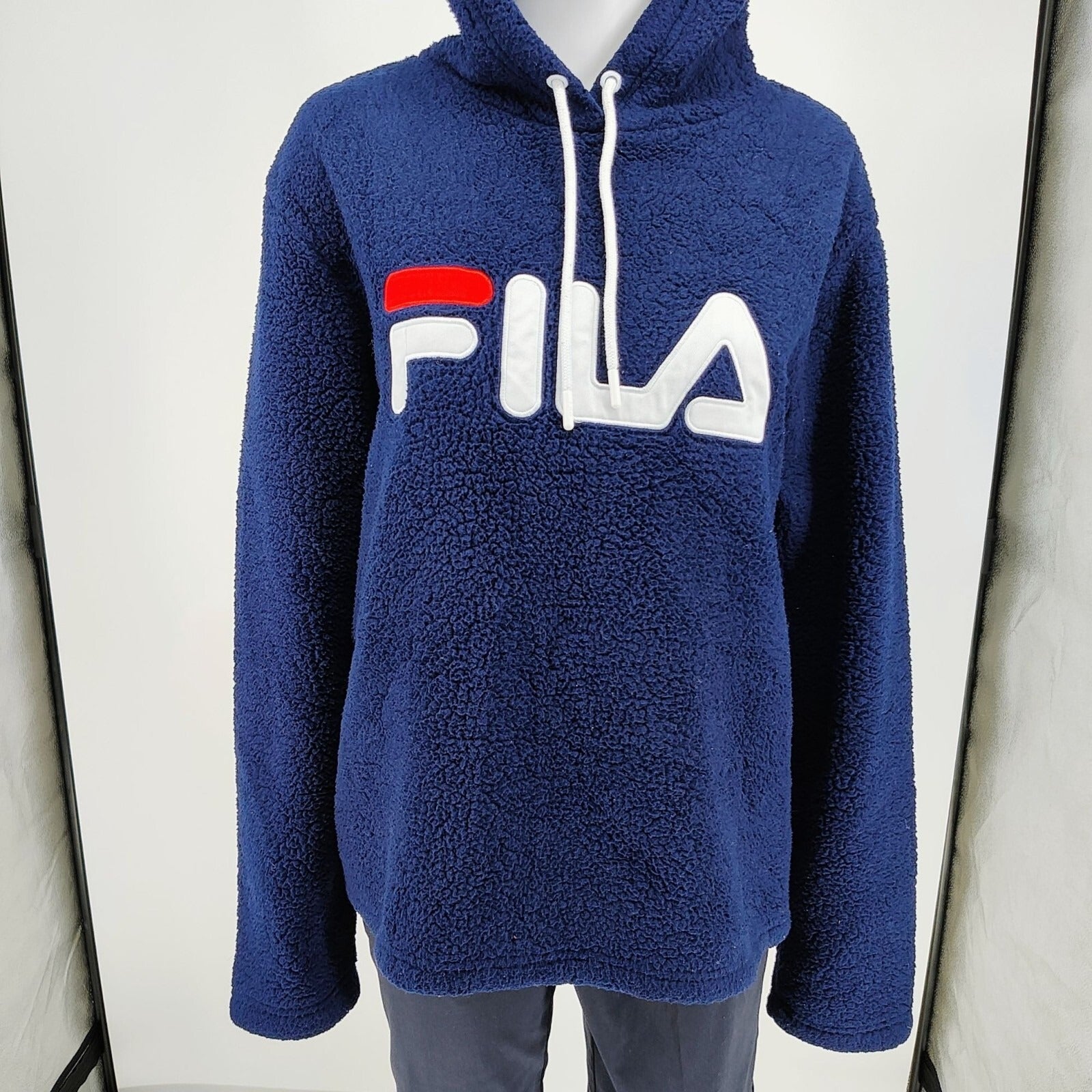 Fila Women's Navy Blue Caroline Sherpa Fleece Hoodie Pullover (Size XL)