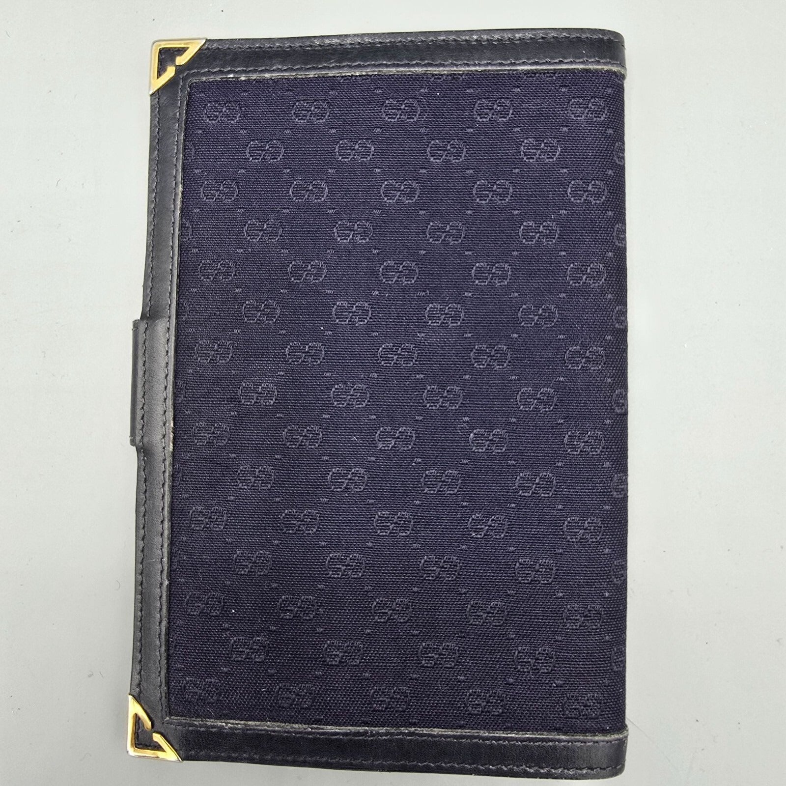 Gucci Blue Micro GG Logo Passport Cover with Gold Tone Corners *Fair Condition