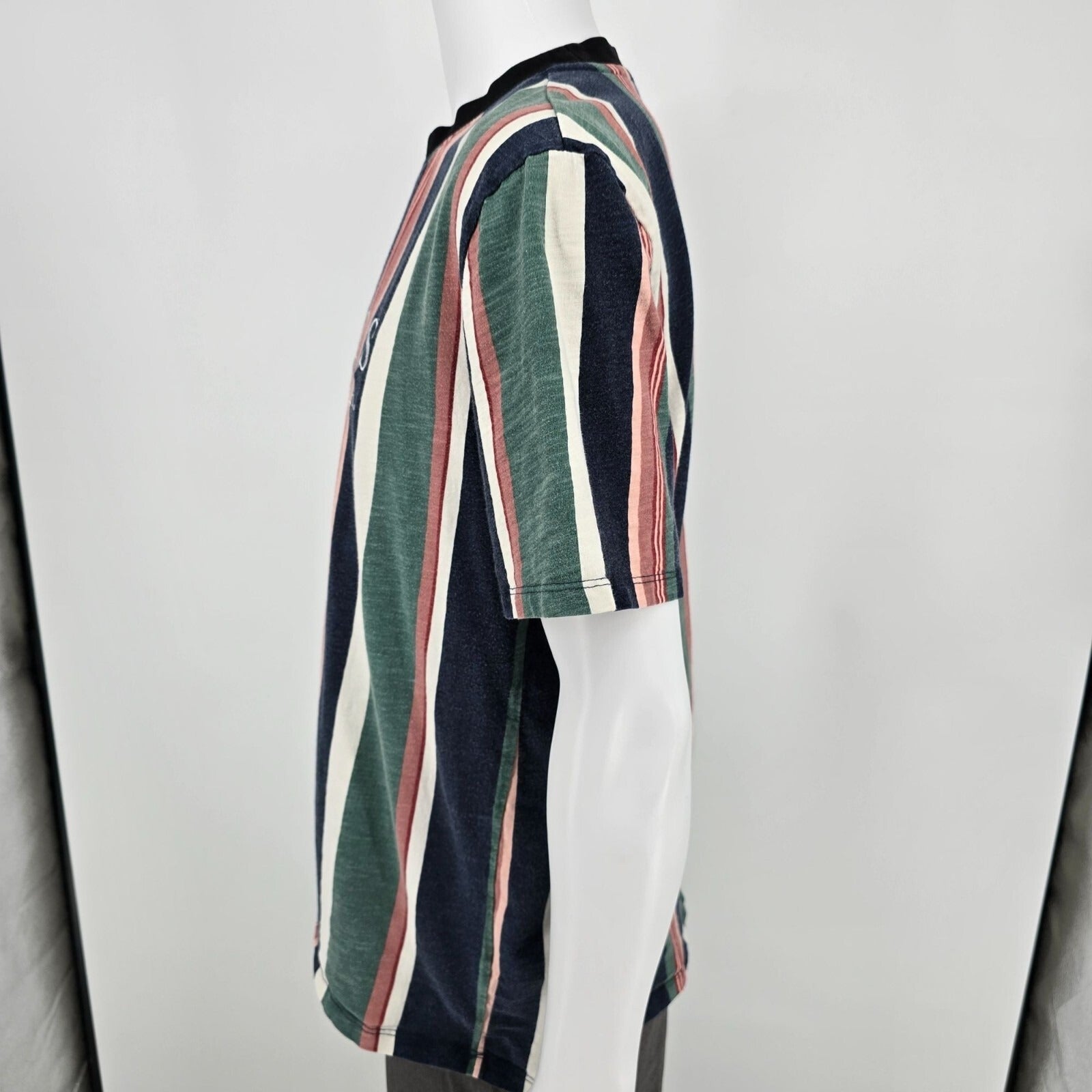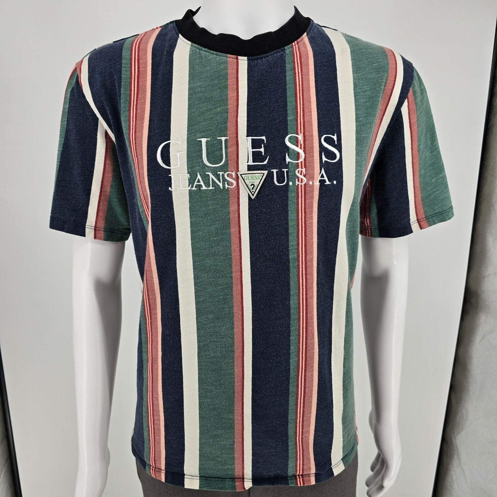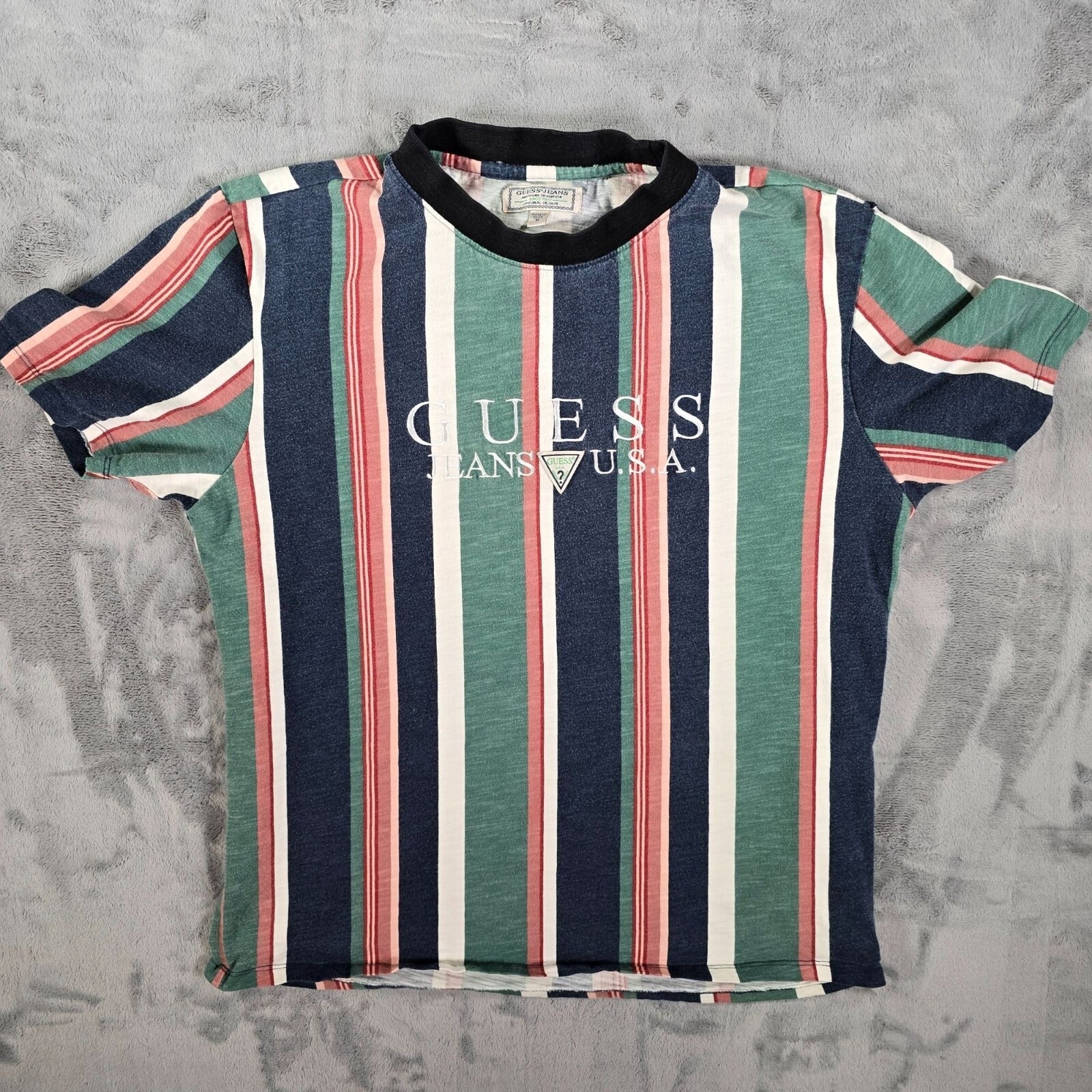 Guess Jeans U.S.A. Embroidered Logo Faded Multicolor Striped T-Shirt (M)
