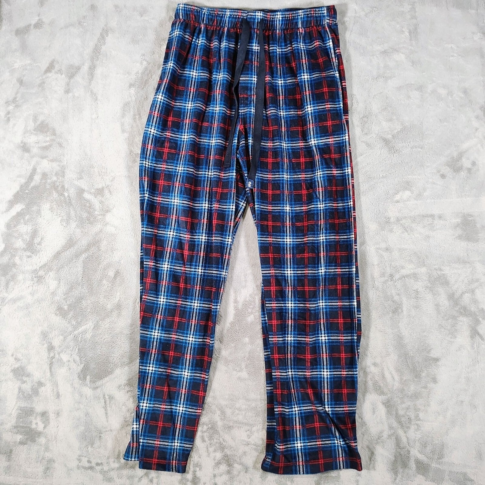 Izod Mens Red and Blue Plaid Fleece Pajama Sleep Pants (Medium)