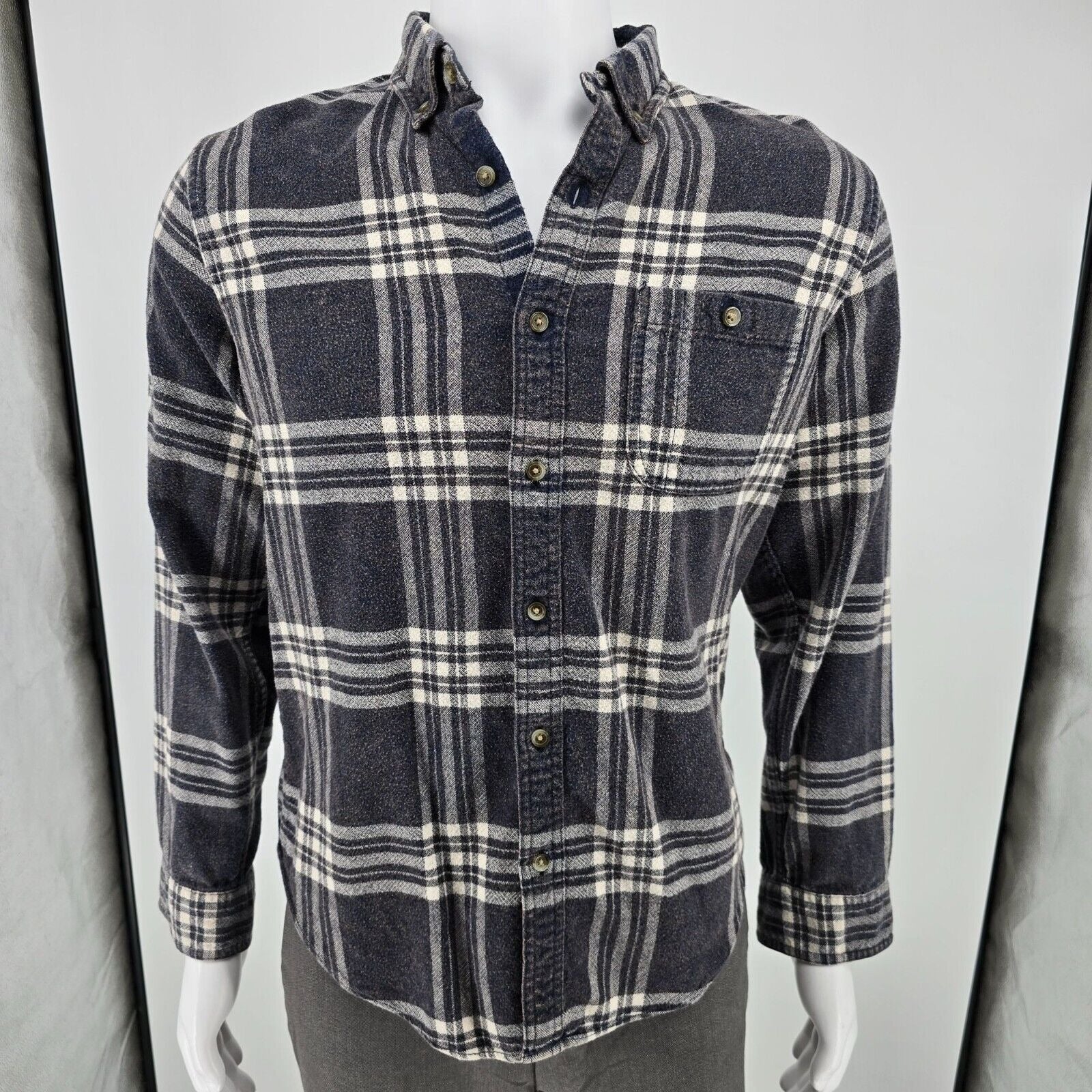 J.Crew 2016 Mens Faded Wool-Blend Flannel Button-Down Navy Shirt (Large)