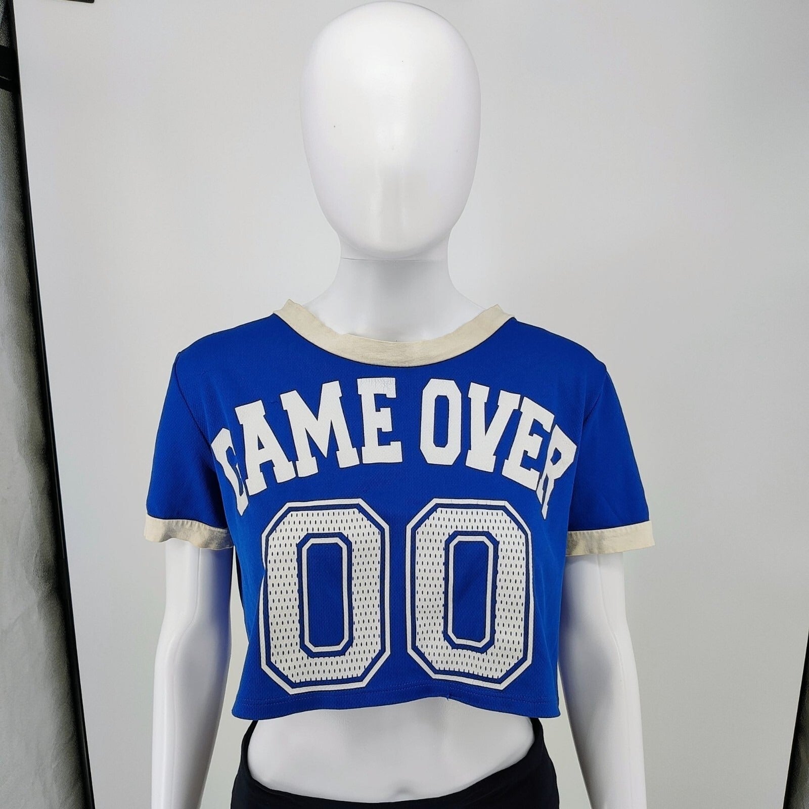 JC Fits "Game Over 00" Blue & White Crop Top Mesh Football Jersey (XL) *Flawed