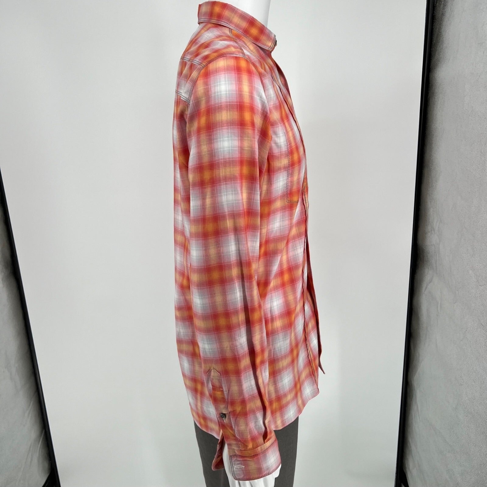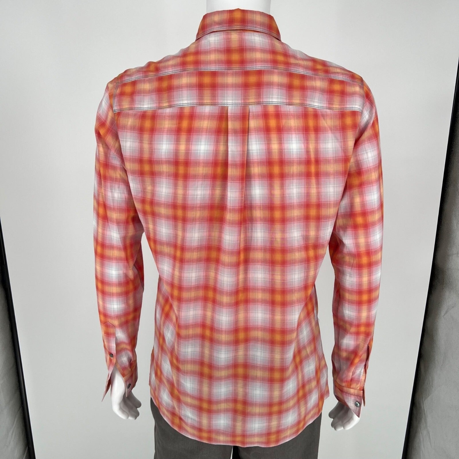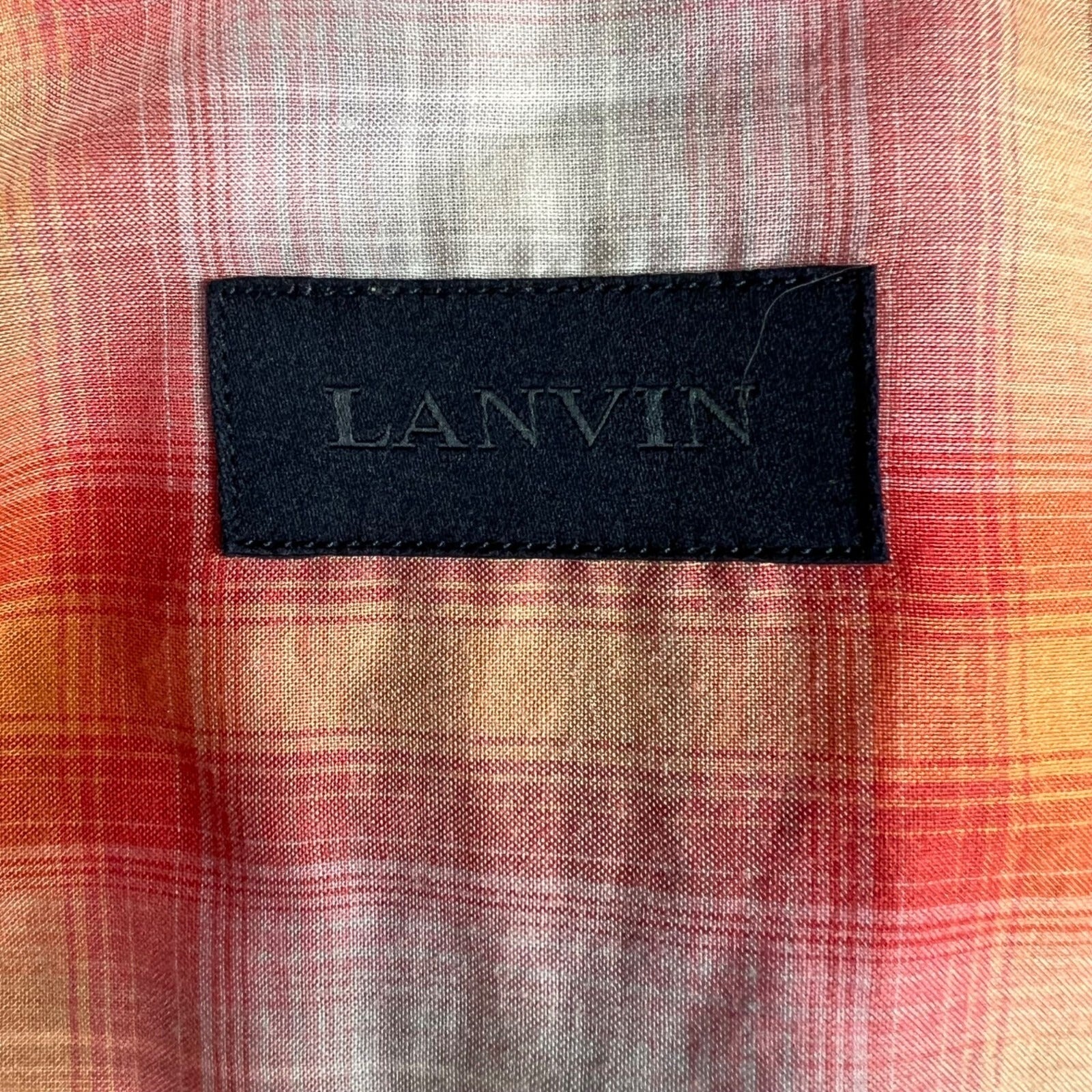 Lanvin Men's Orange/Red/White Plaid Long Sleeve Button-Up Shirt (Size 37/14.5)